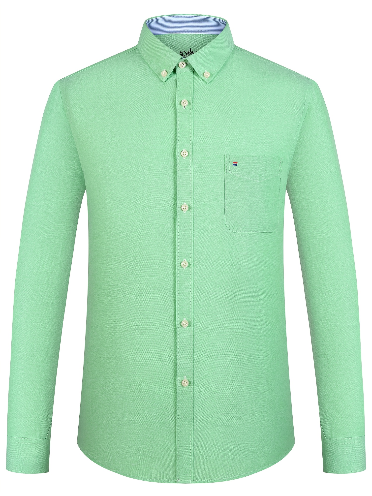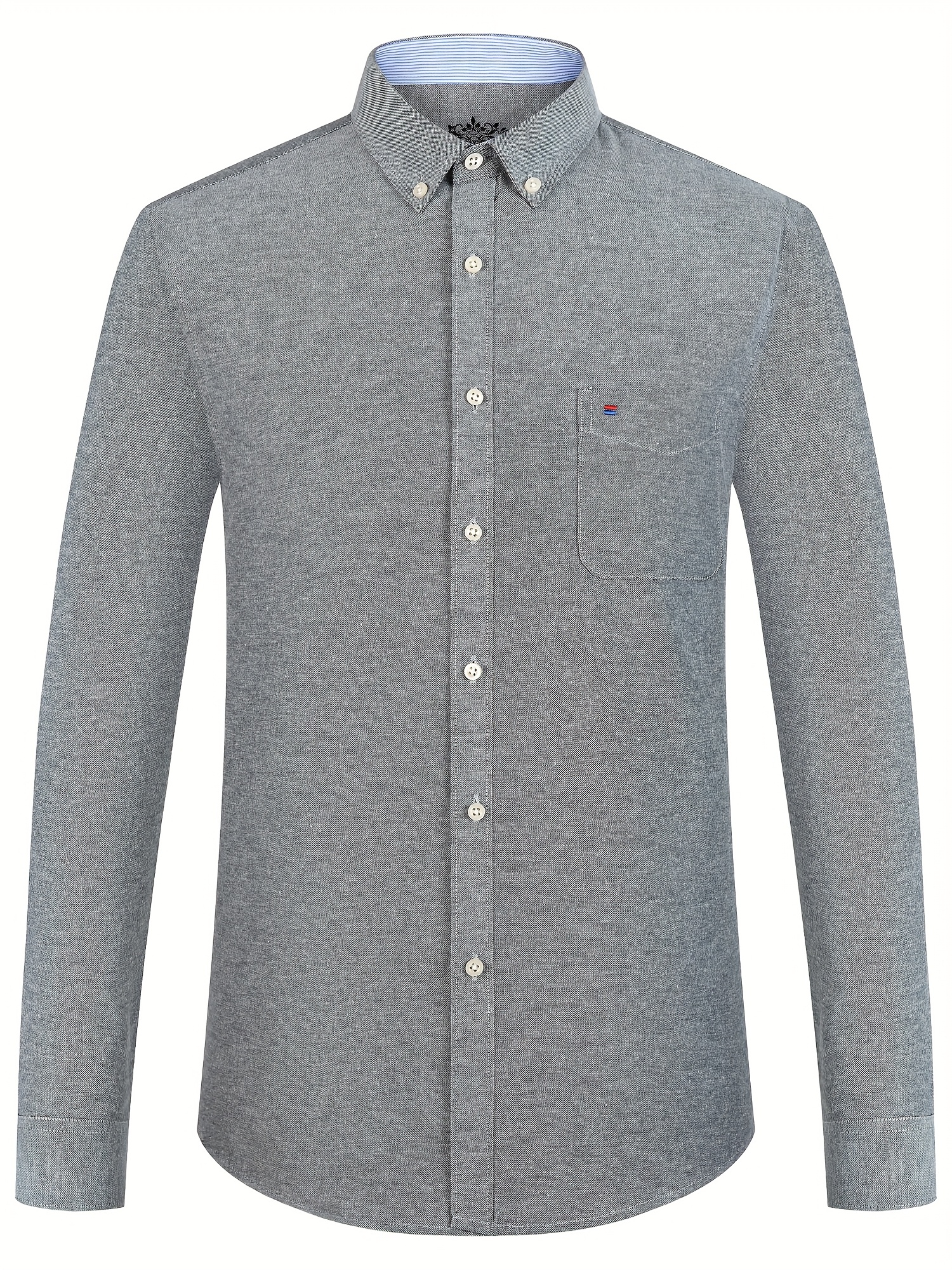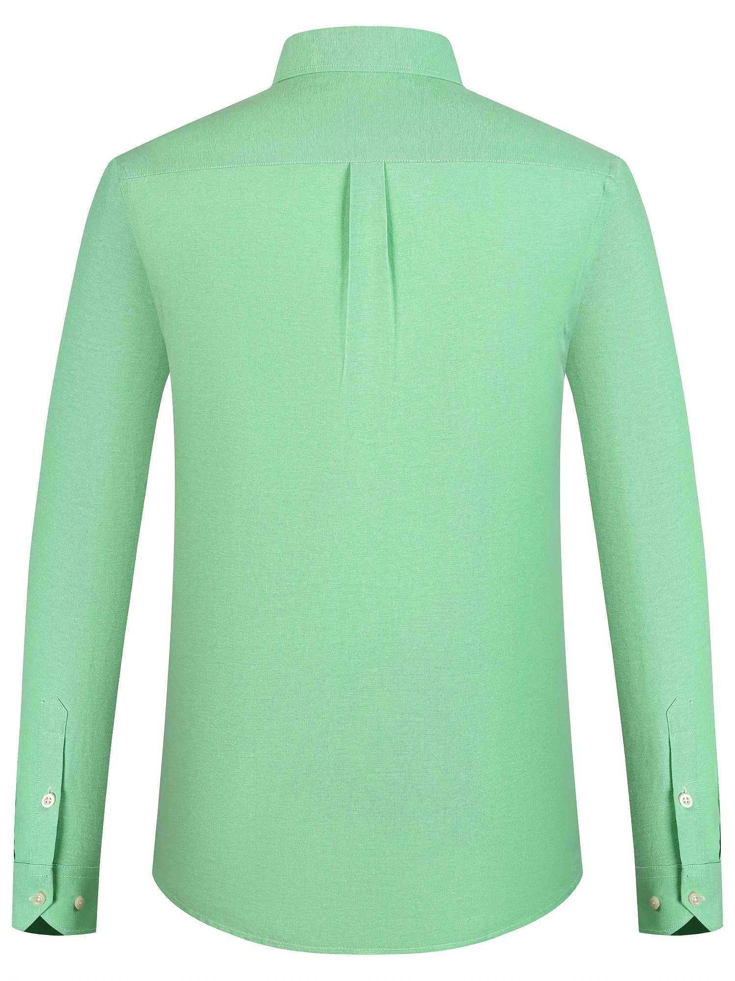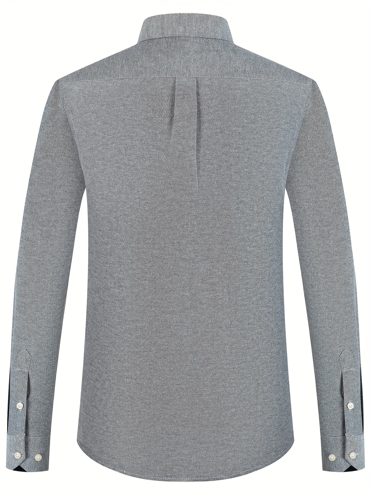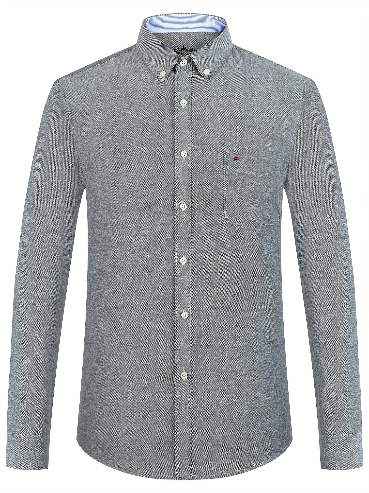 Men'S Cotton Blend Dress Shirt, Casual Lapel Collar, Non-Stretch Solid Color, Regular Long Sleeve, Embroidered Single Breasted Placket, Regular Fit, for Spring/Fall - Woven Oxford Fabric