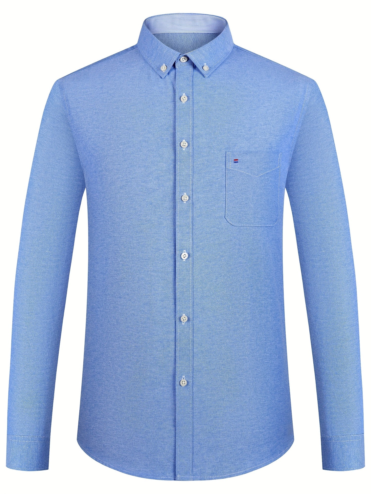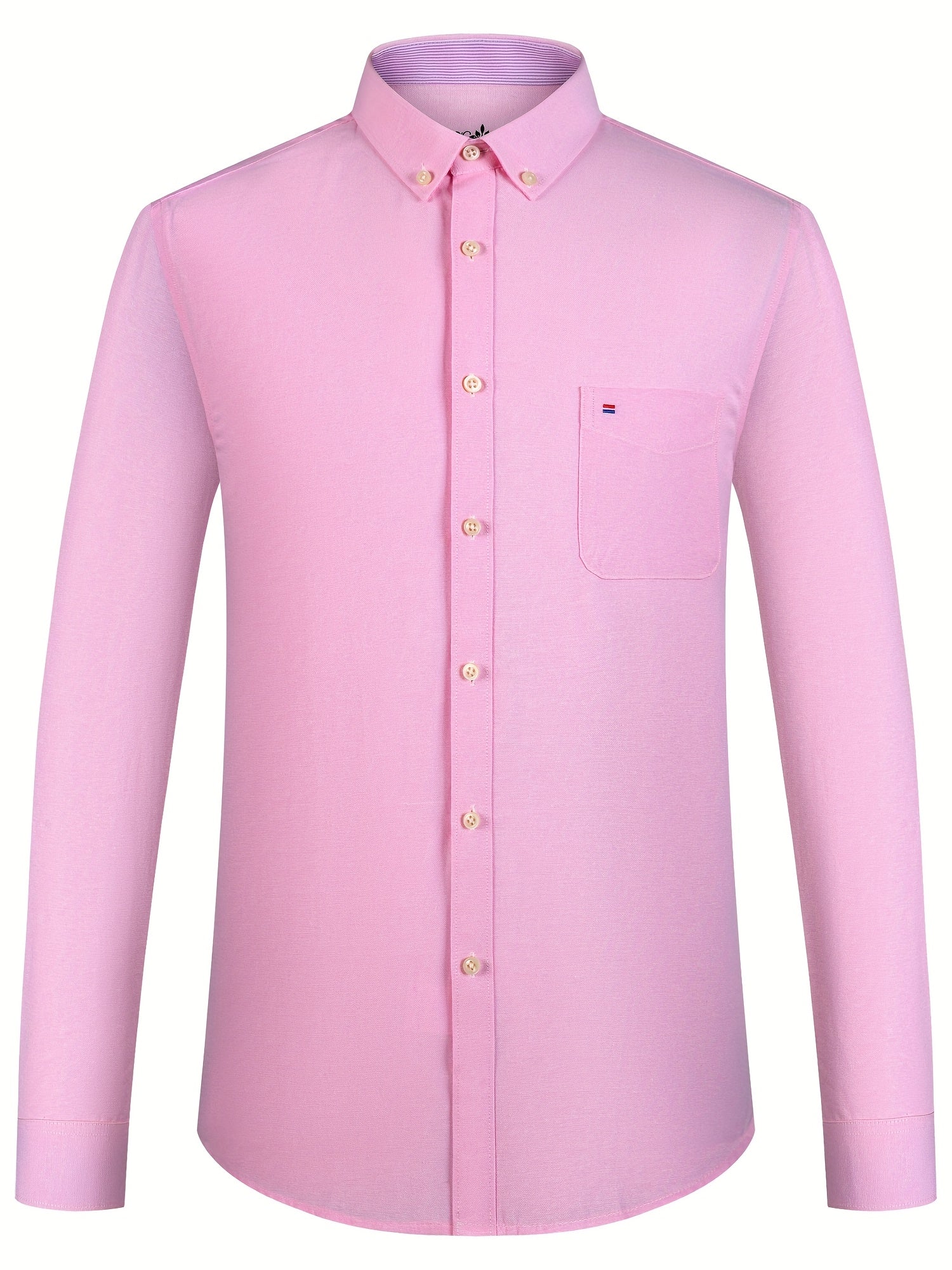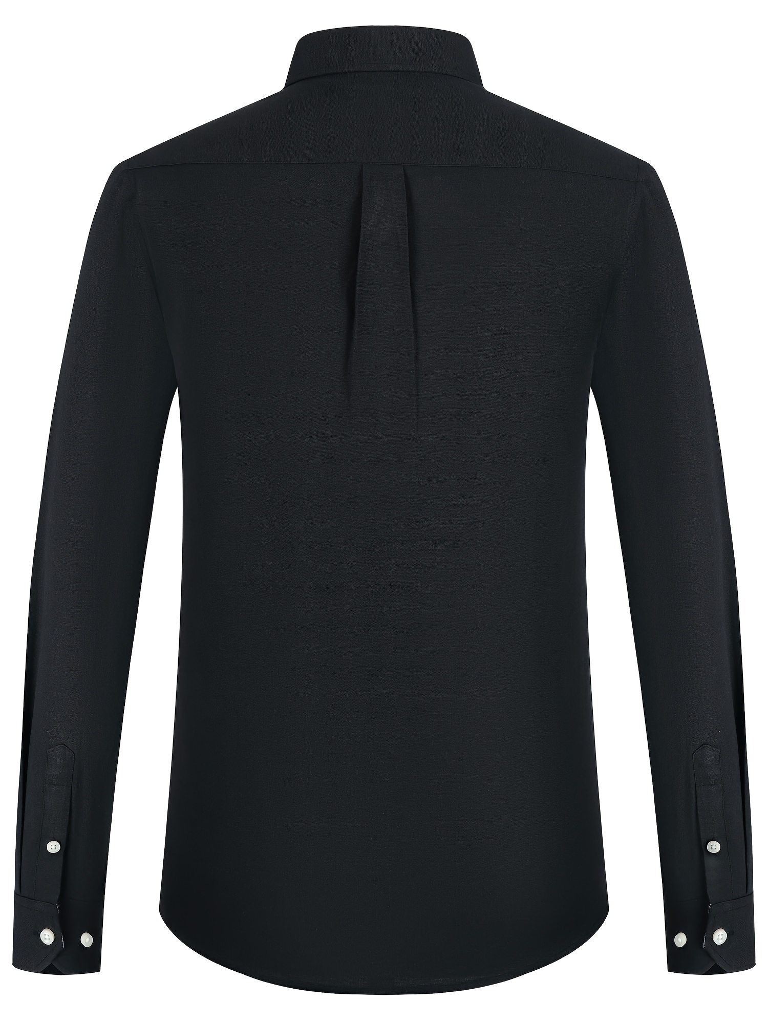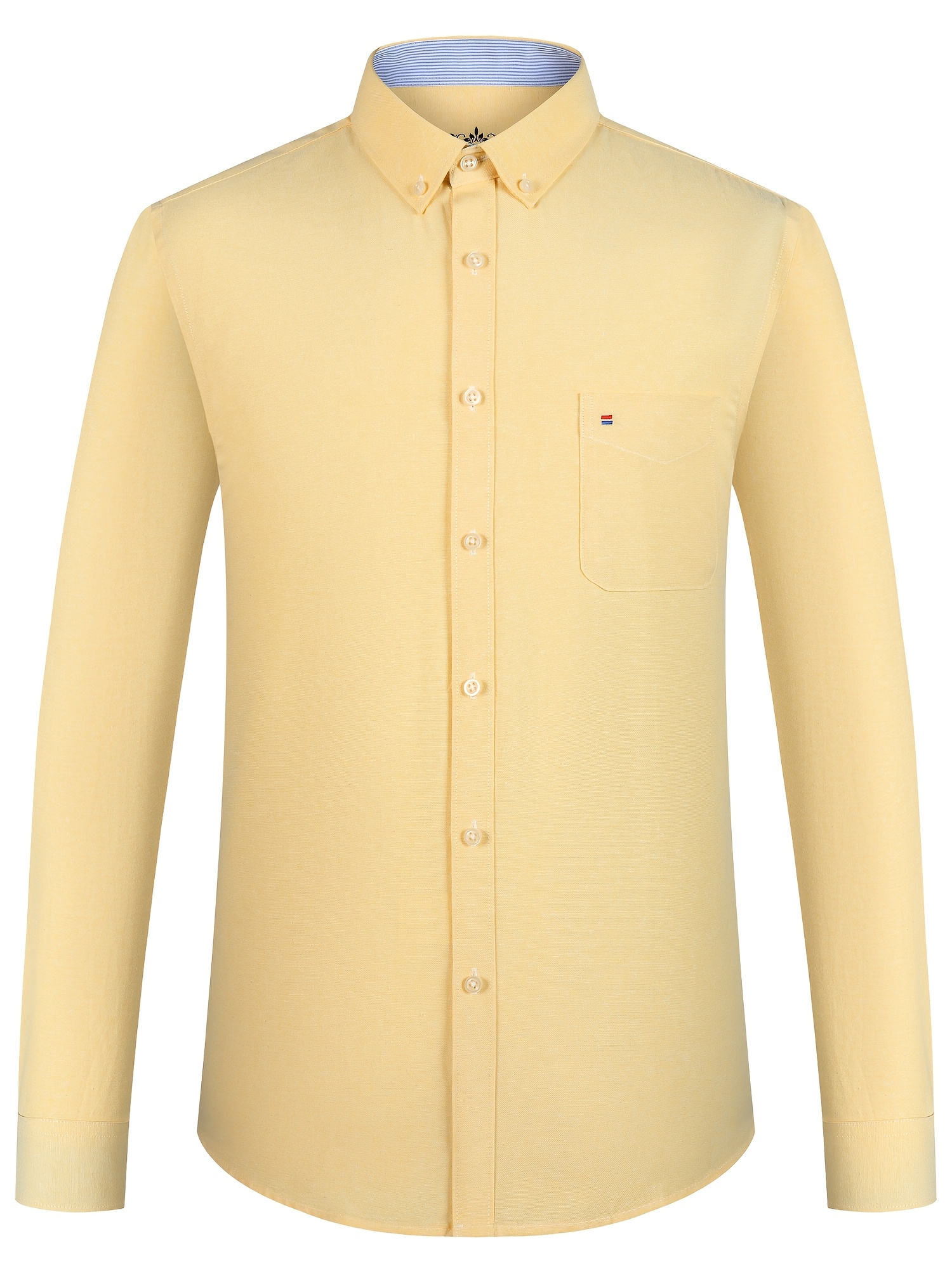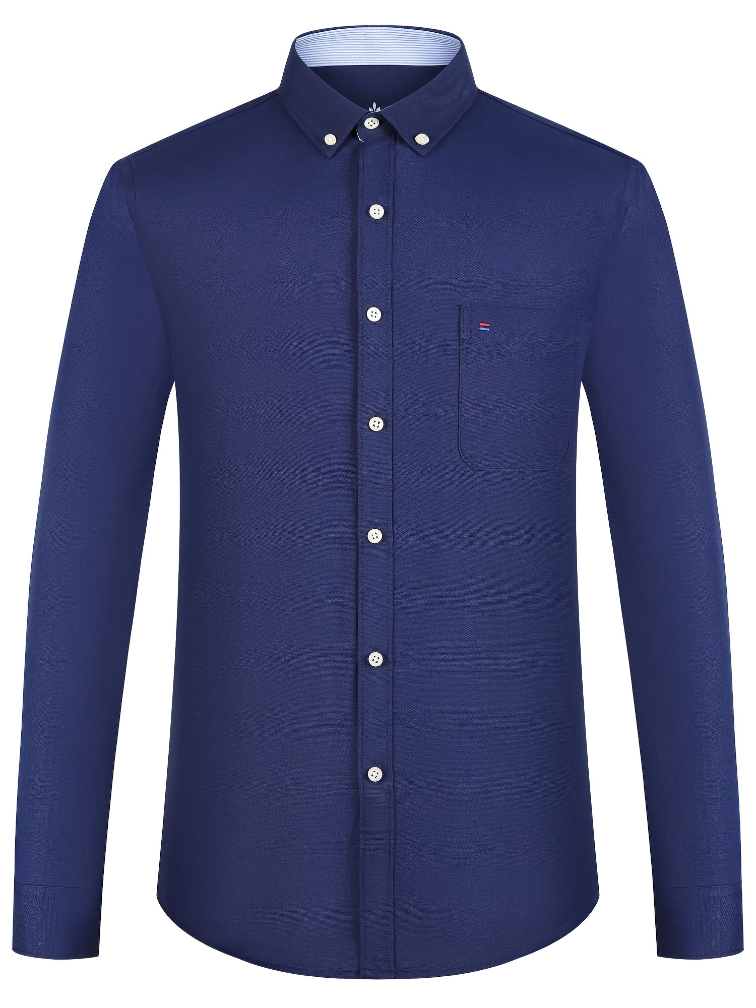 Men'S Cotton Blend Dress Shirt, Casual Lapel Collar, Non-Stretch Solid Color, Regular Long Sleeve, Embroidered Single Breasted Placket, Regular Fit, for Spring/Fall - Woven Oxford Fabric