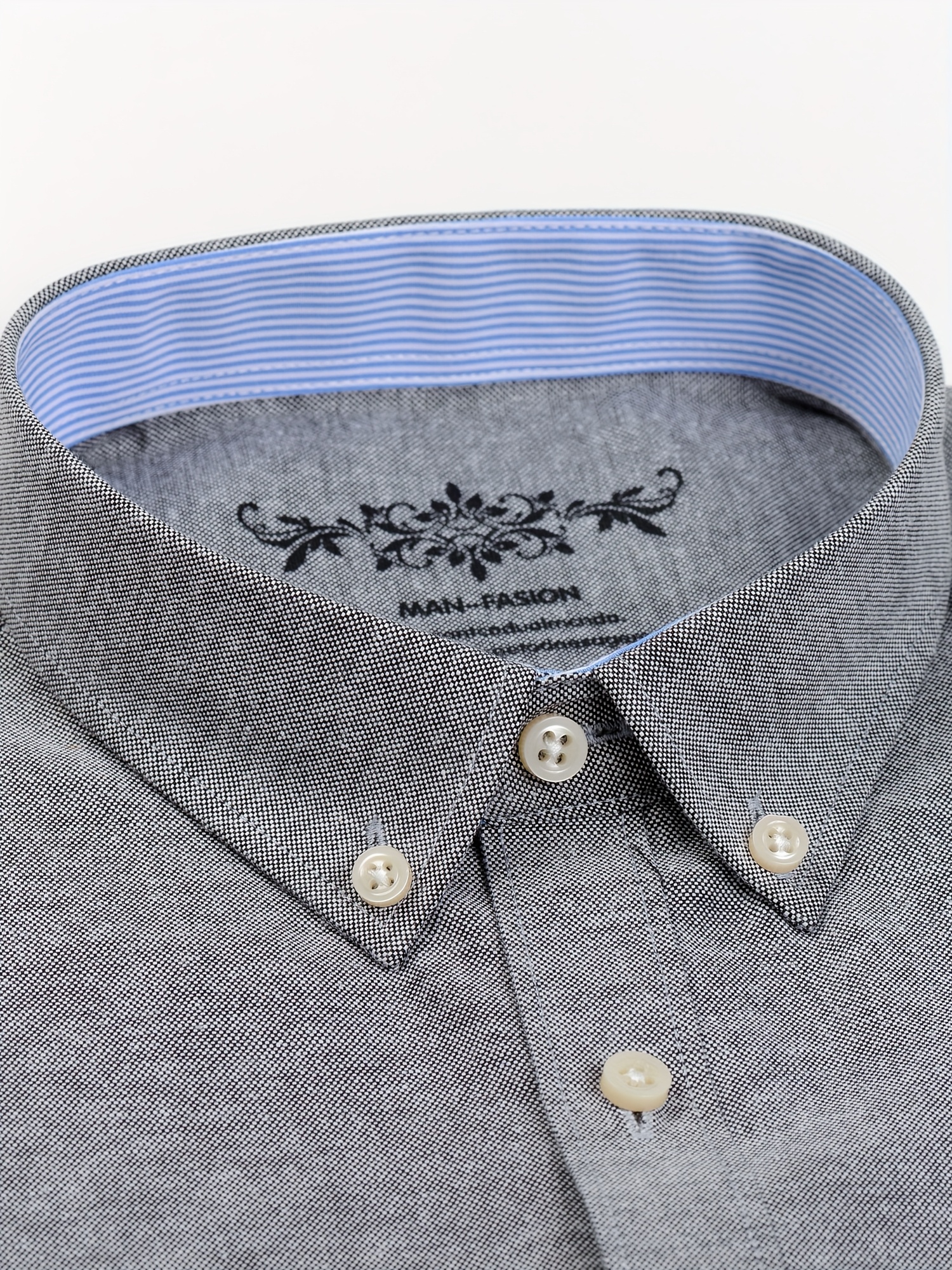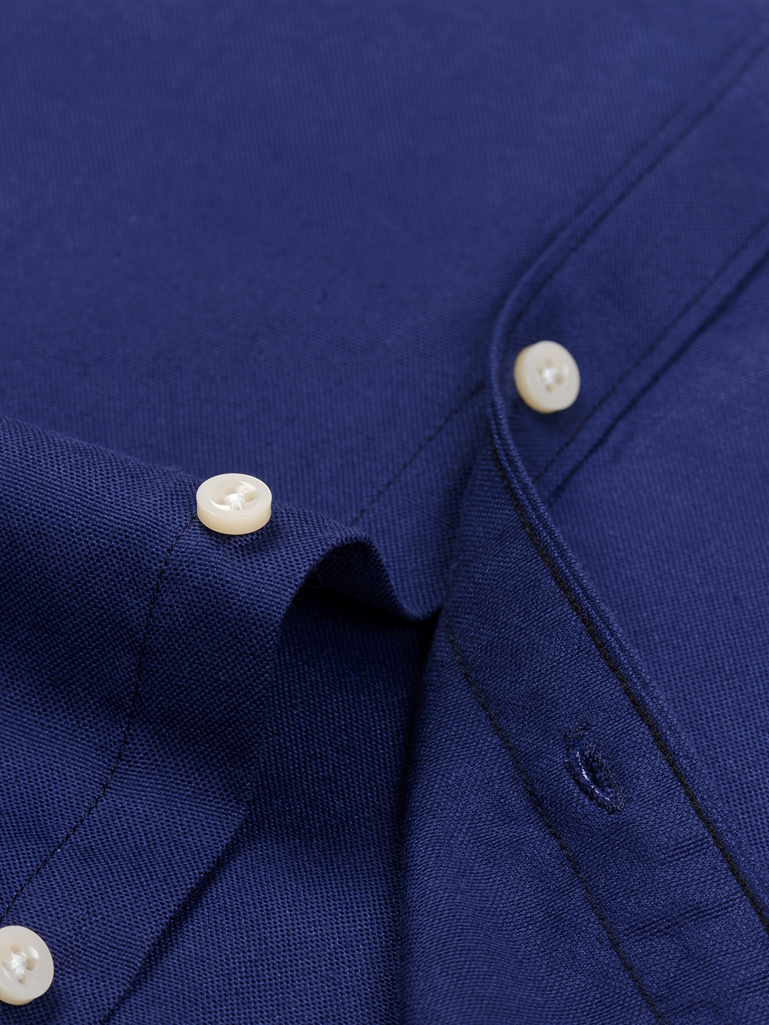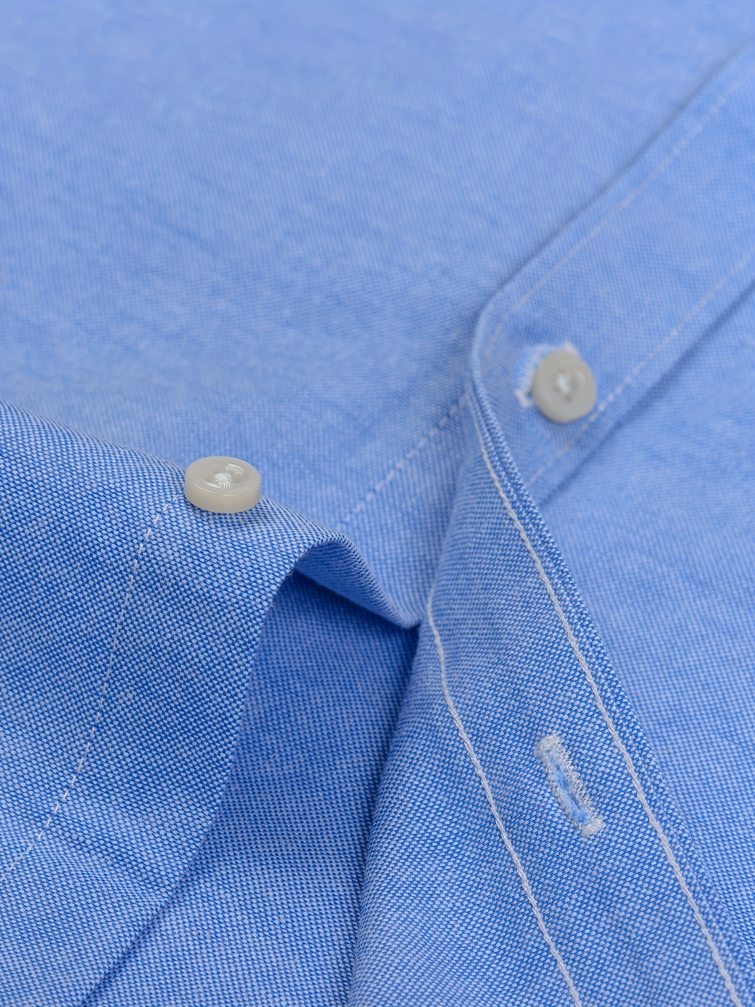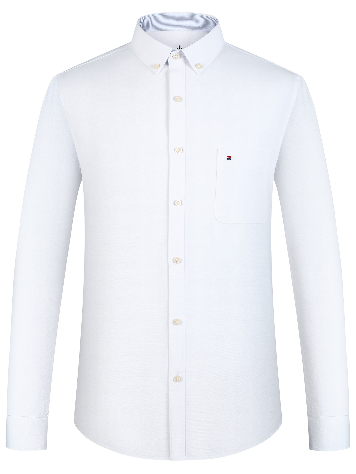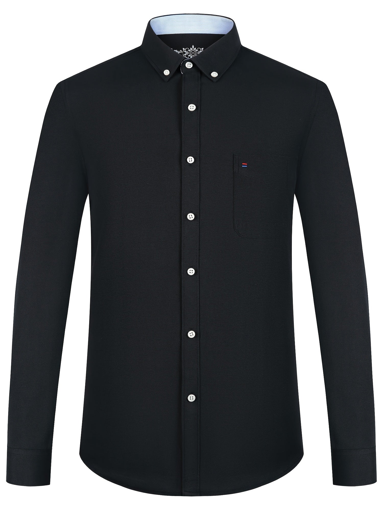 Men'S Cotton Blend Dress Shirt, Casual Lapel Collar, Non-Stretch Solid Color, Regular Long Sleeve, Embroidered Single Breasted Placket, Regular Fit, for Spring/Fall - Woven Oxford Fabric