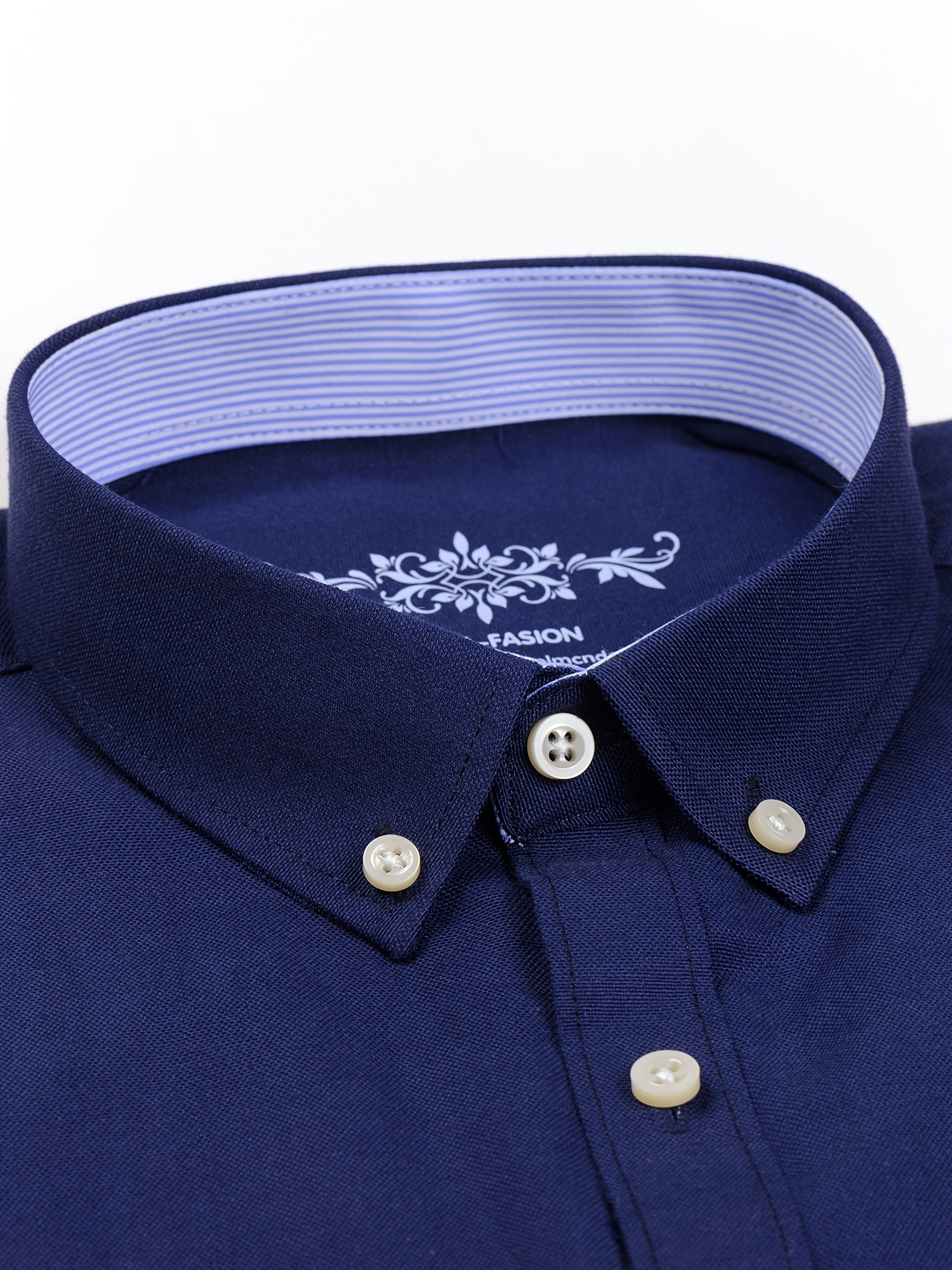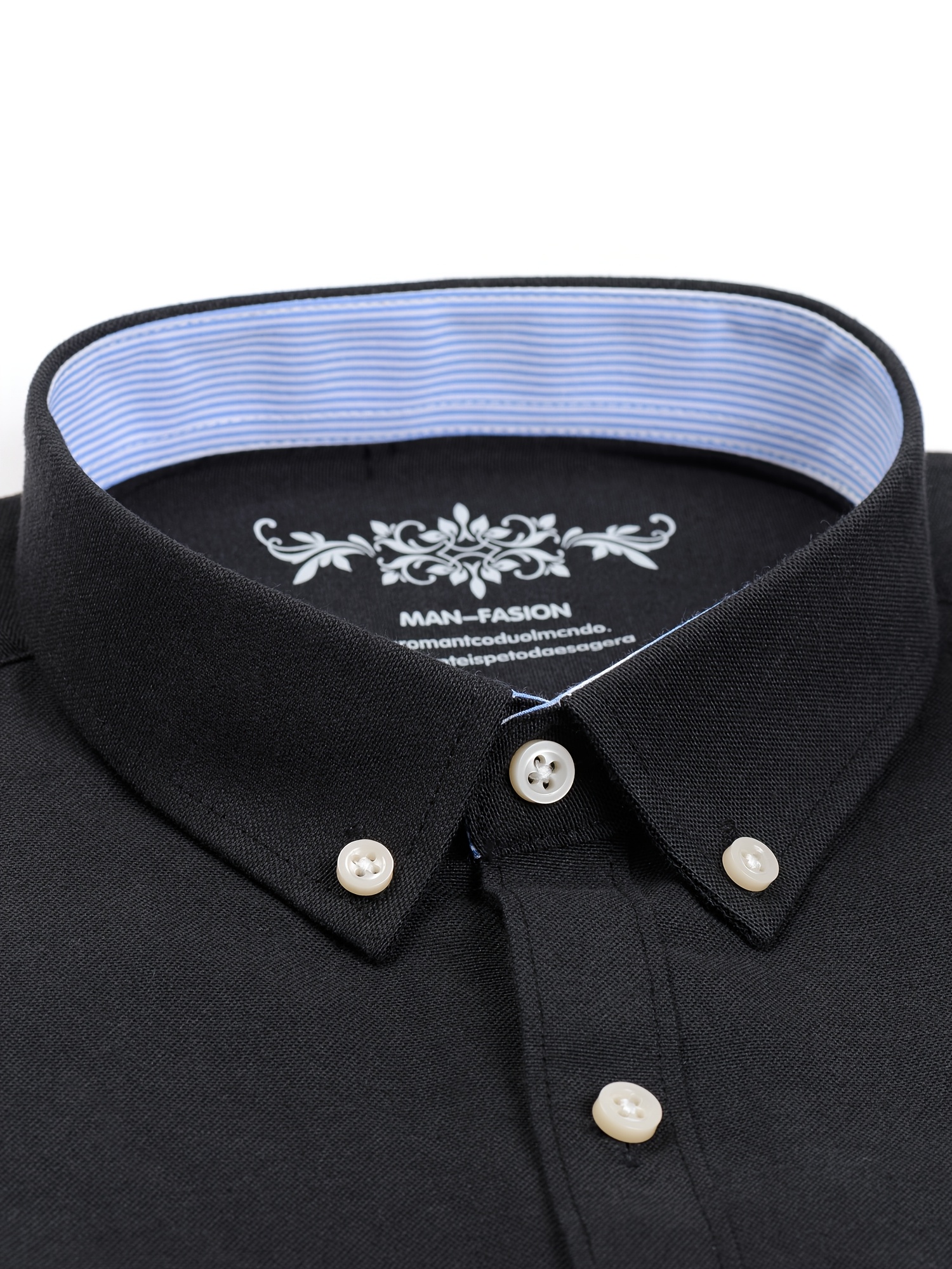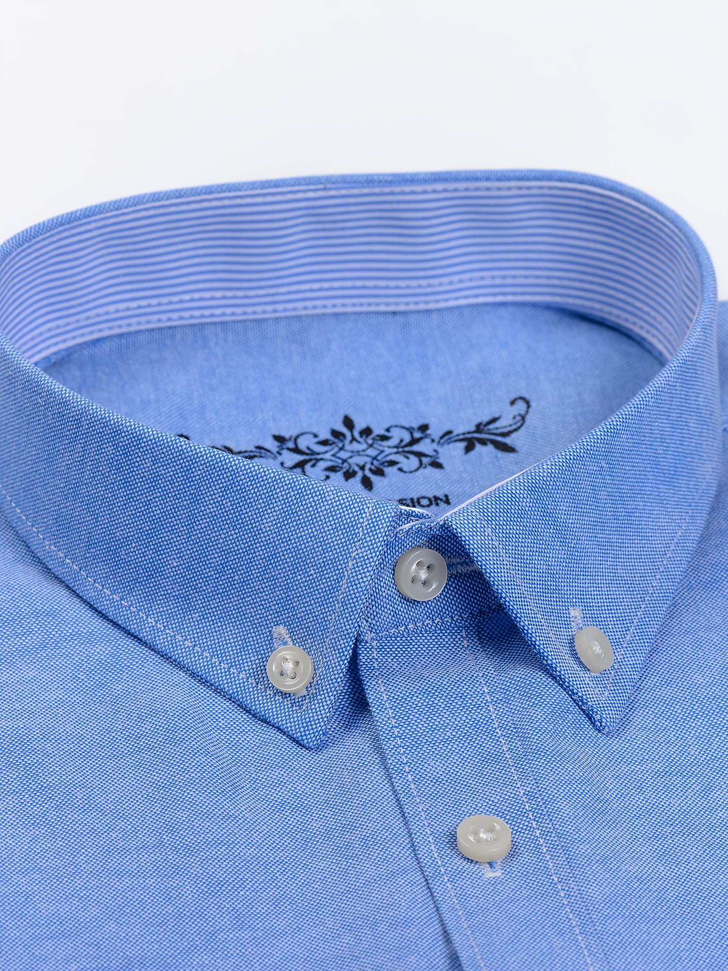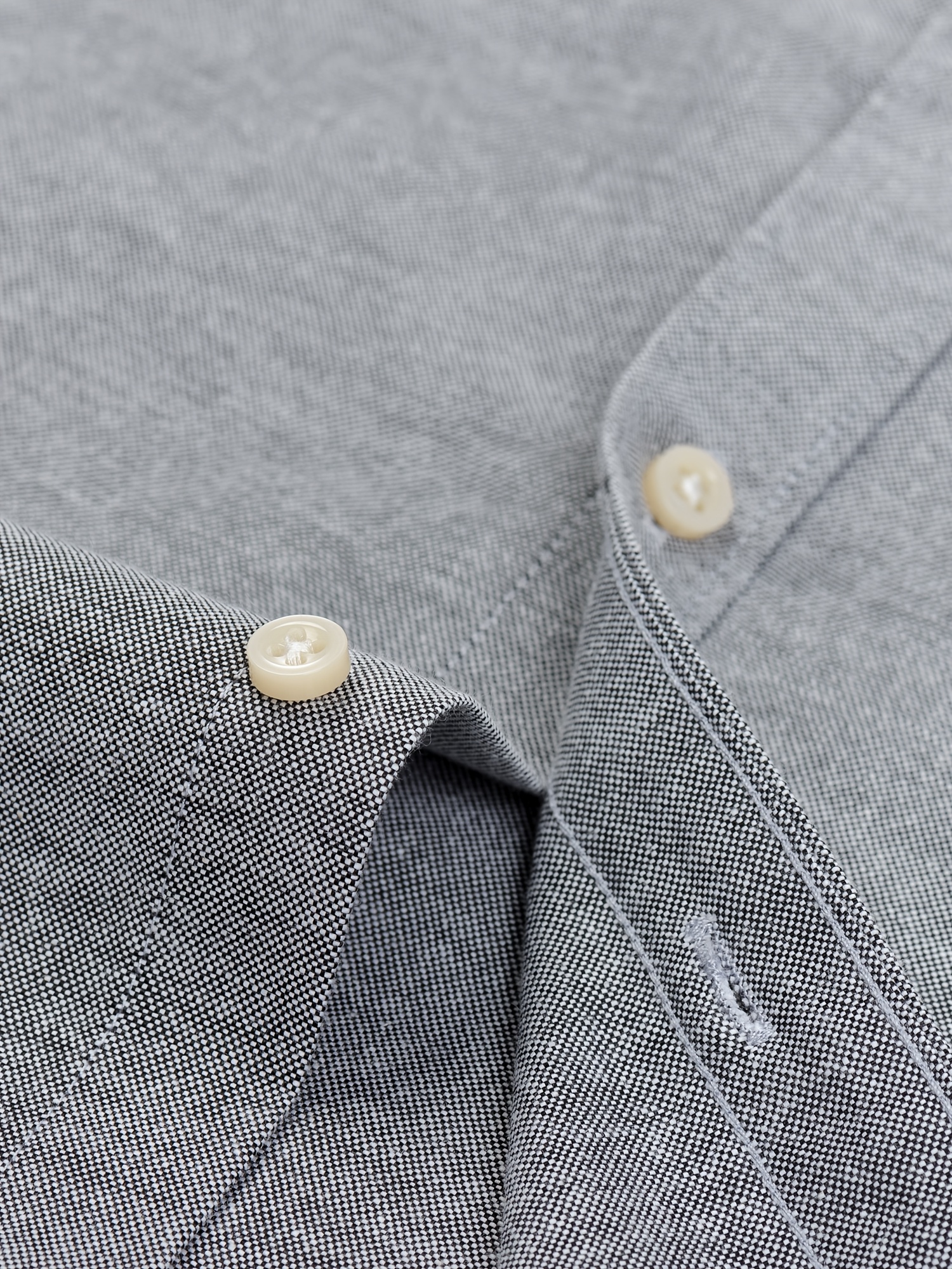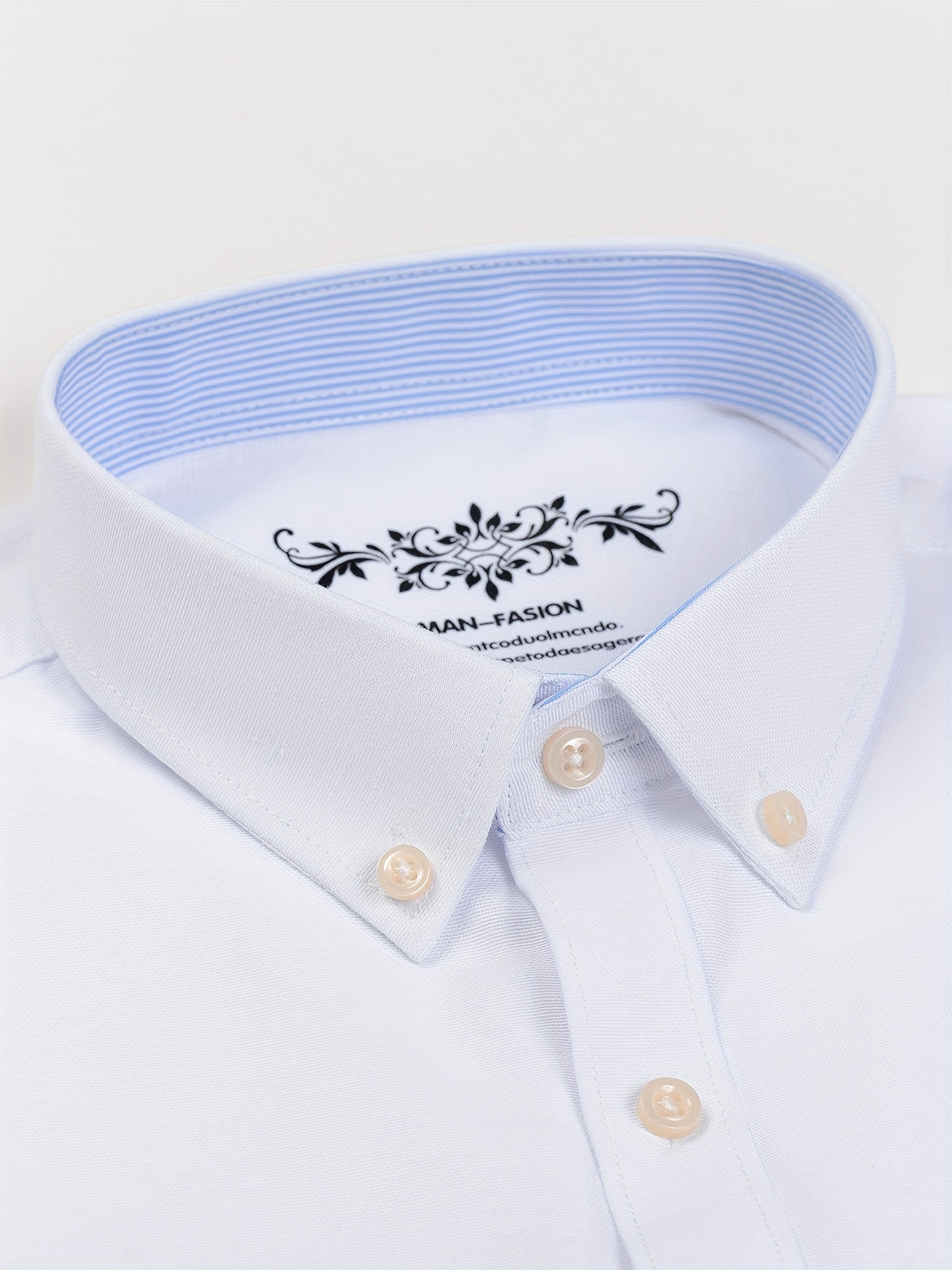 Men'S Cotton Blend Dress Shirt, Casual Lapel Collar, Non-Stretch Solid Color, Regular Long Sleeve, Embroidered Single Breasted Placket, Regular Fit, for Spring/Fall - Woven Oxford Fabric