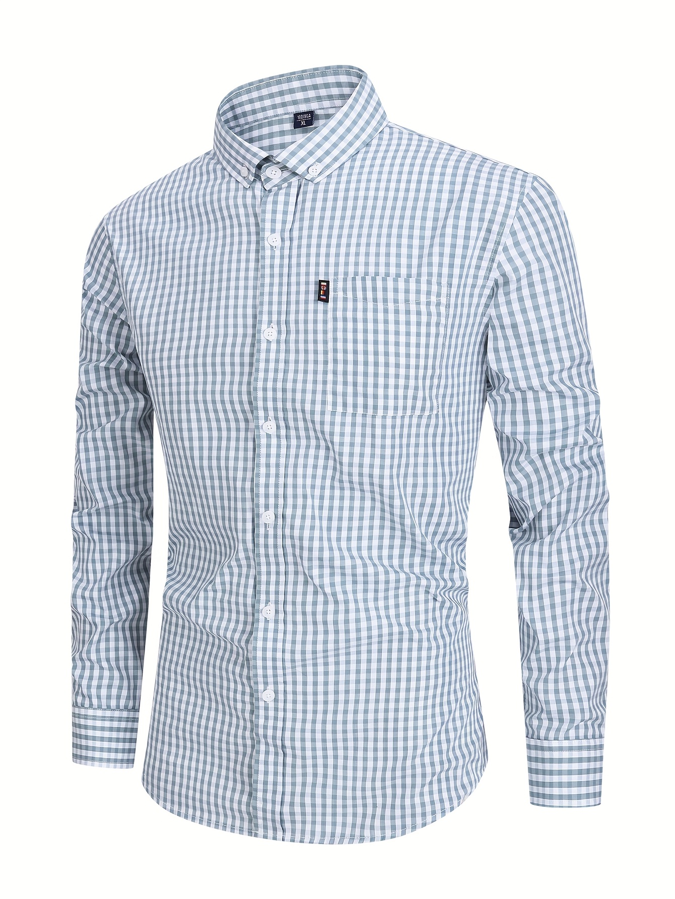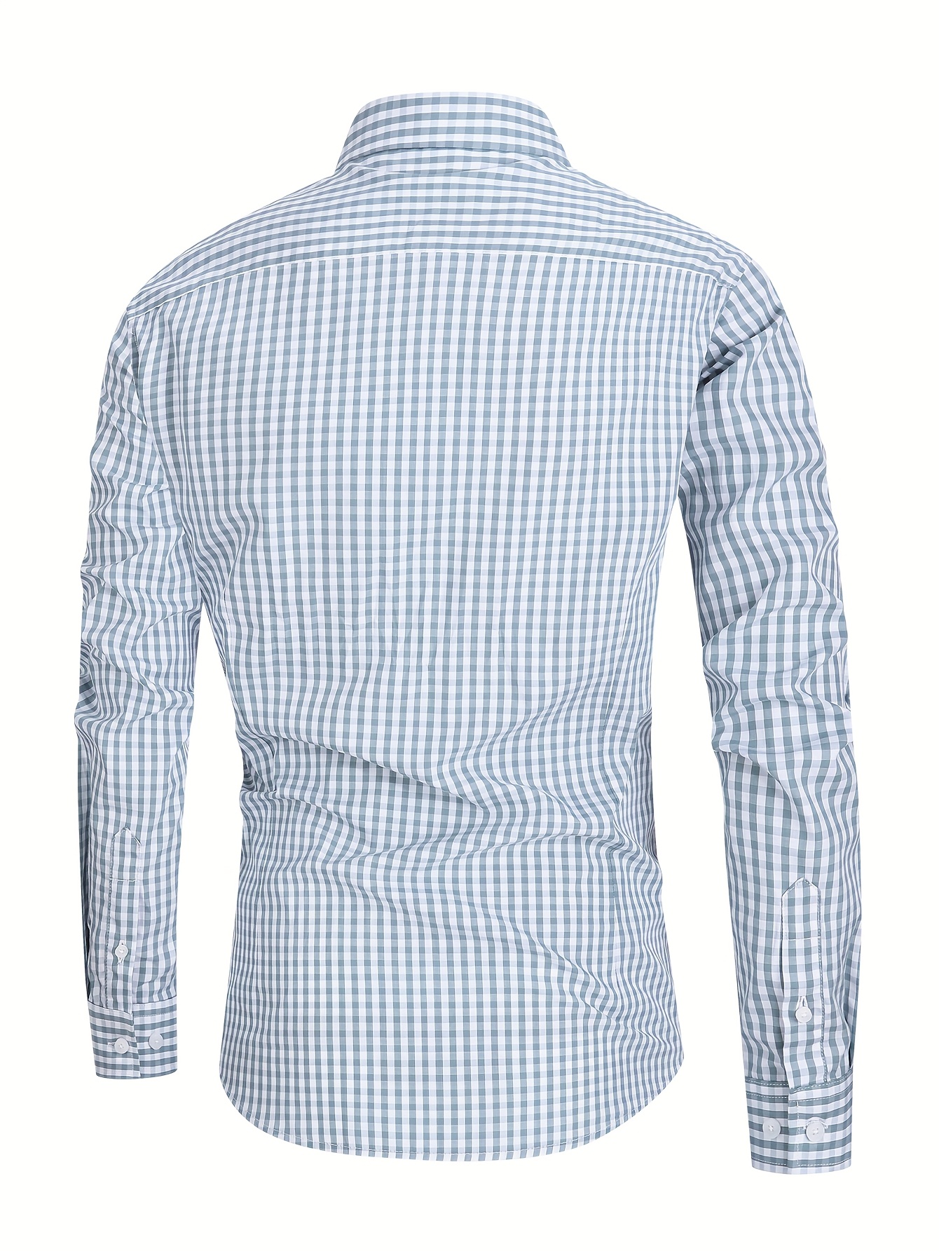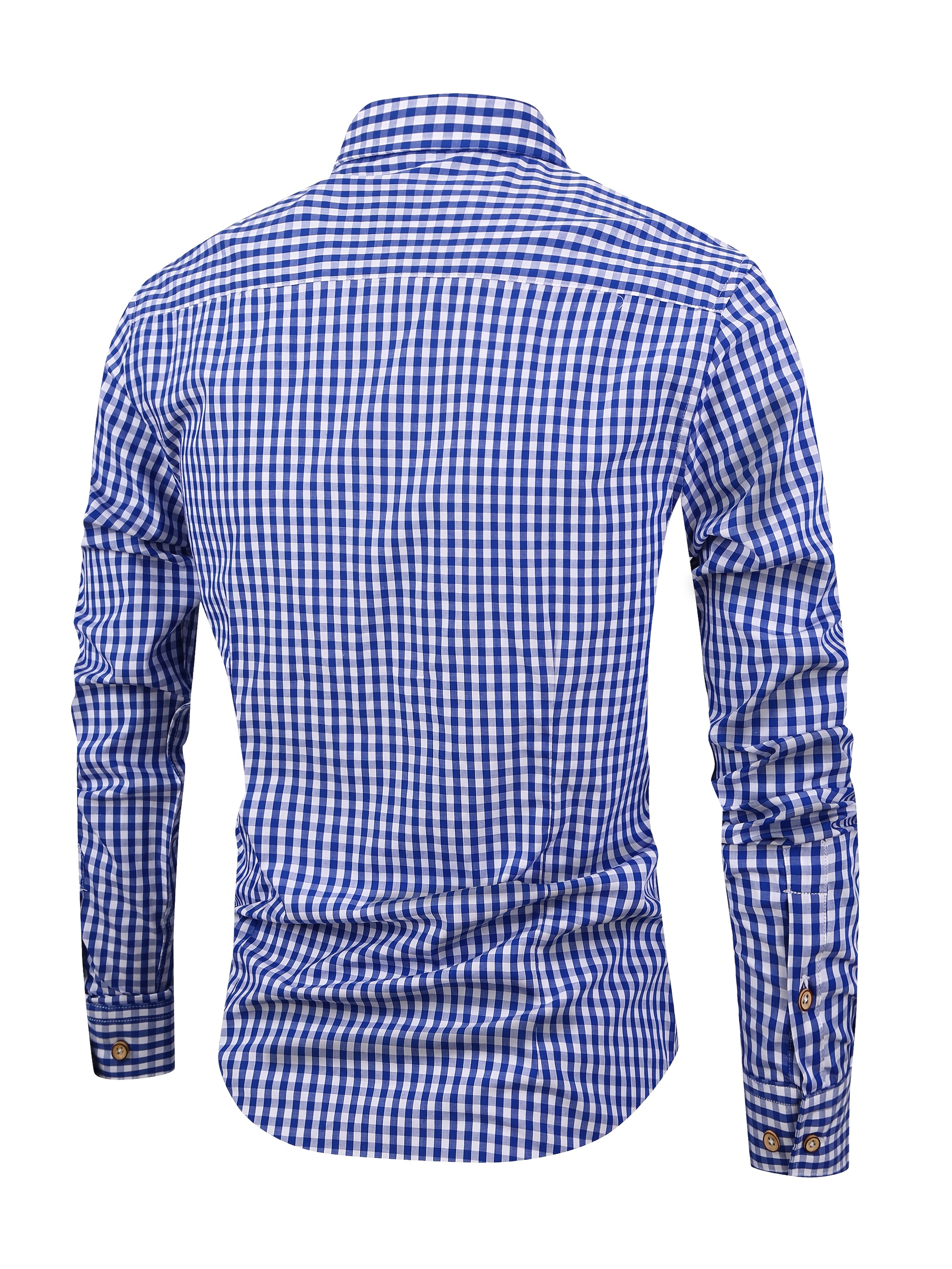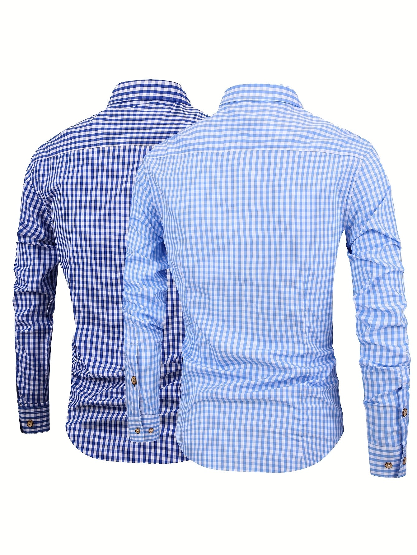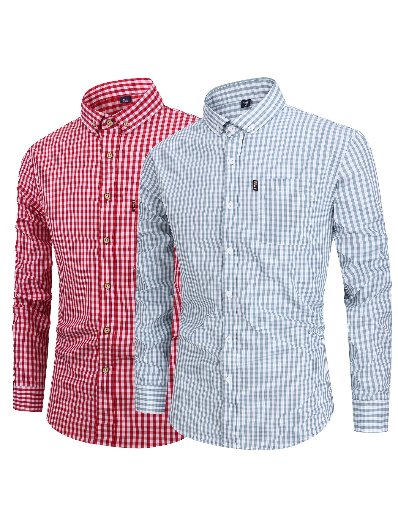 Men's cotton plaid casual long sleeve shirt; 2pcs