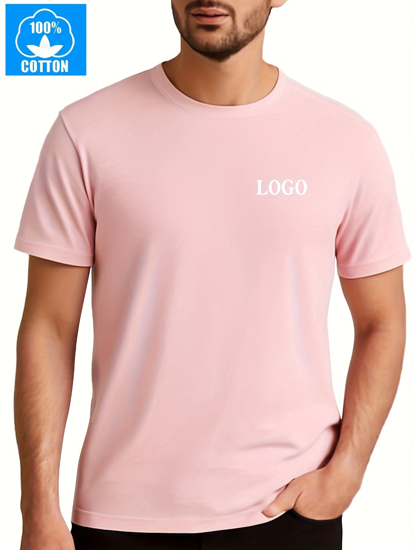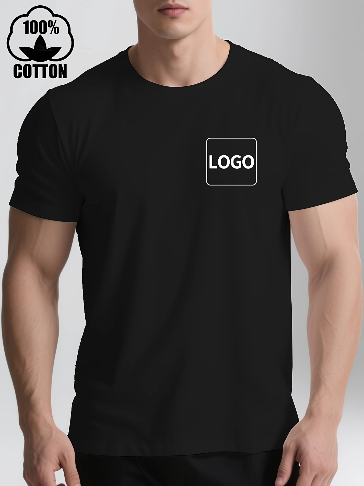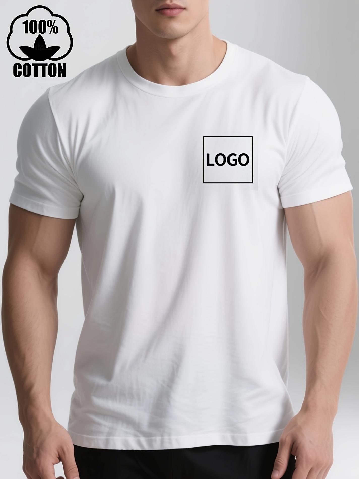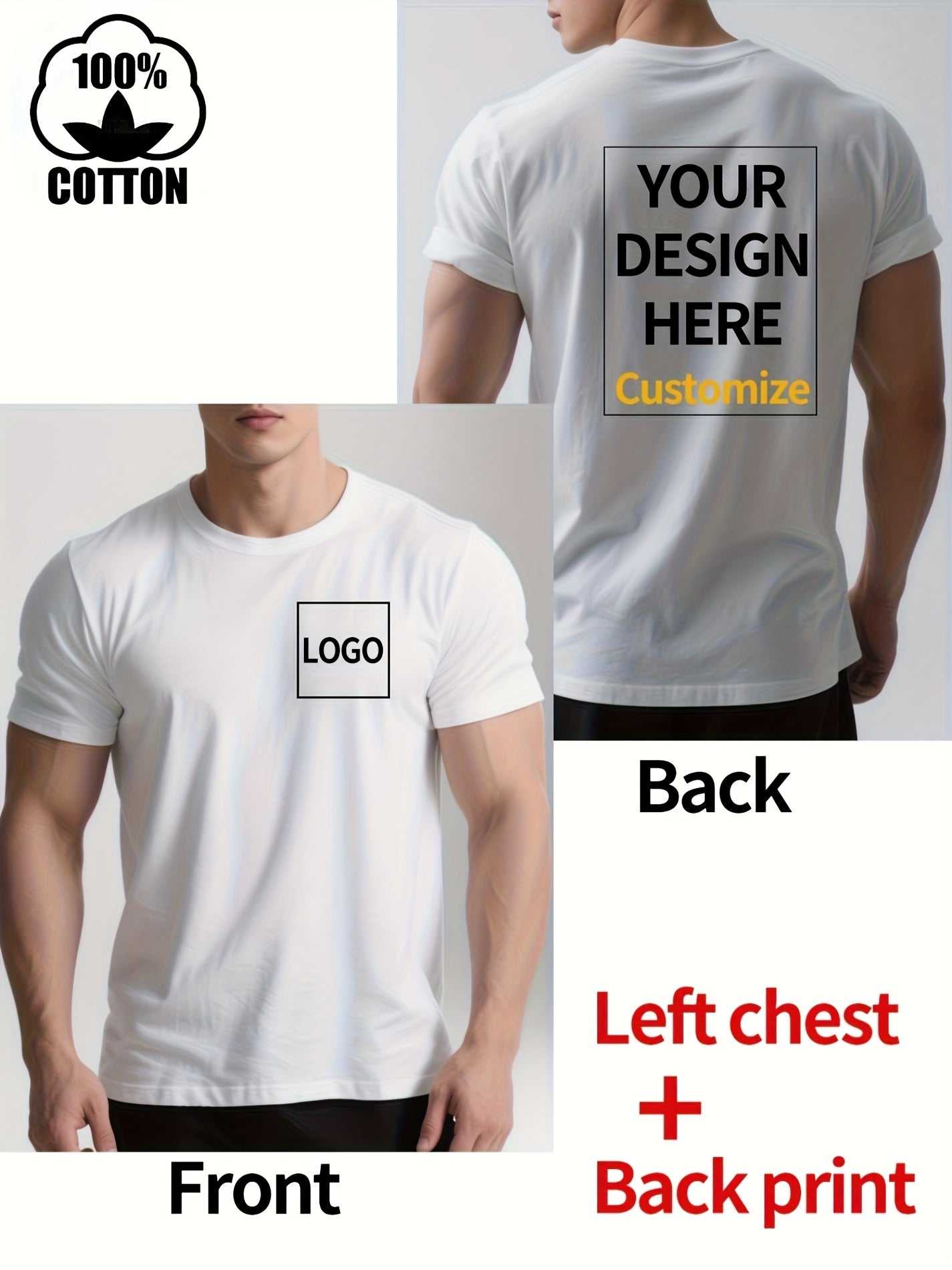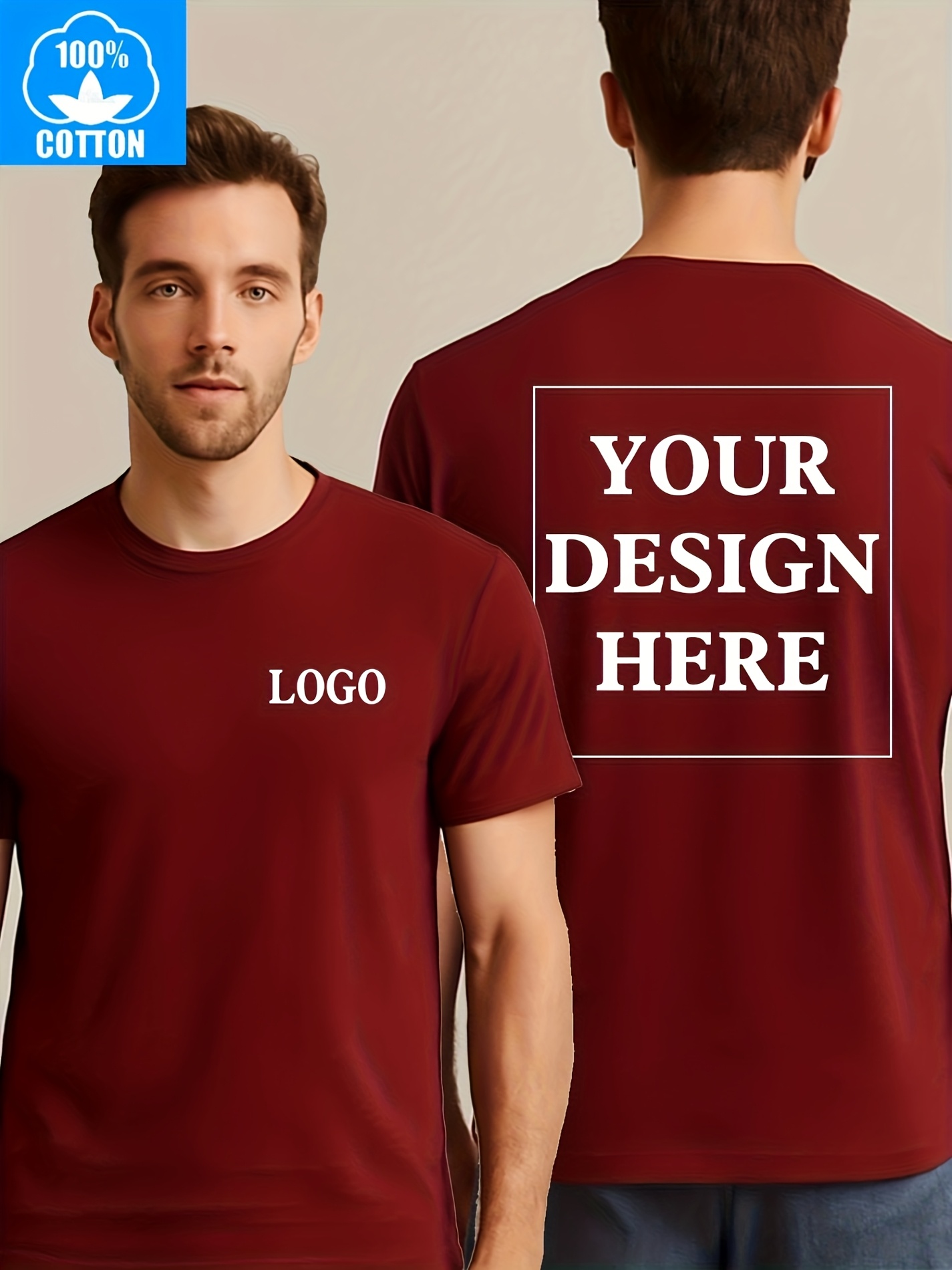 Men's Custom Text/Logo T-Shirt 100% Cotton Personalized Short Sleeve Round Neck Casual Summer Top with Your Own Text, Photo or Logo Printing - DIY Orders Suitable for Events, Promotions, Gifts (Men's Fashion)