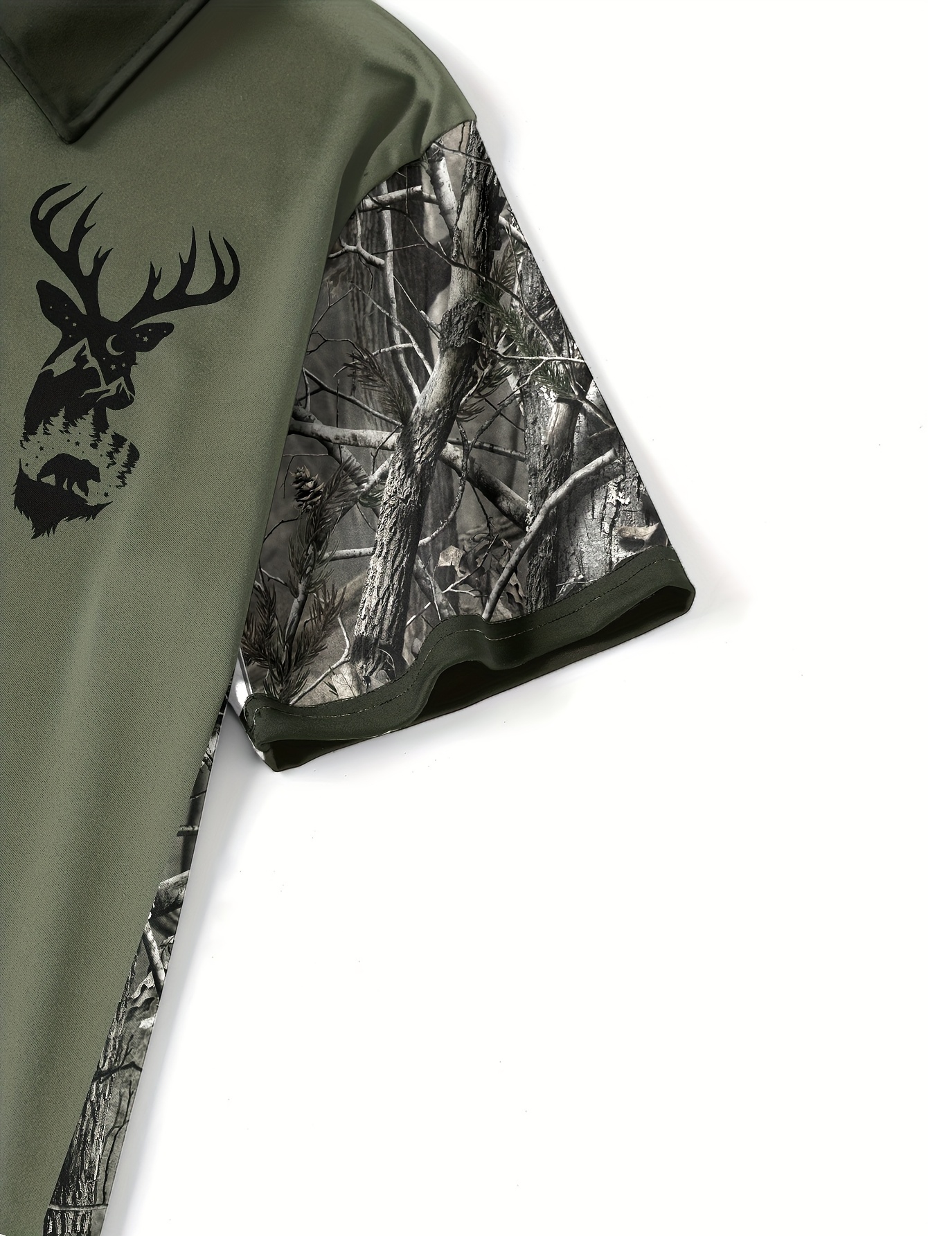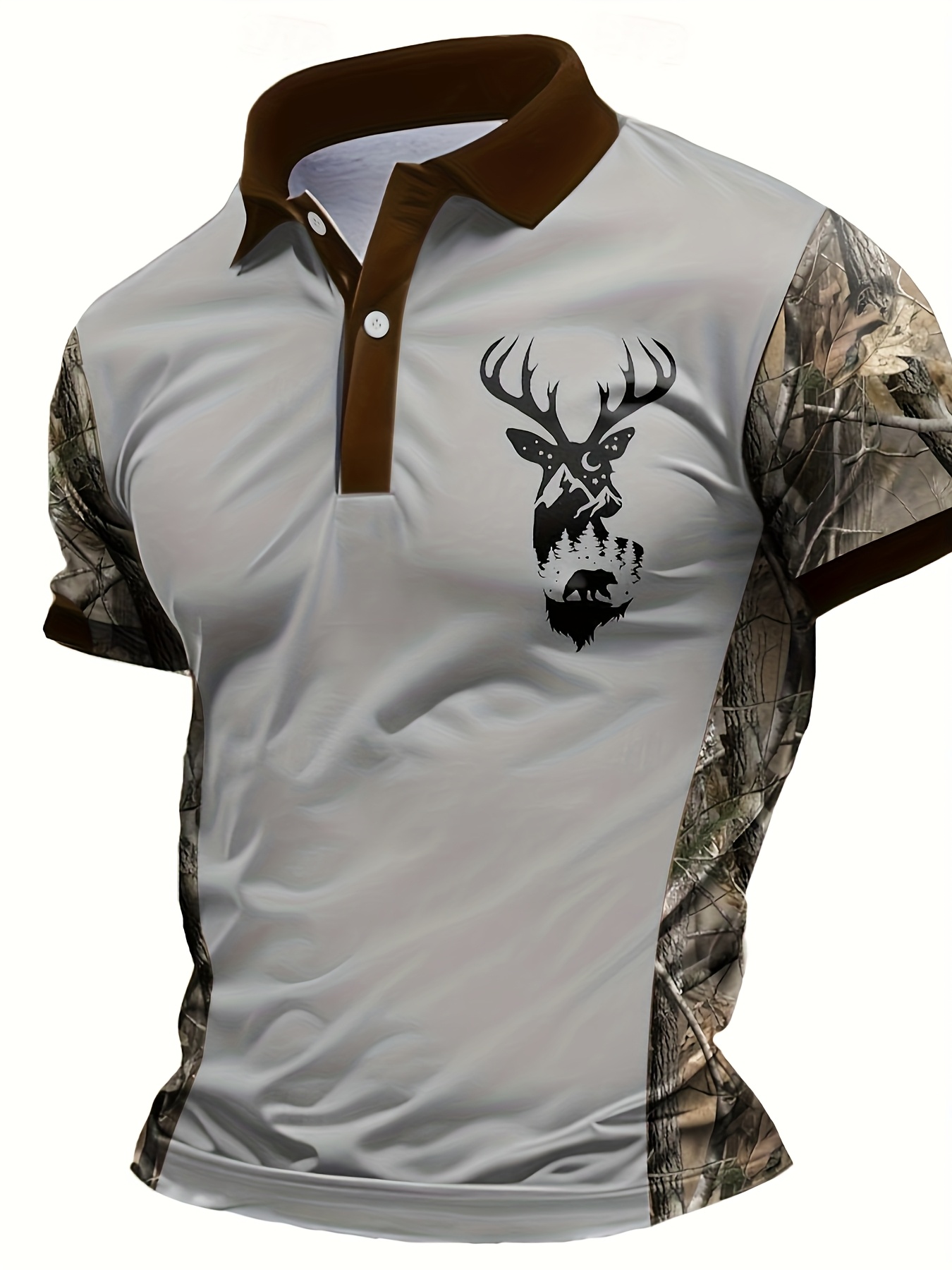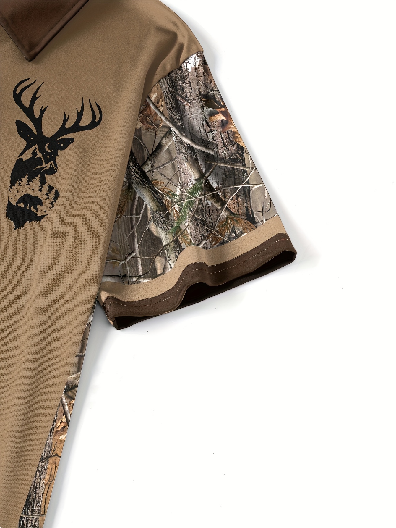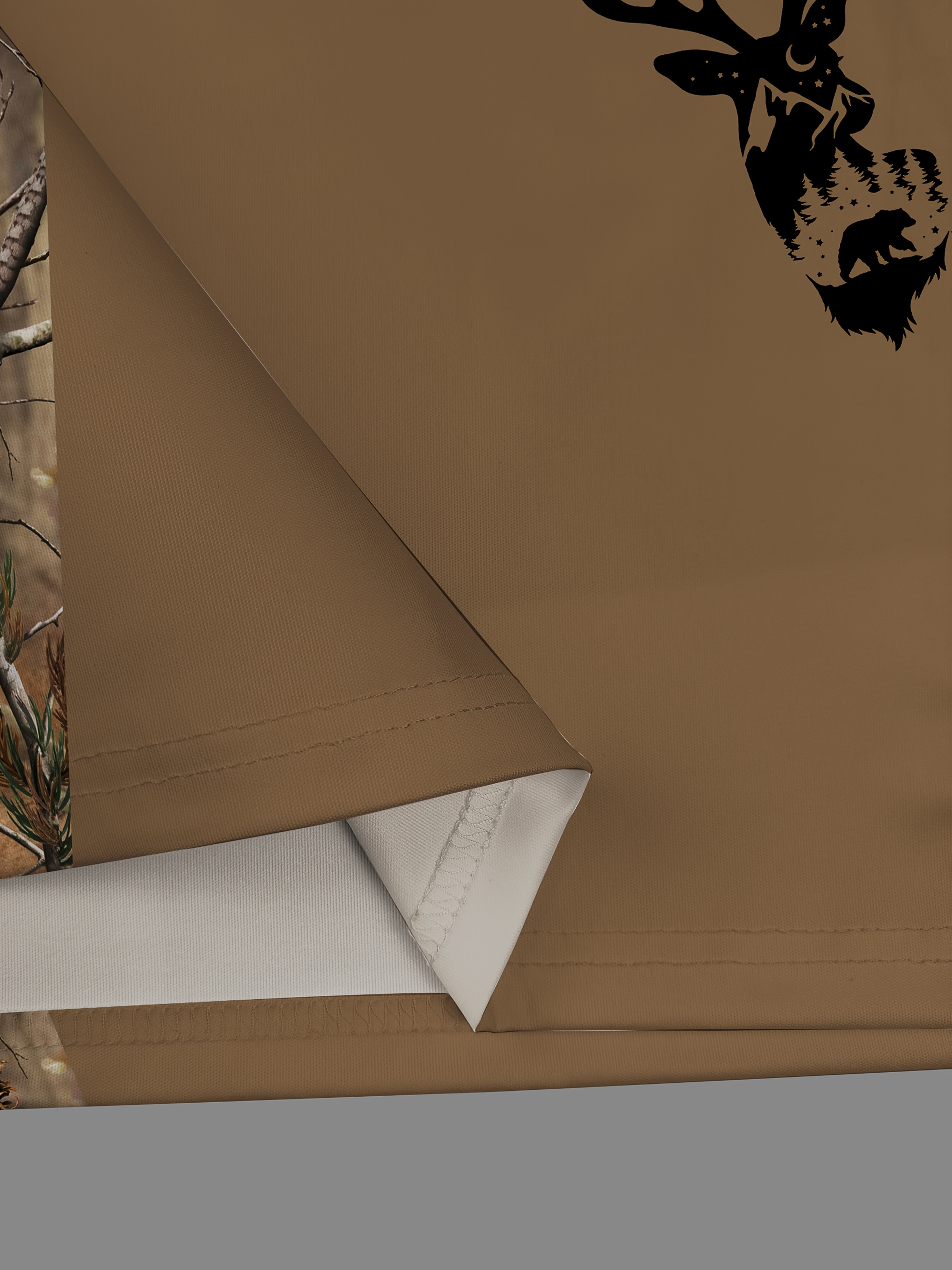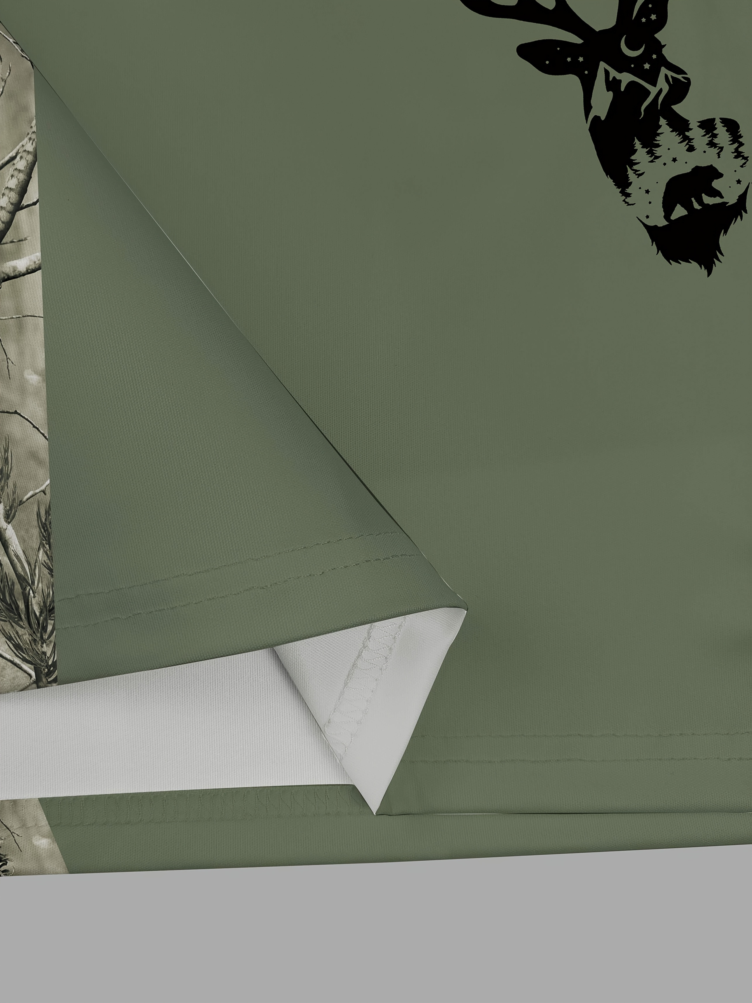 Men's Deer Head Print Camouflage Patchwork Fashion Shirt