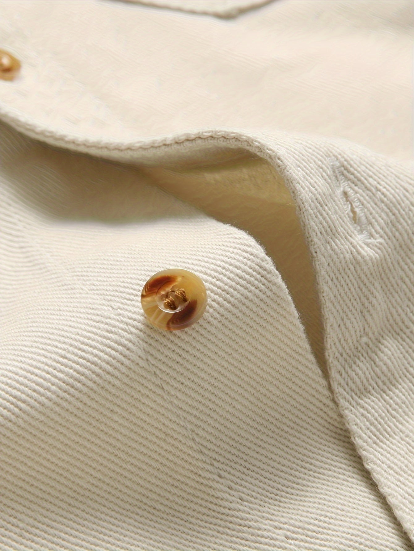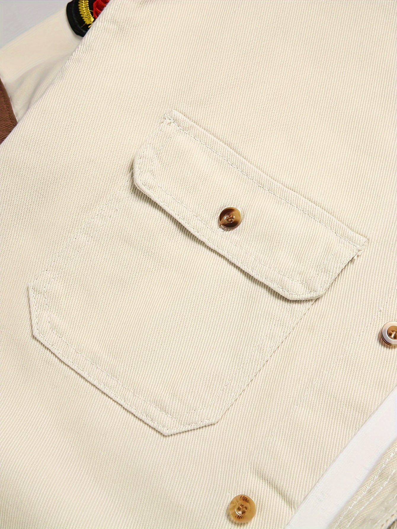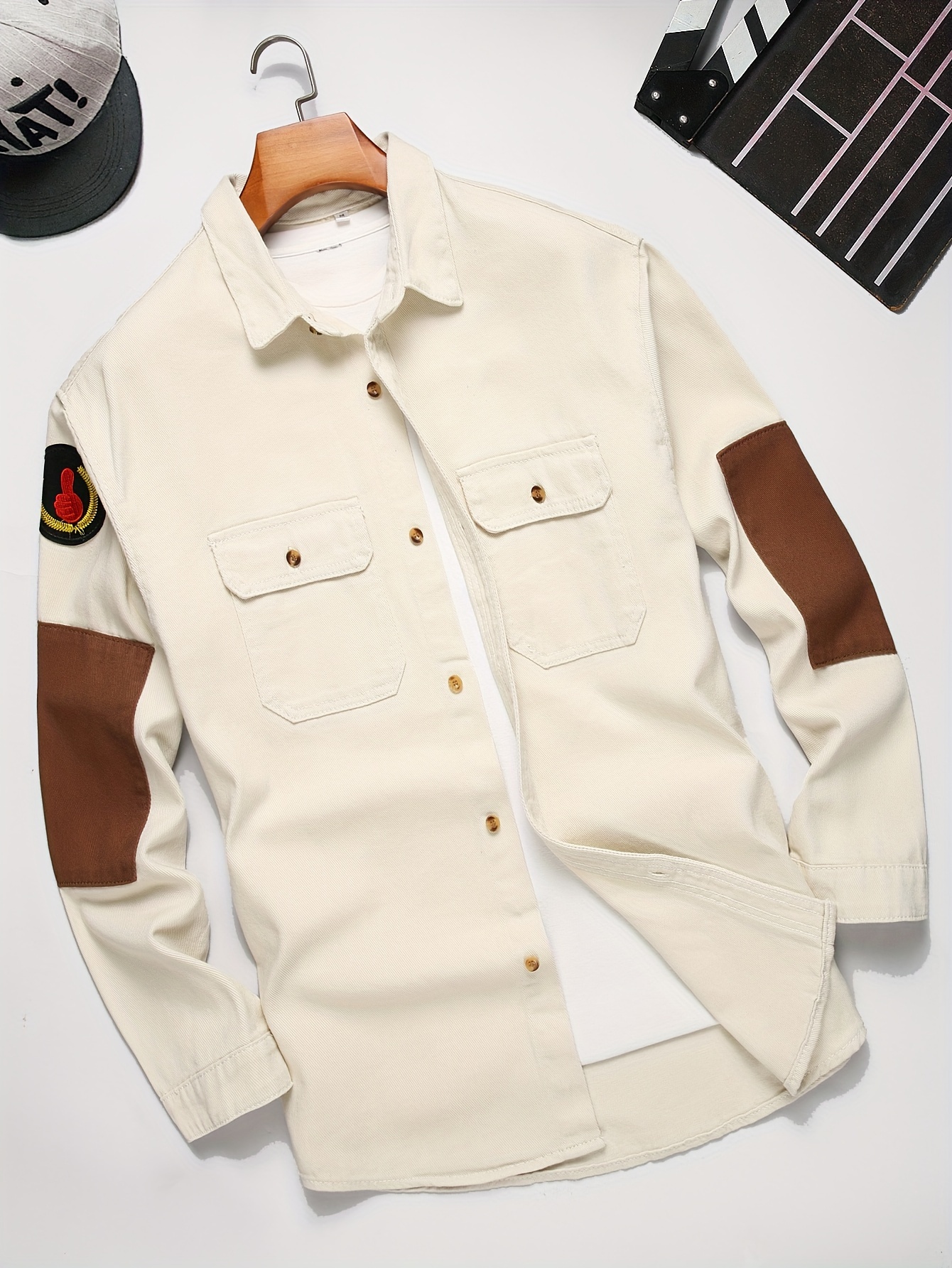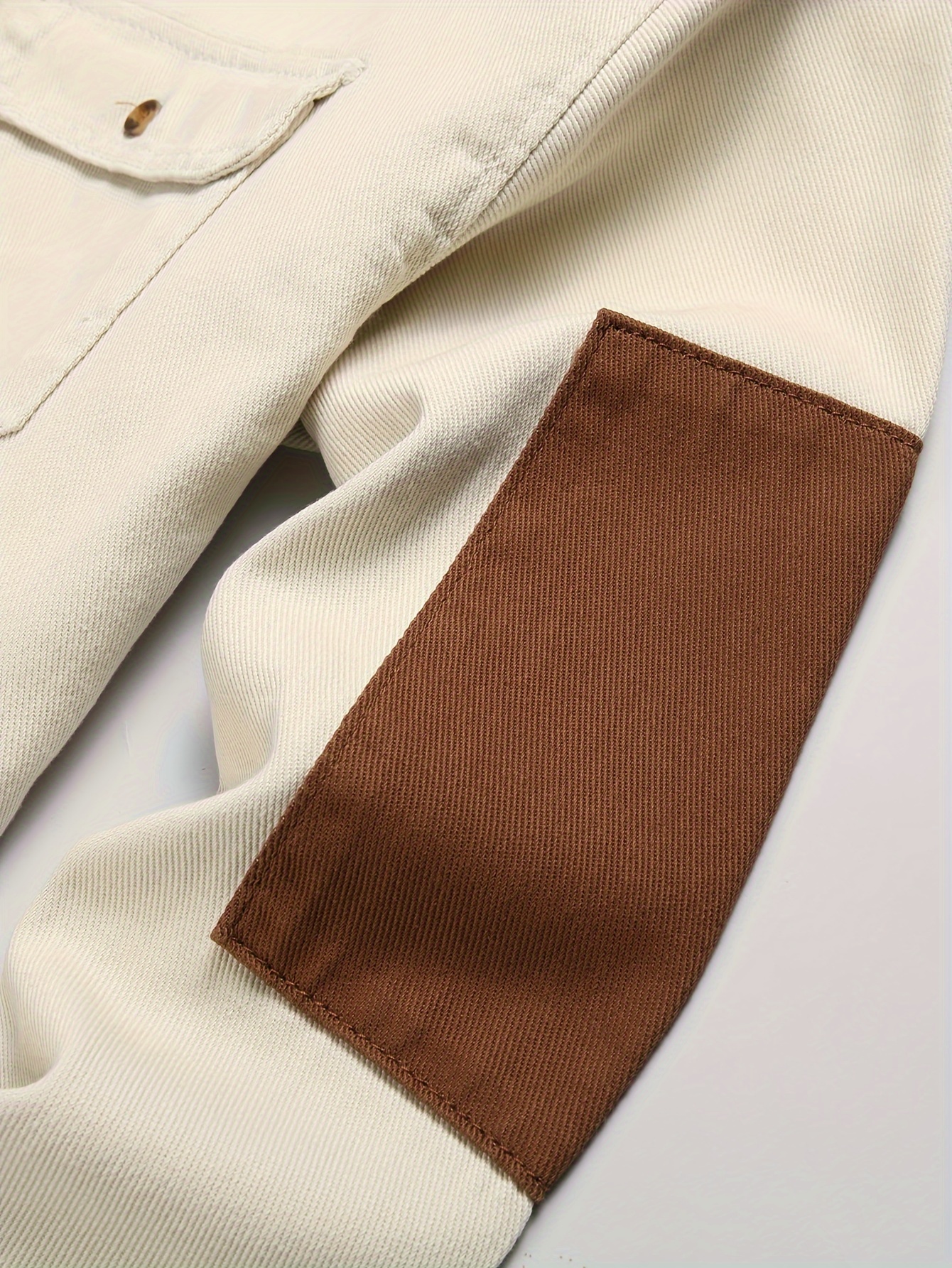 Men's Fashion Street Style Color Block Denim Shirt, Men's Stylish Comfy Denim Shirt For Spring & Autumn Wear