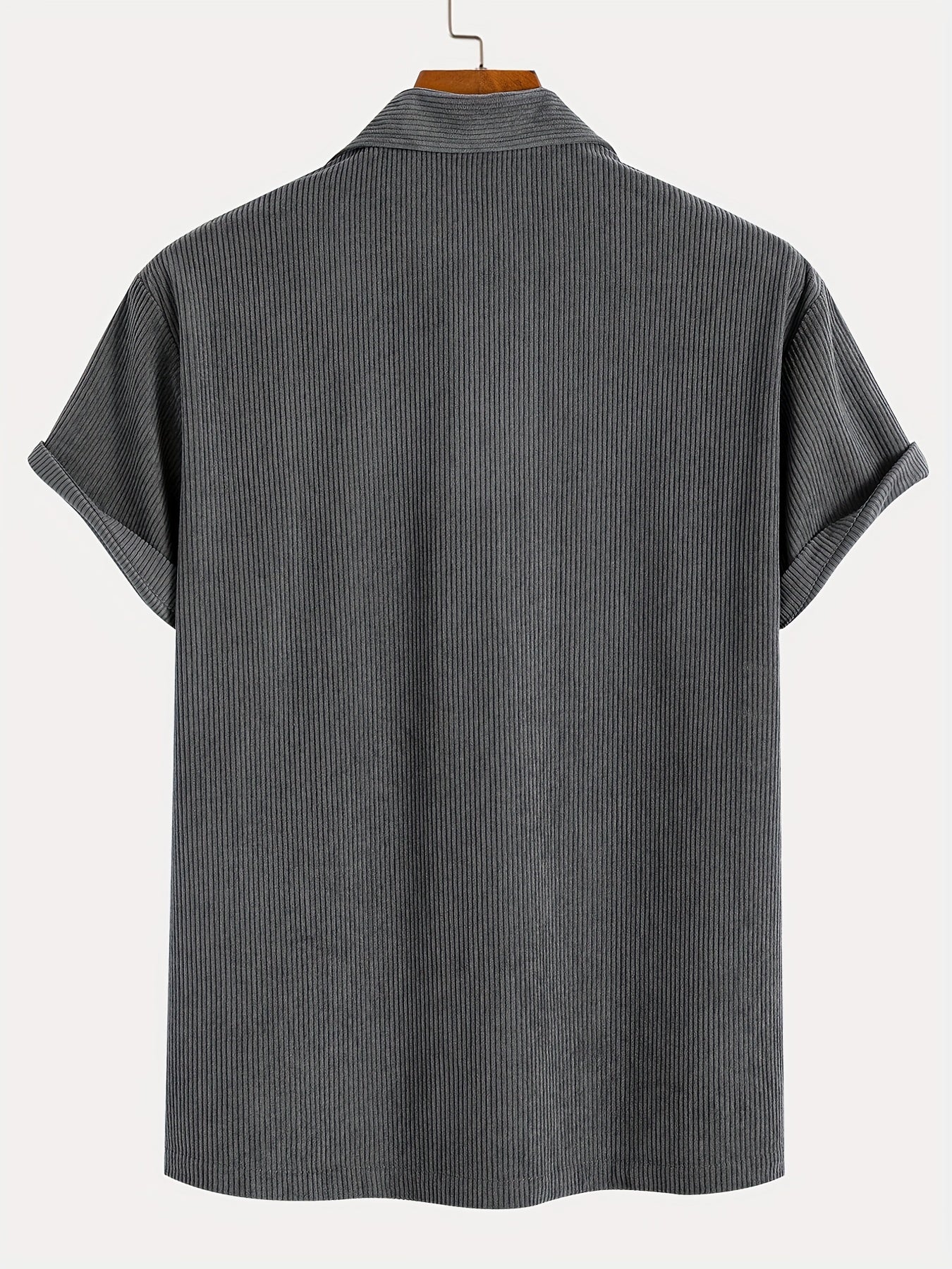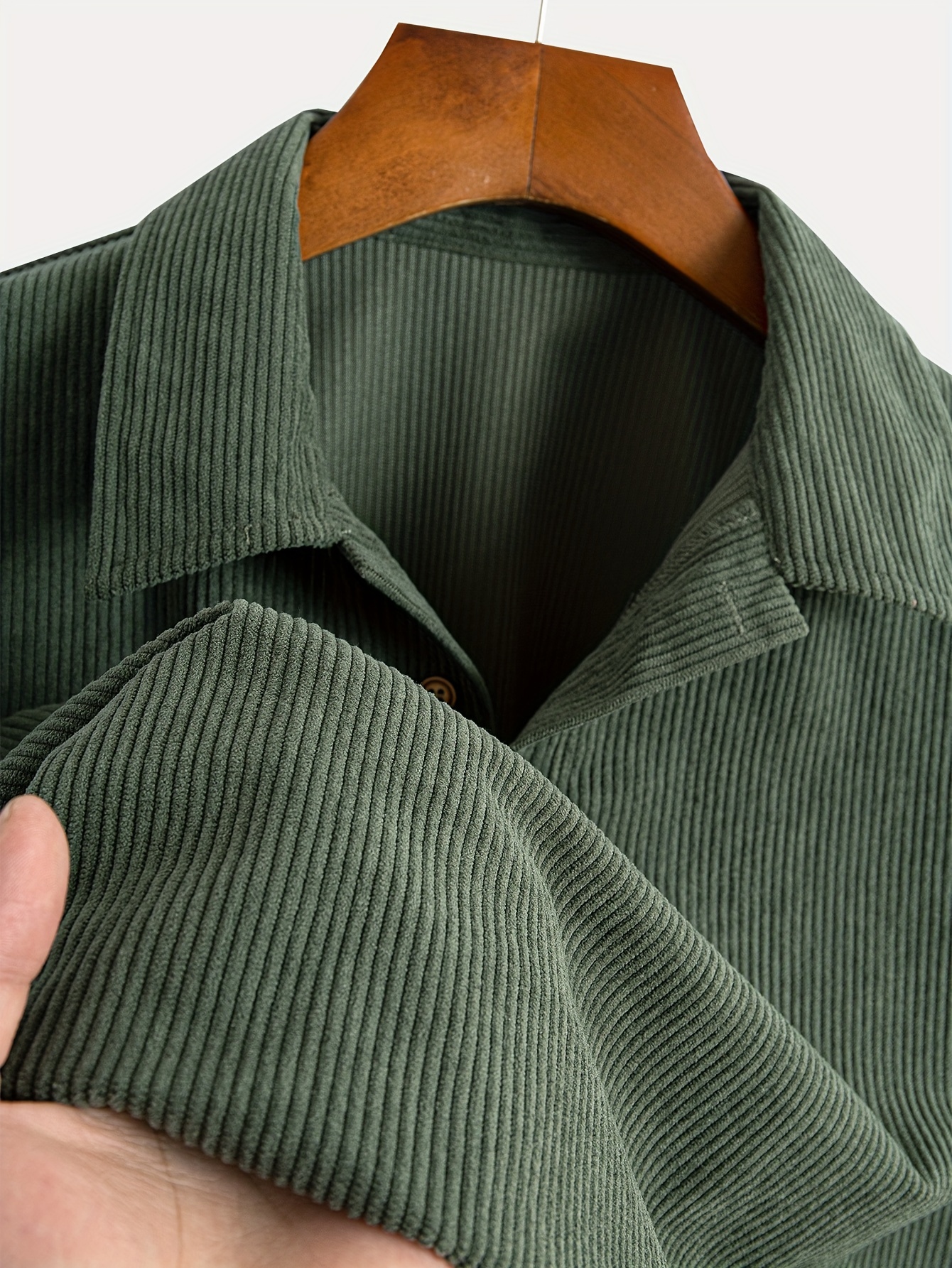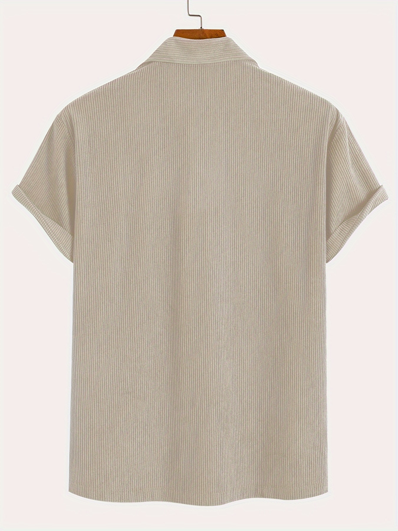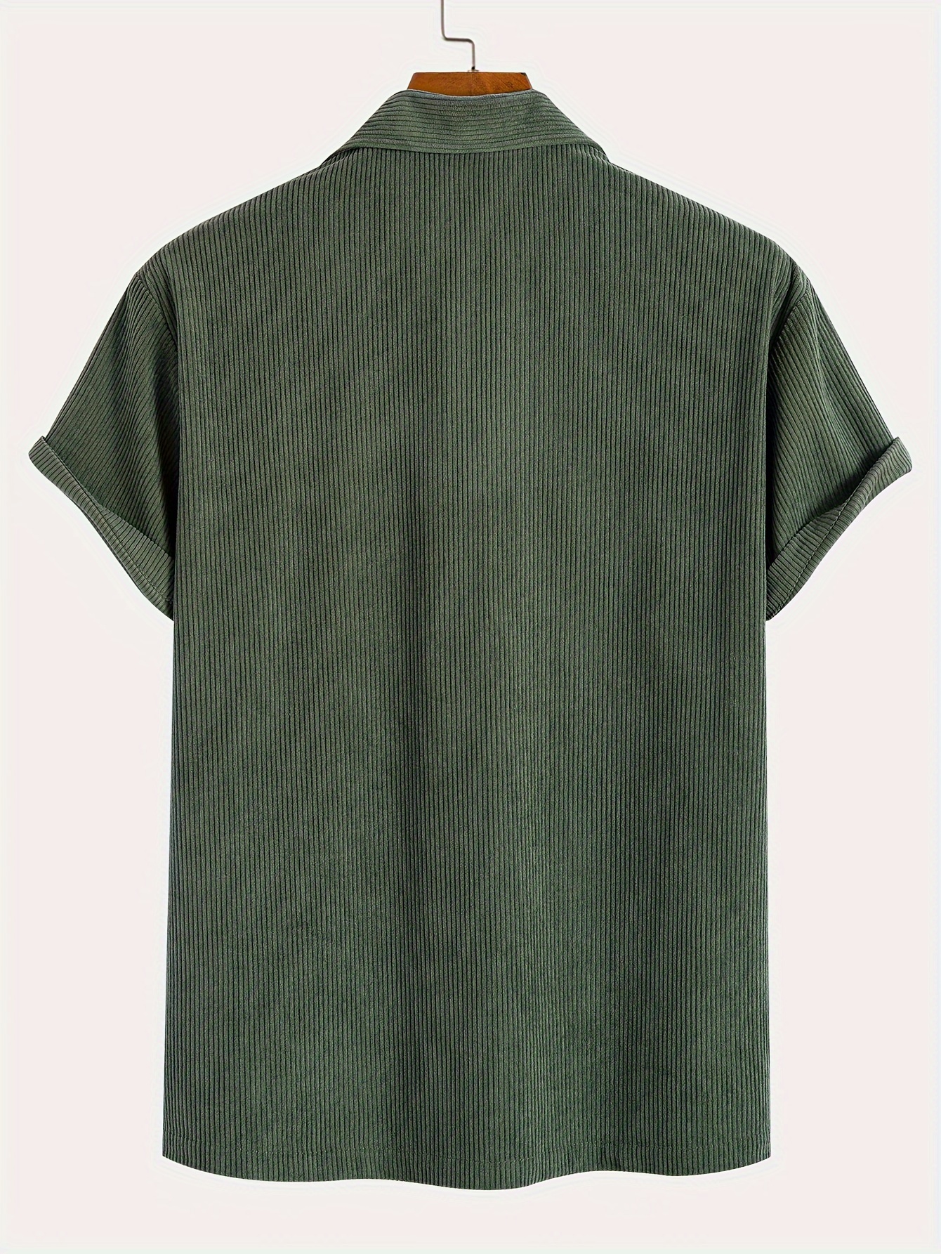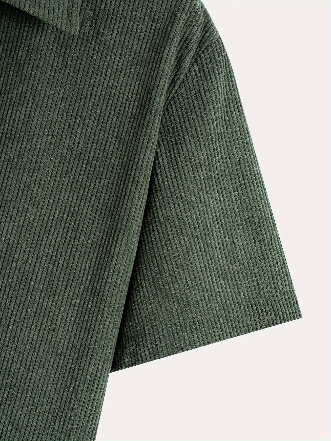 Men's Fashion Stretch Corduroy Shirt, Light Beige-Friendly Breathable Fabric with Turn- Collar and 4/1 Button Half Placket for Casual Streetwear Summer New Arrival in Military Green