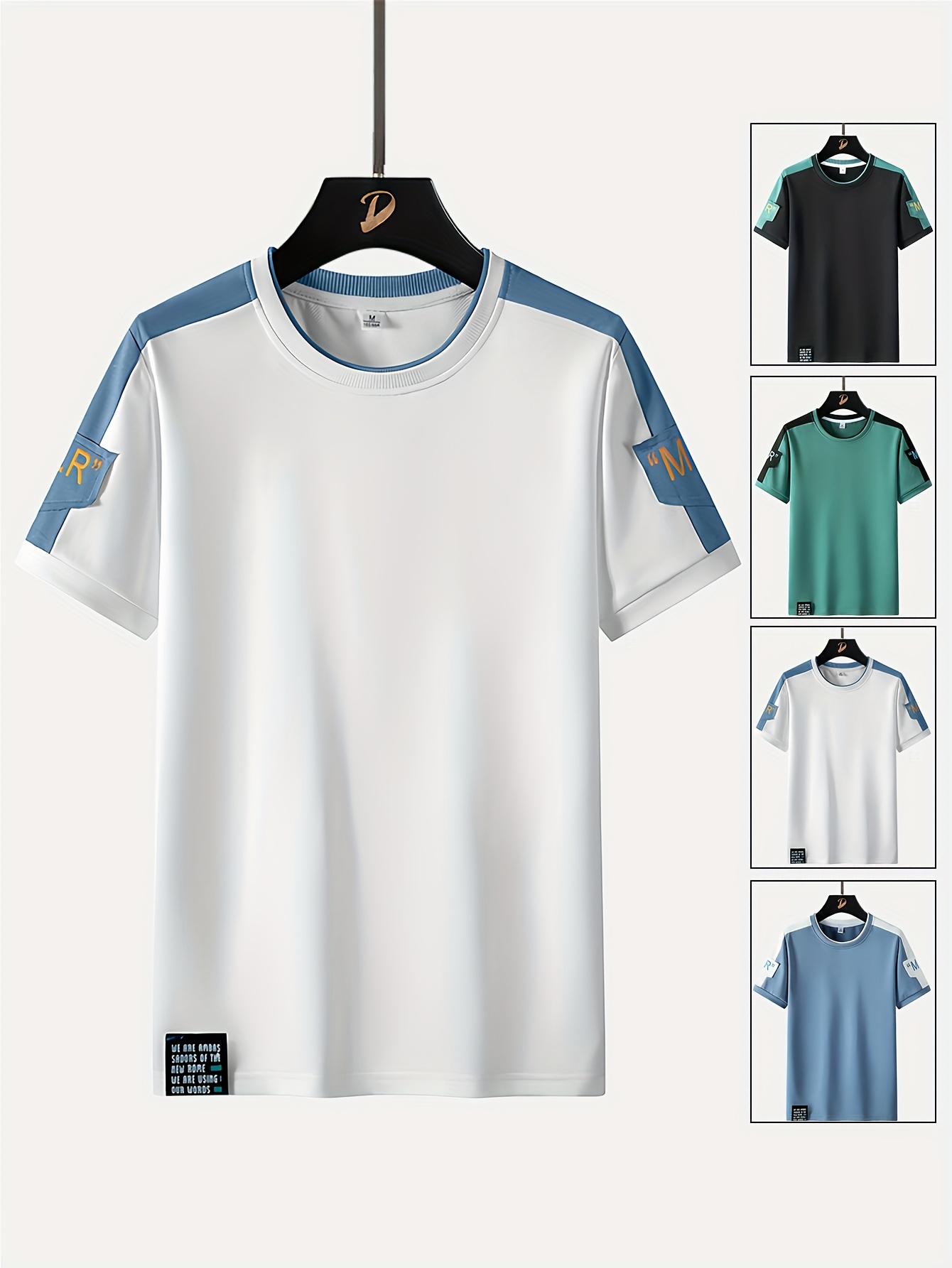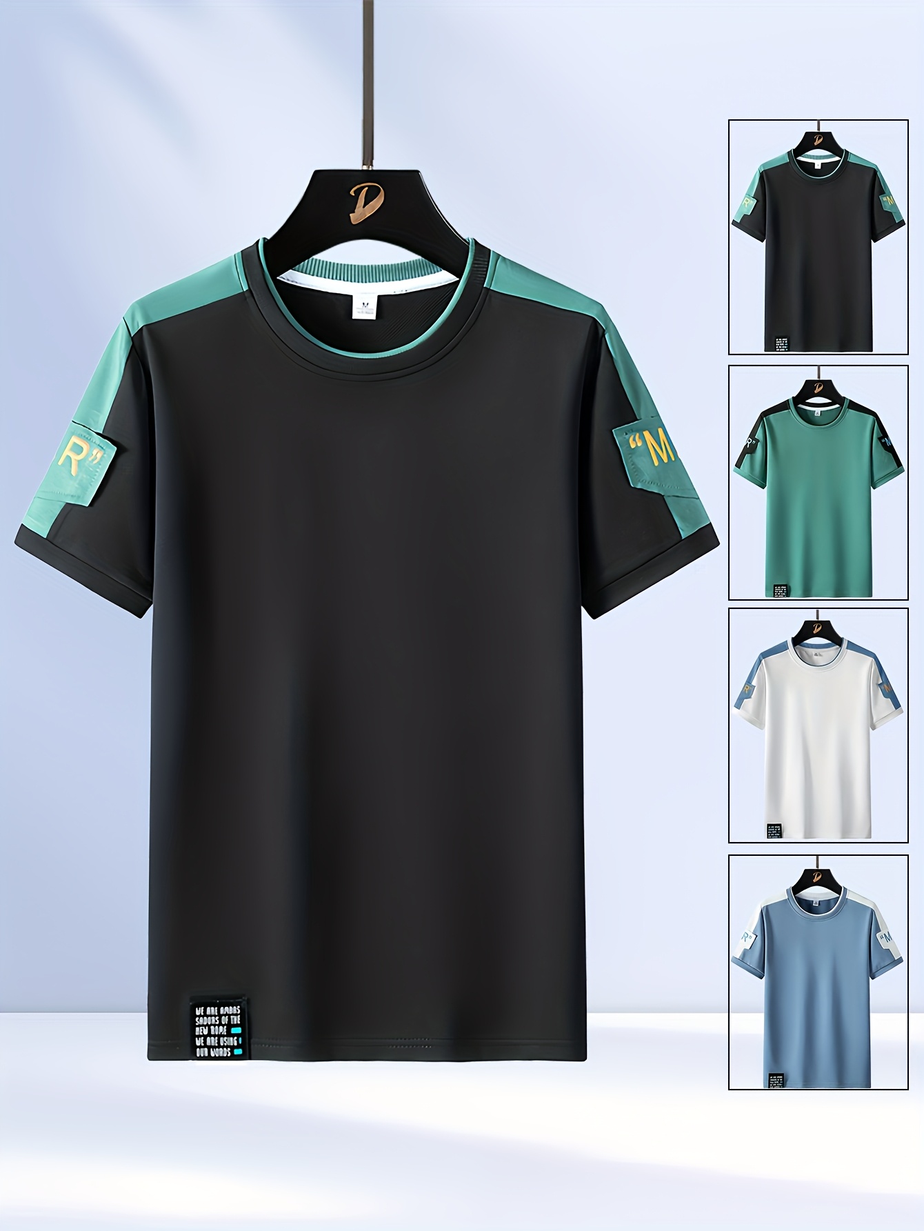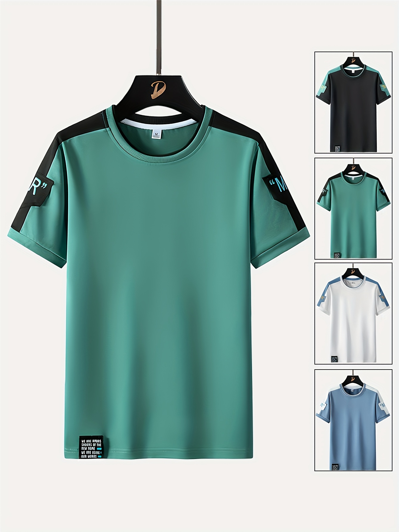 Men's Fashion T-Shirt, Summer Spliced Short-Sleeve Tee for Men, Casual Sporty Round Neck Top with Elastic Breathable Fabric - Versatile Streetwear Gift