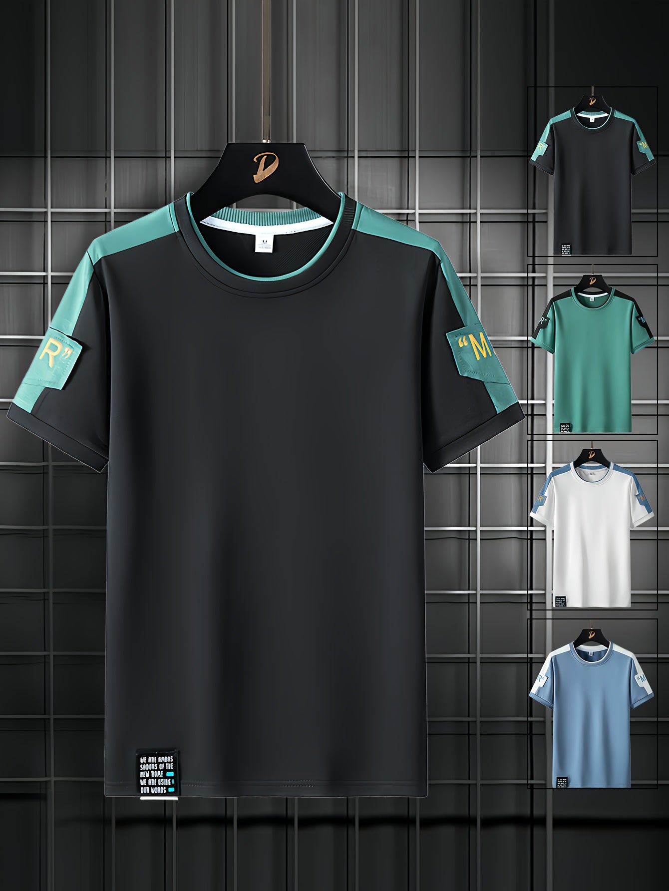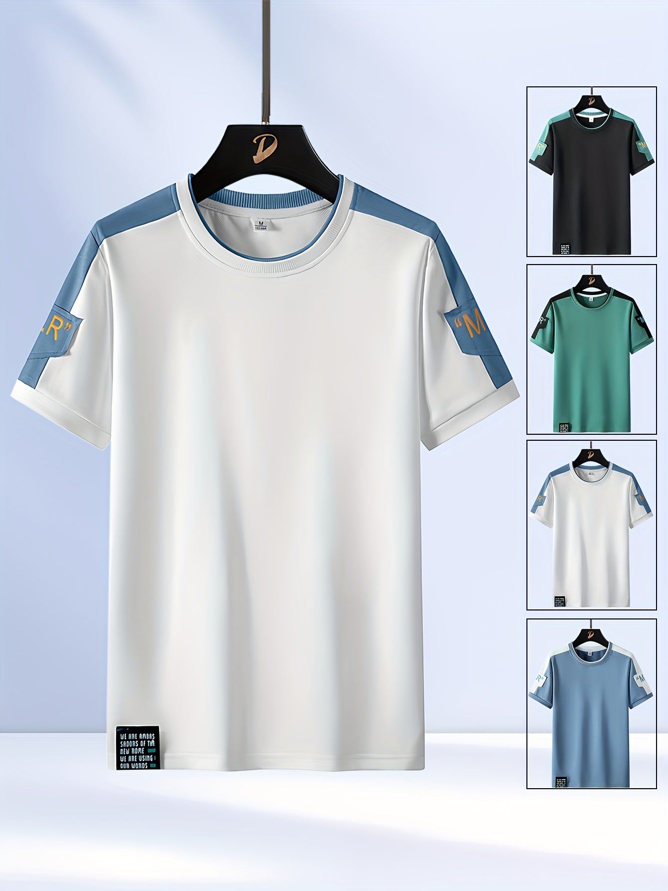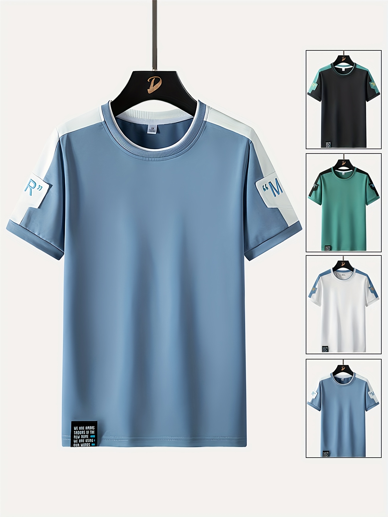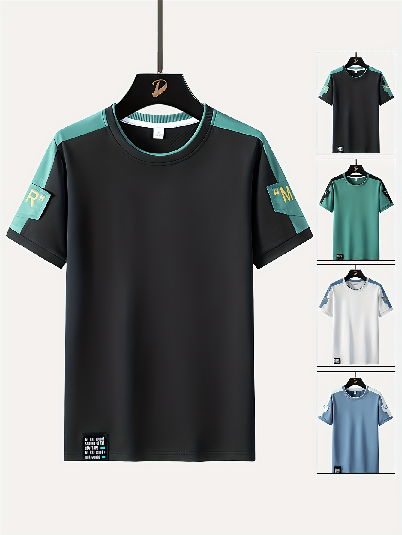 Men's Fashion T-Shirt, Summer Spliced Short-Sleeve Tee for Men, Casual Sporty Round Neck Top with Elastic Breathable Fabric - Versatile Streetwear Gift