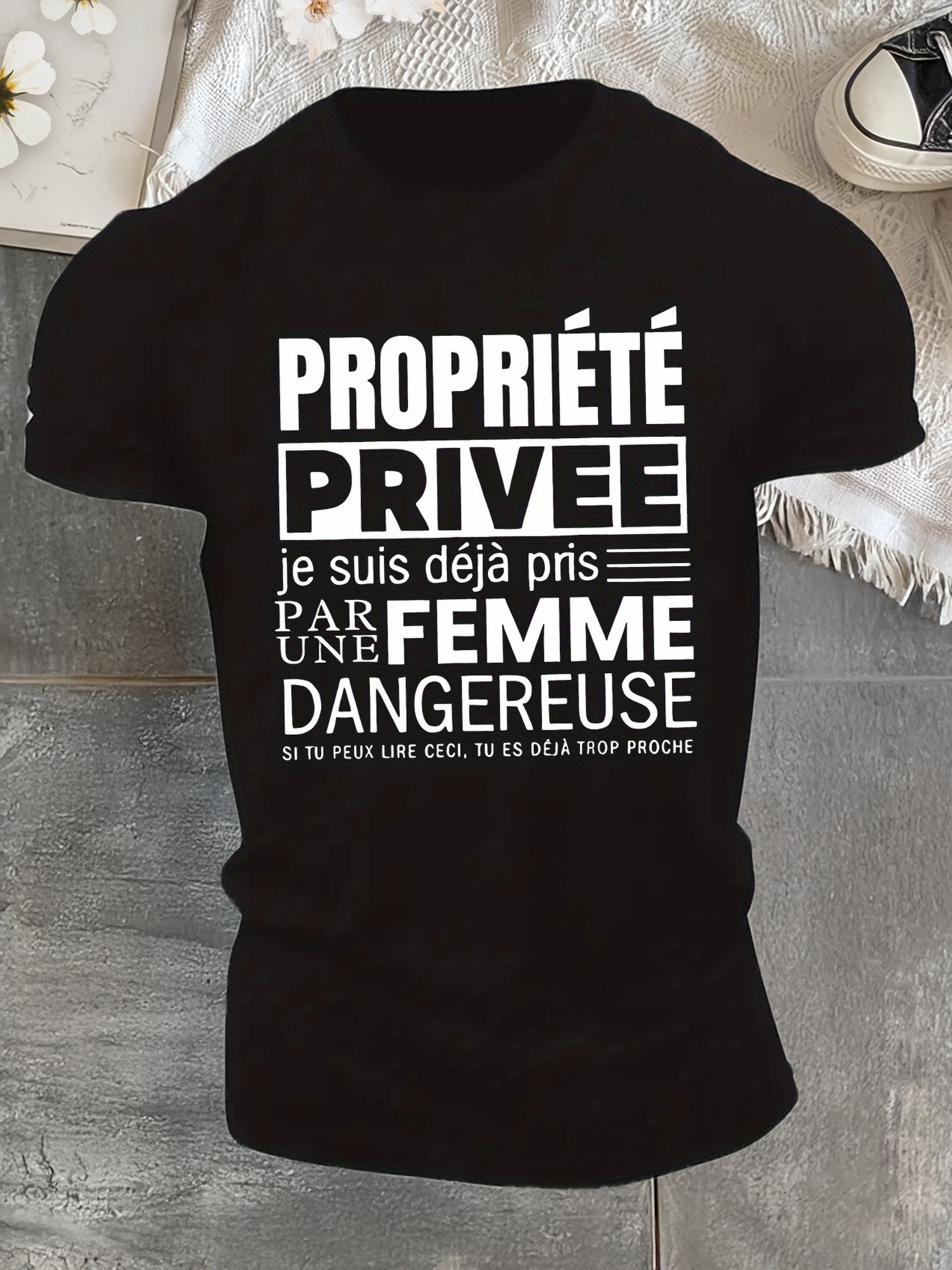 Men'S Humorous French Quote T-Shirt - "Property Rights Are Desired" Graphic Tee, Casual Crew Neck, Lightweight Polyester, Summer Wear, White with Black Text, Casual Summer Wear | Crew Neck Tee | Geometric Pattern Shirt, Funny
