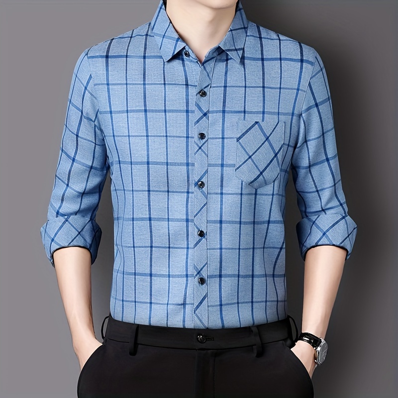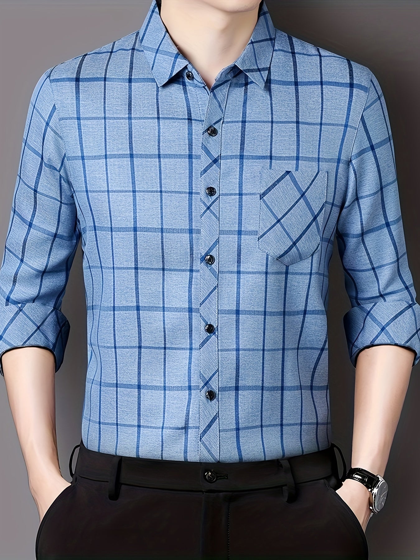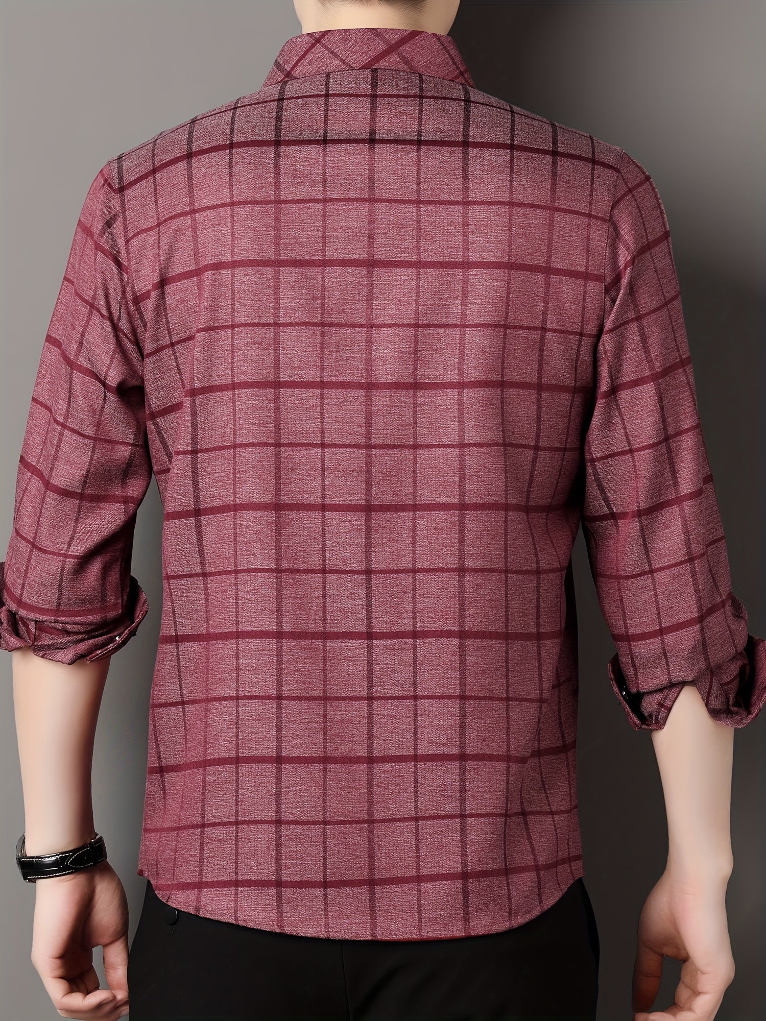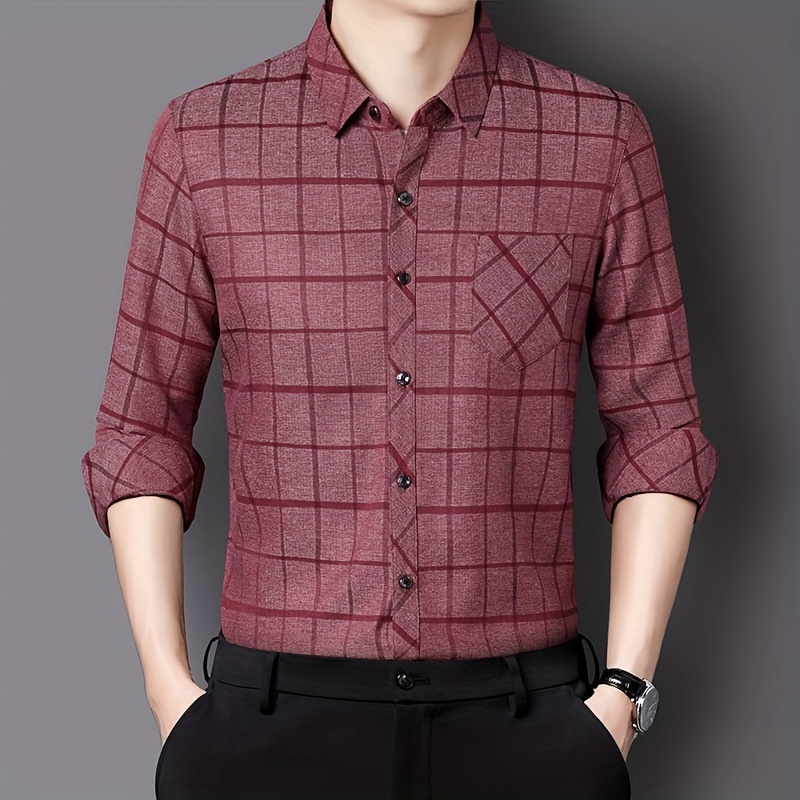 Men'S Long-Sleeve Checkered Shirt, Stylish And Casual, Perfect for Everyday Wear.