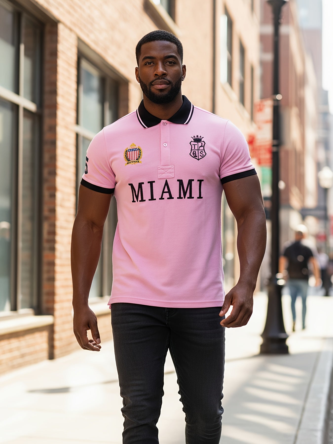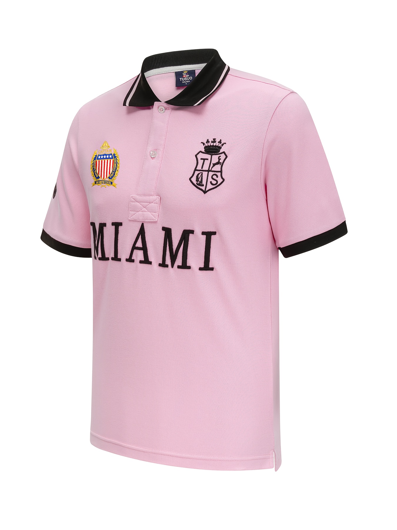 Men'S Miami Pink Polo Shirt | Slim Fit with Embroidered Details and Slit Hem, Casual Style