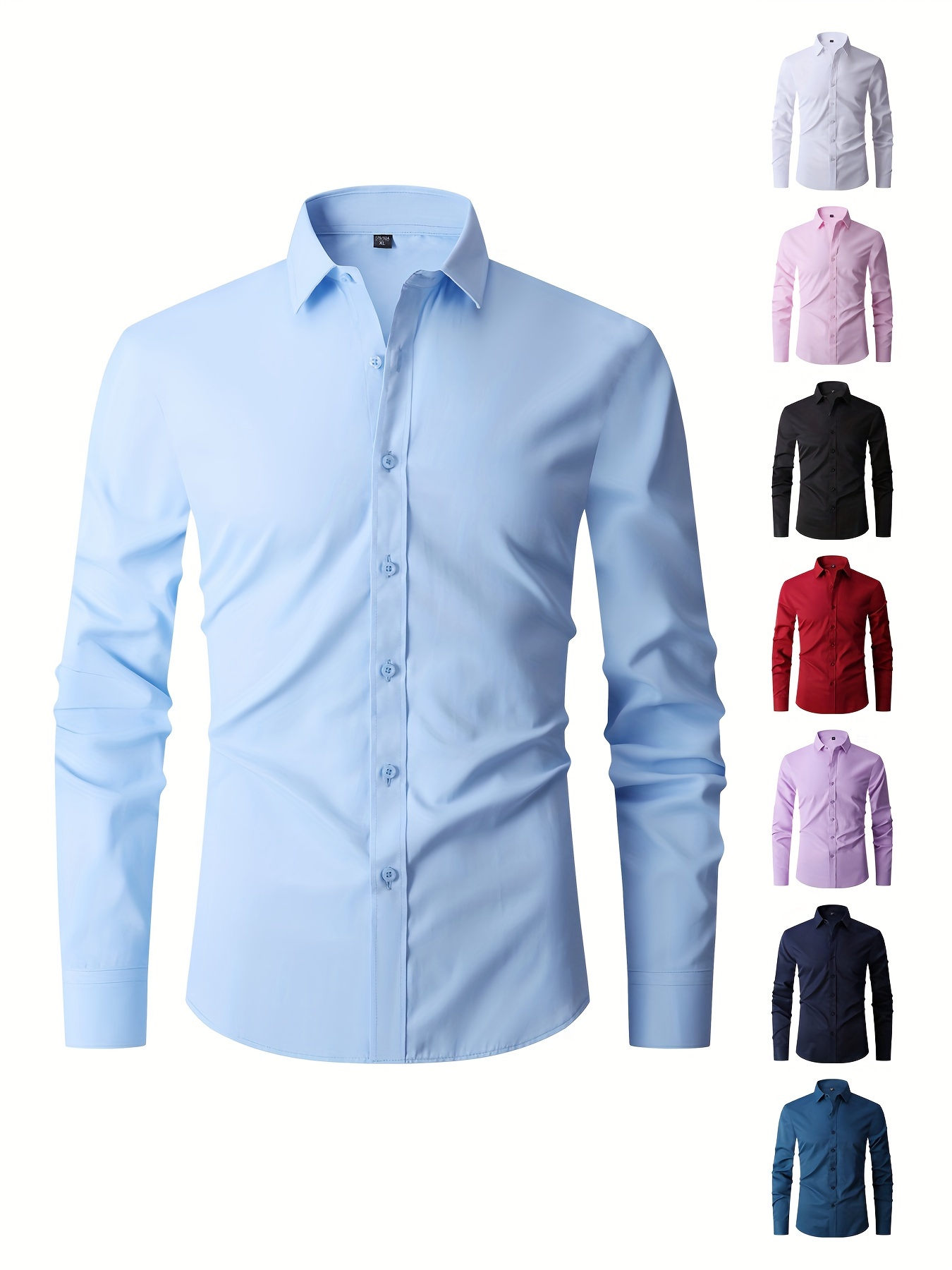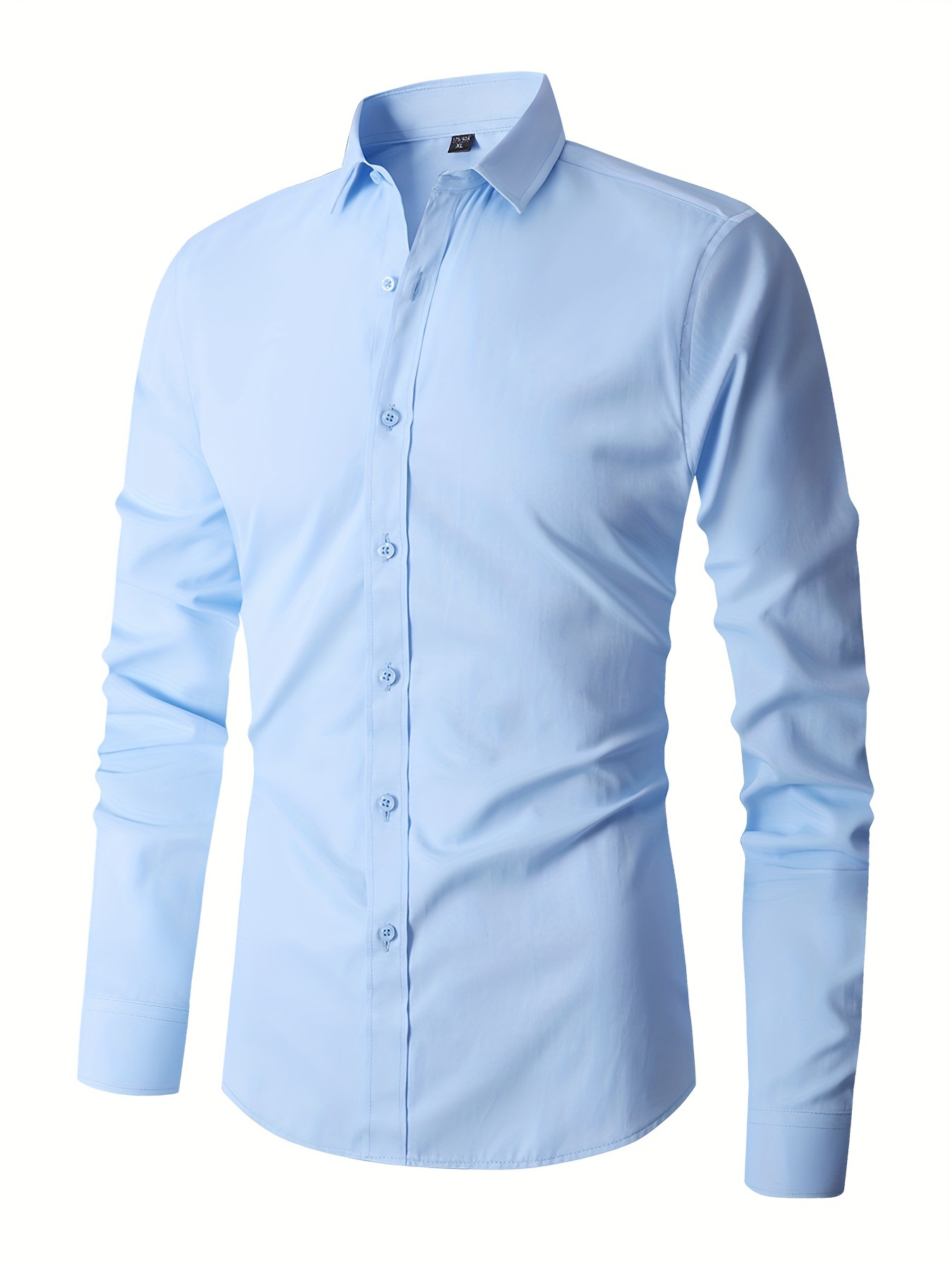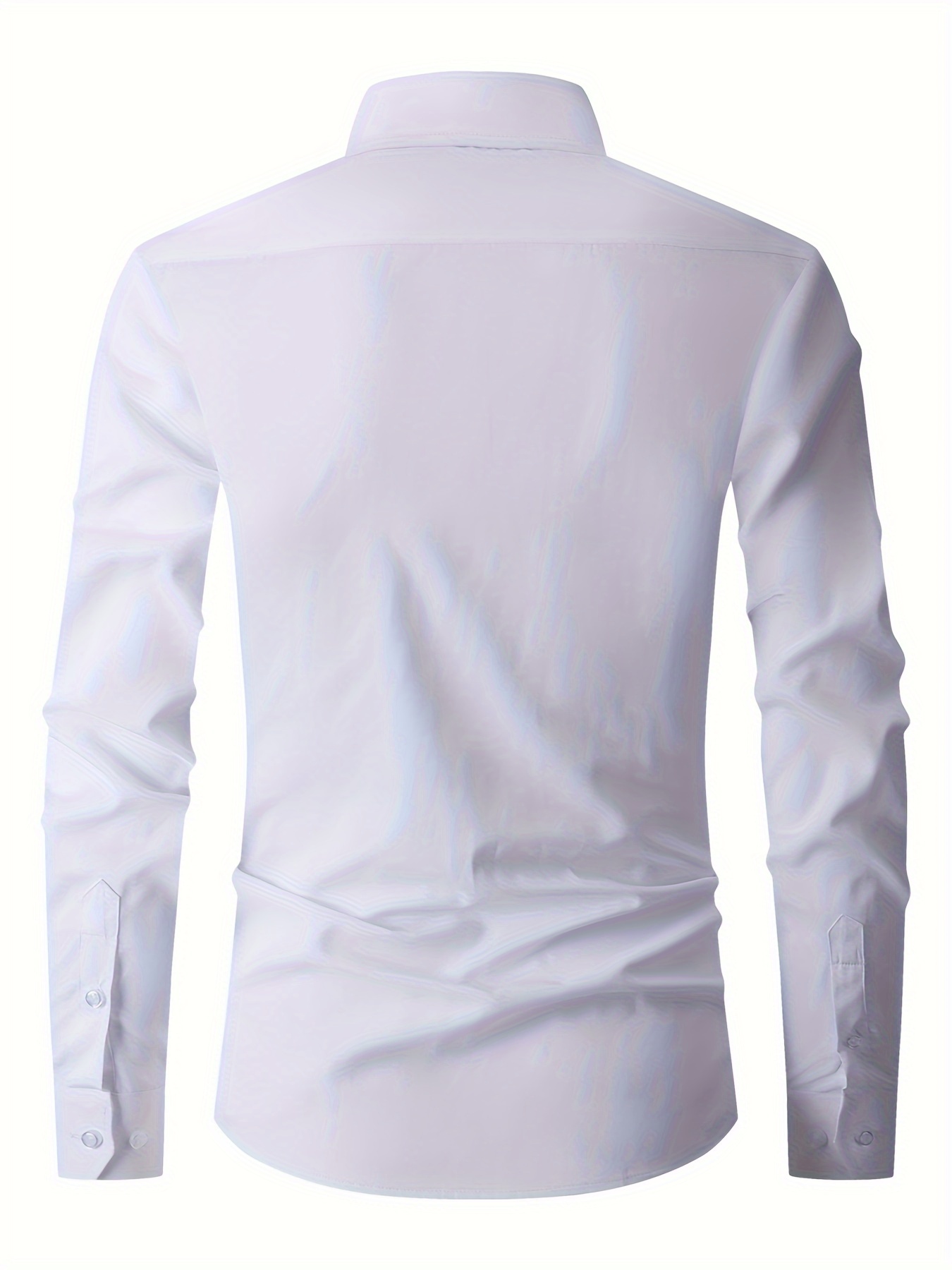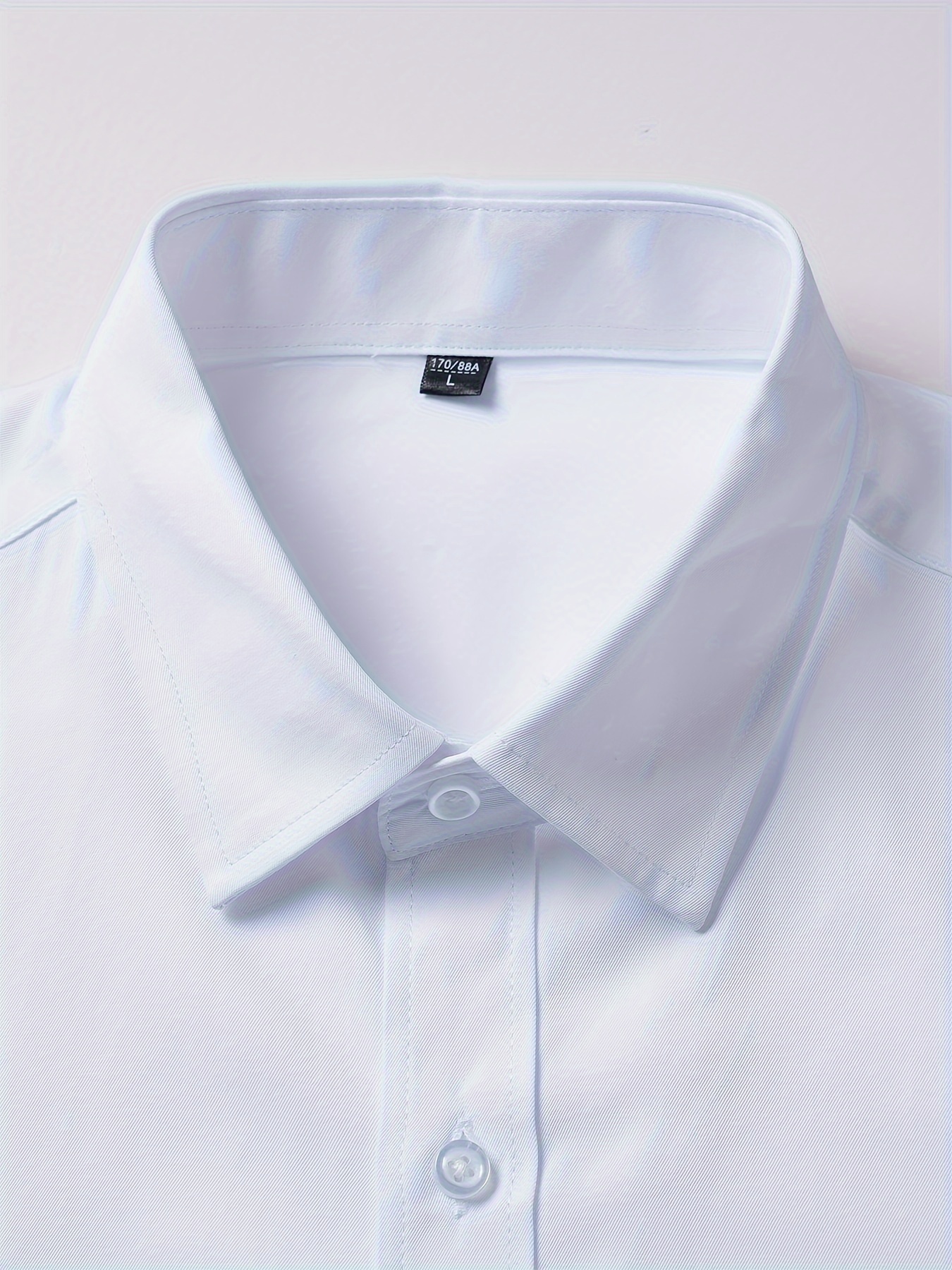 Men'S New Long-Sleeve Shirt, Slim Fit for Young Adults, Business Casual White Shirt in Solid Color, Available in Large Sizes.