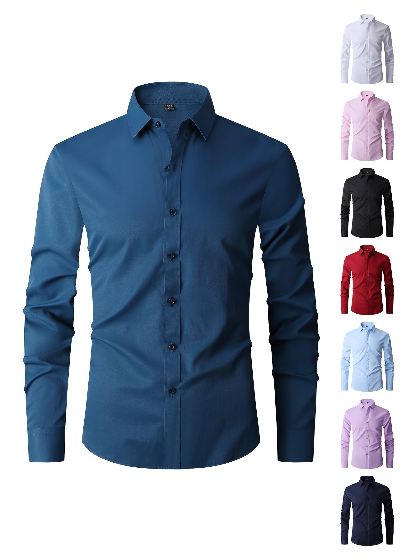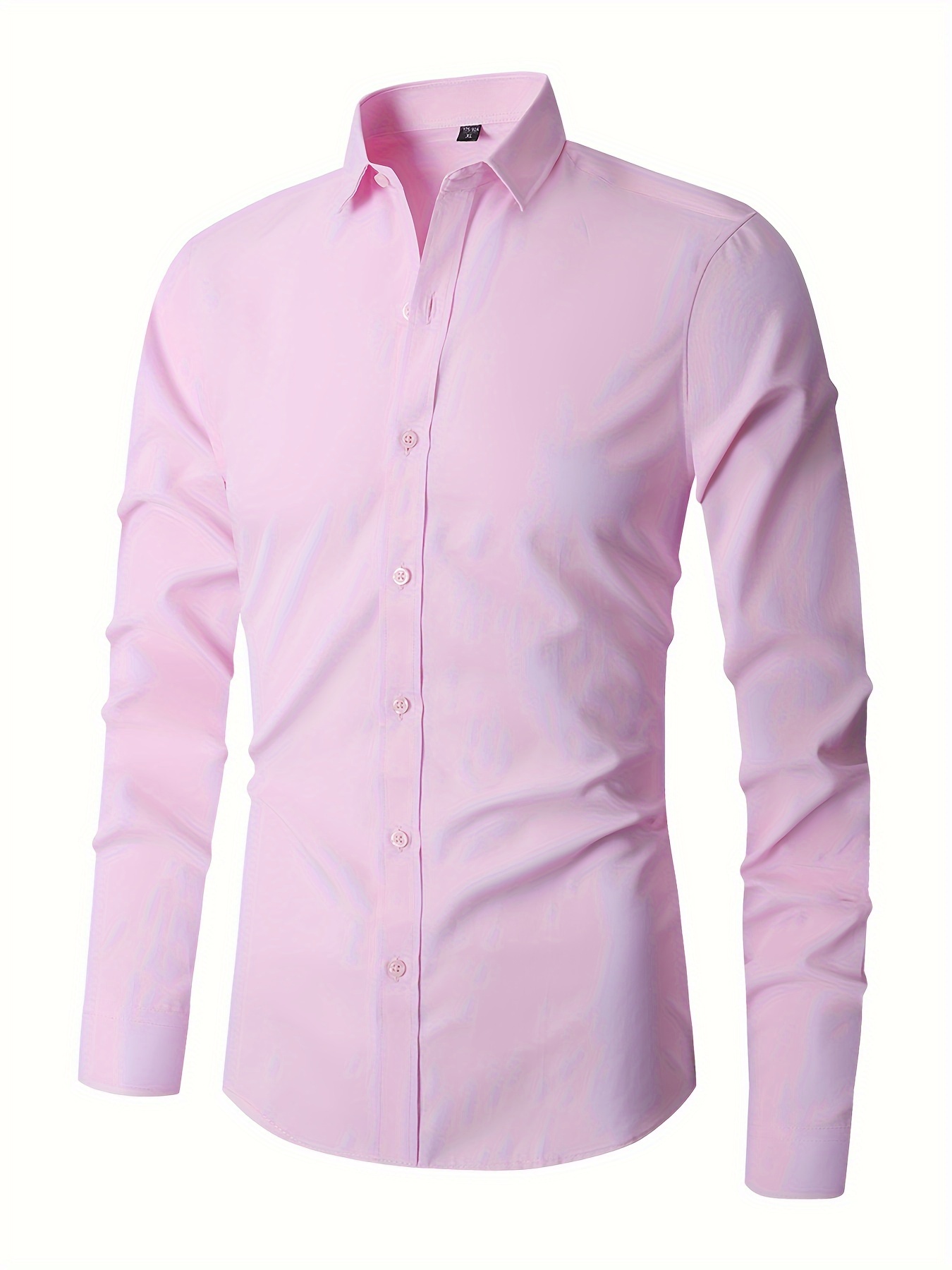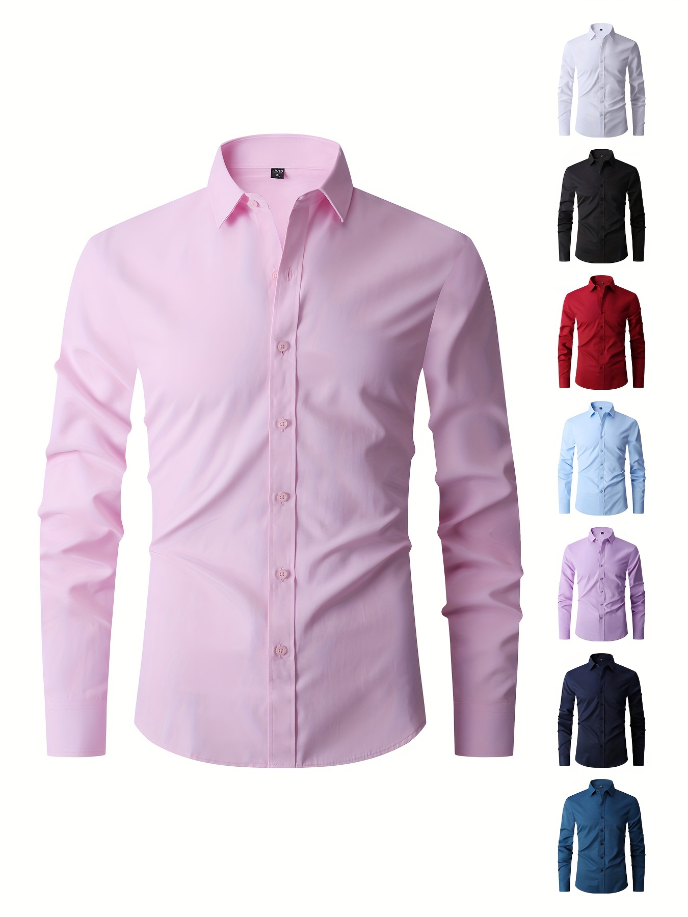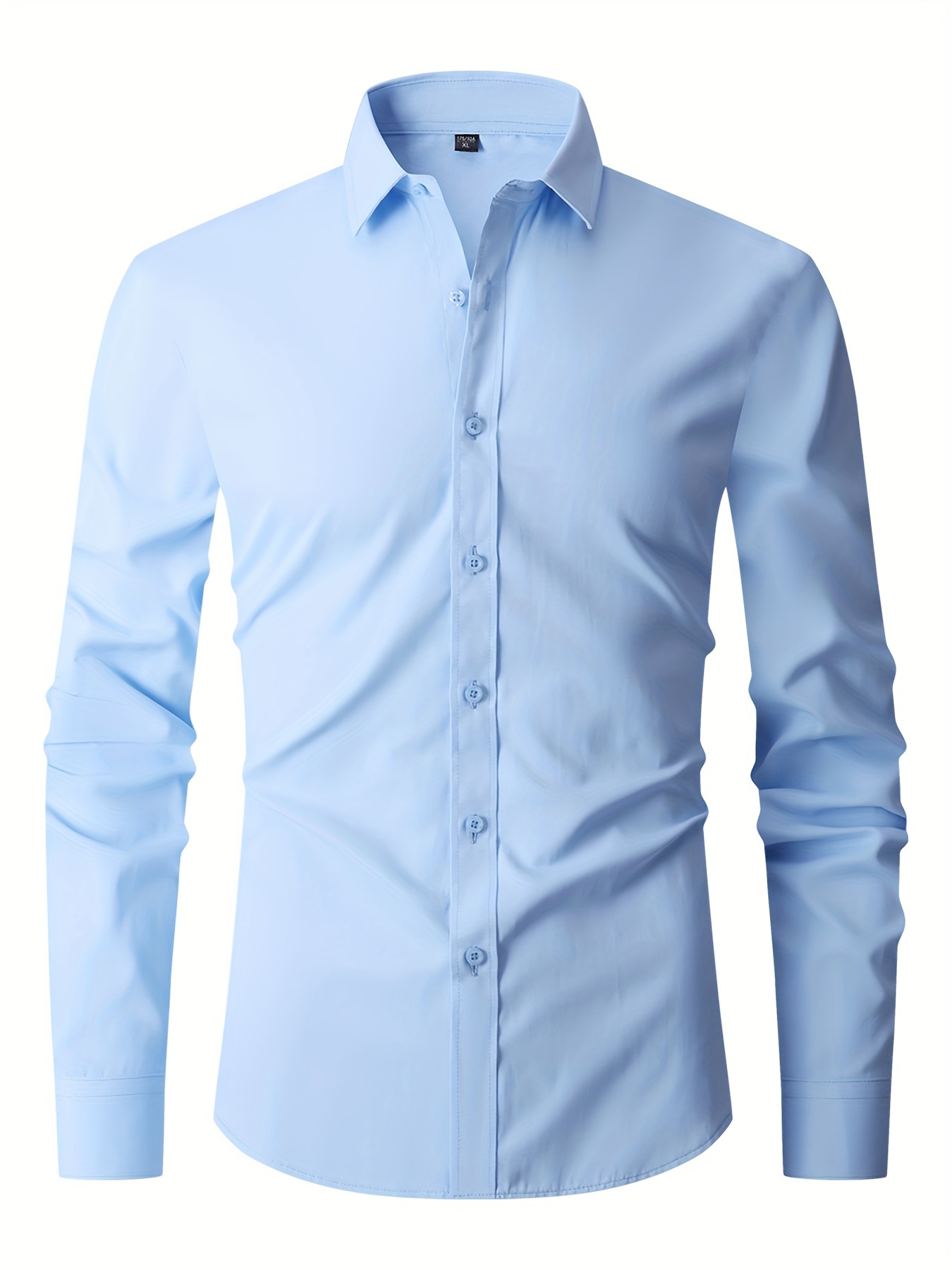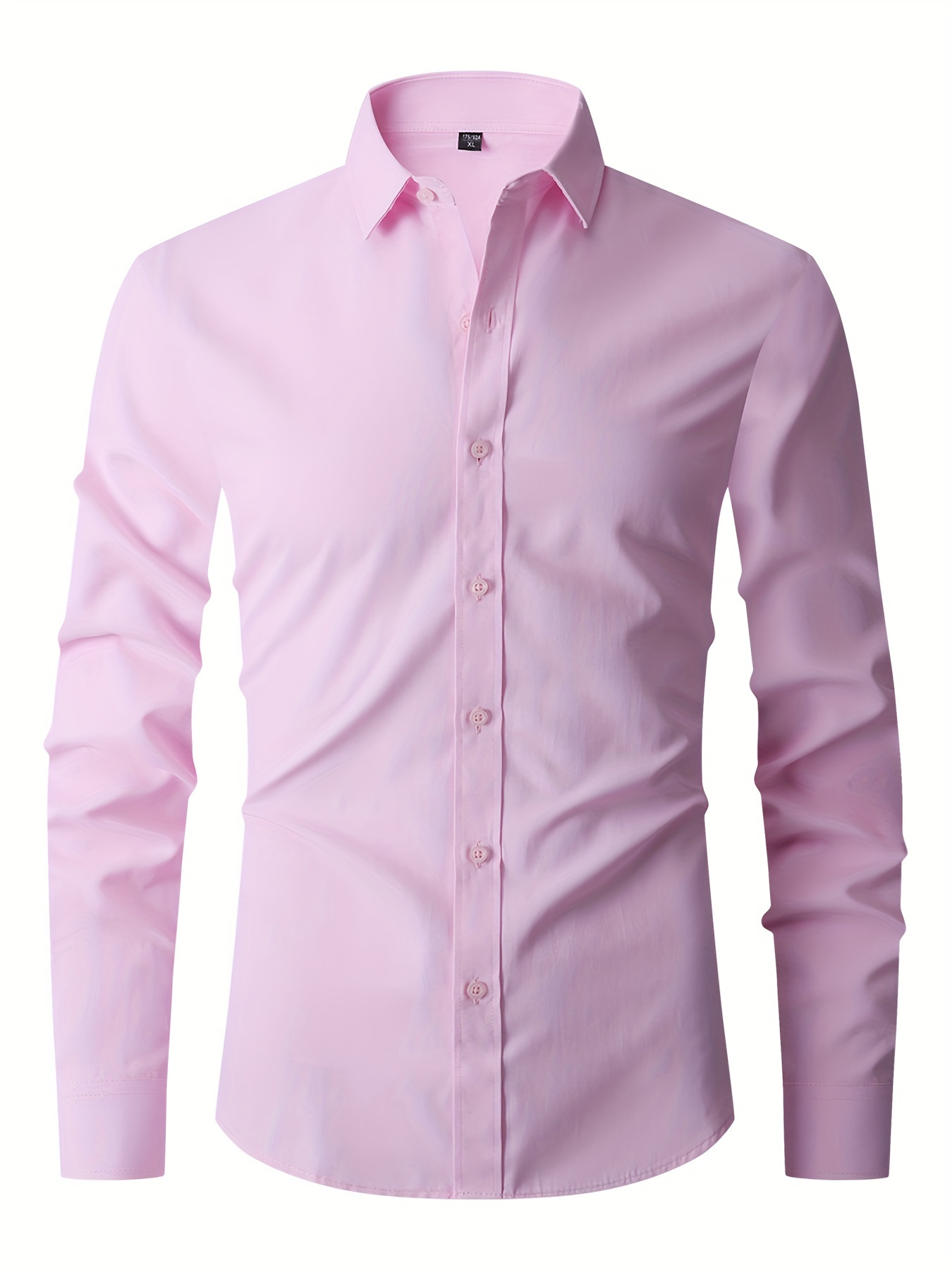 Men'S New Long-Sleeve Shirt, Slim Fit for Young Adults, Business Casual White Shirt in Solid Color, Available in Large Sizes.