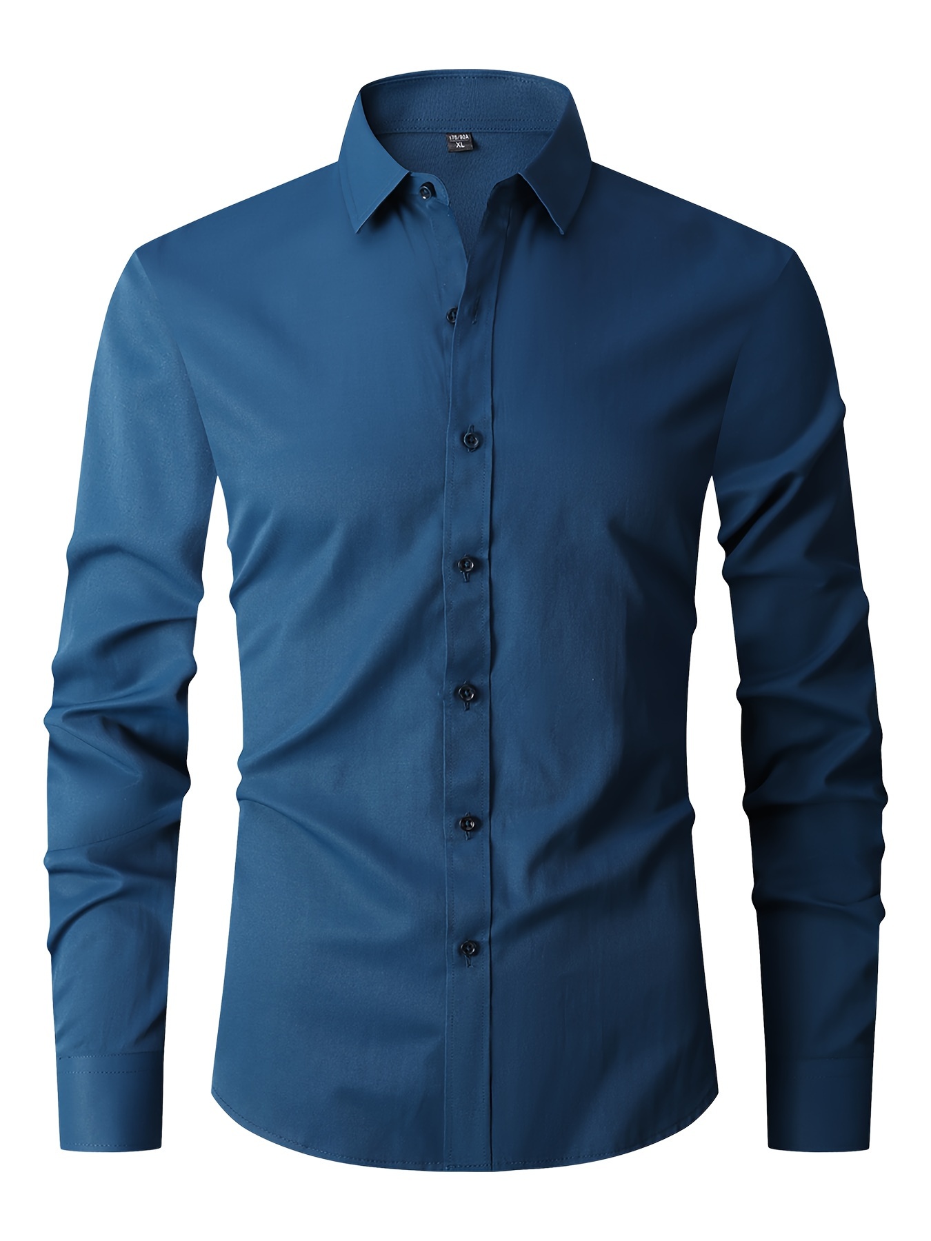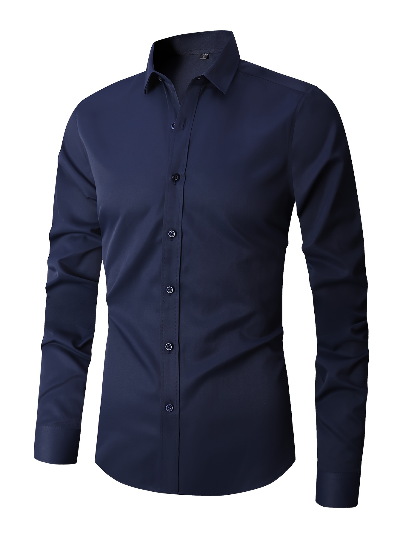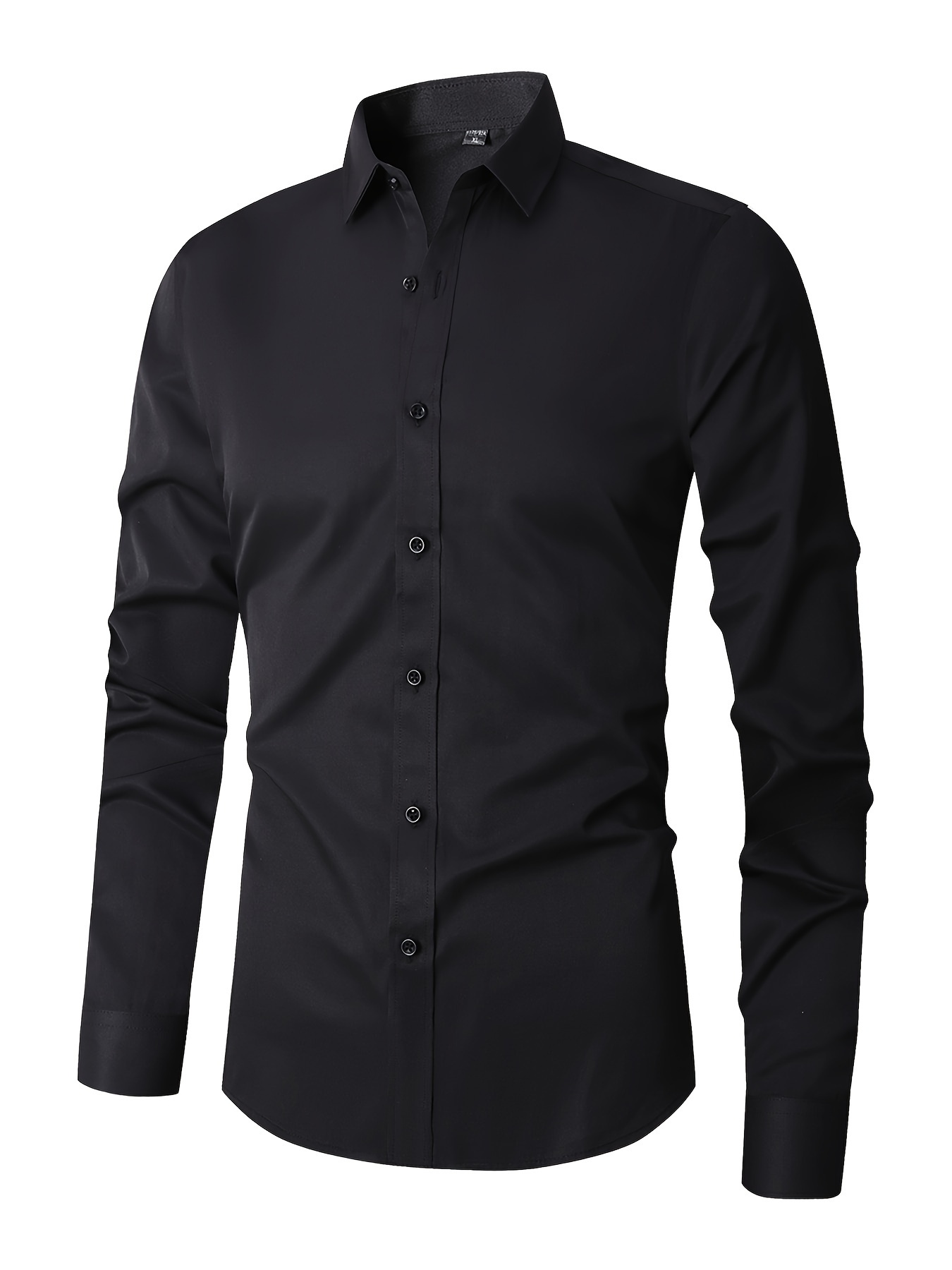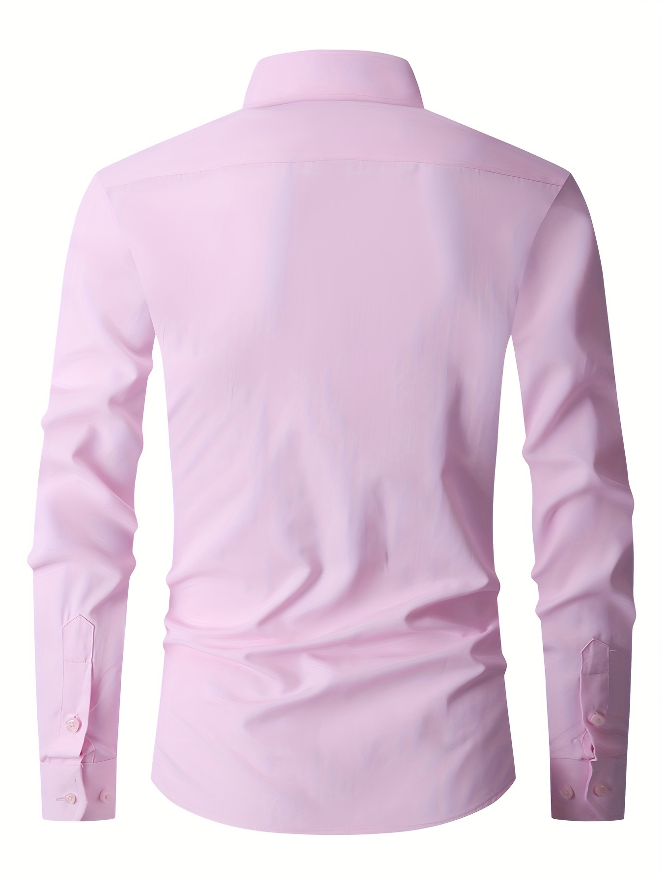 Men'S New Long-Sleeve Shirt, Slim Fit for Young Adults, Business Casual White Shirt in Solid Color, Available in Large Sizes.