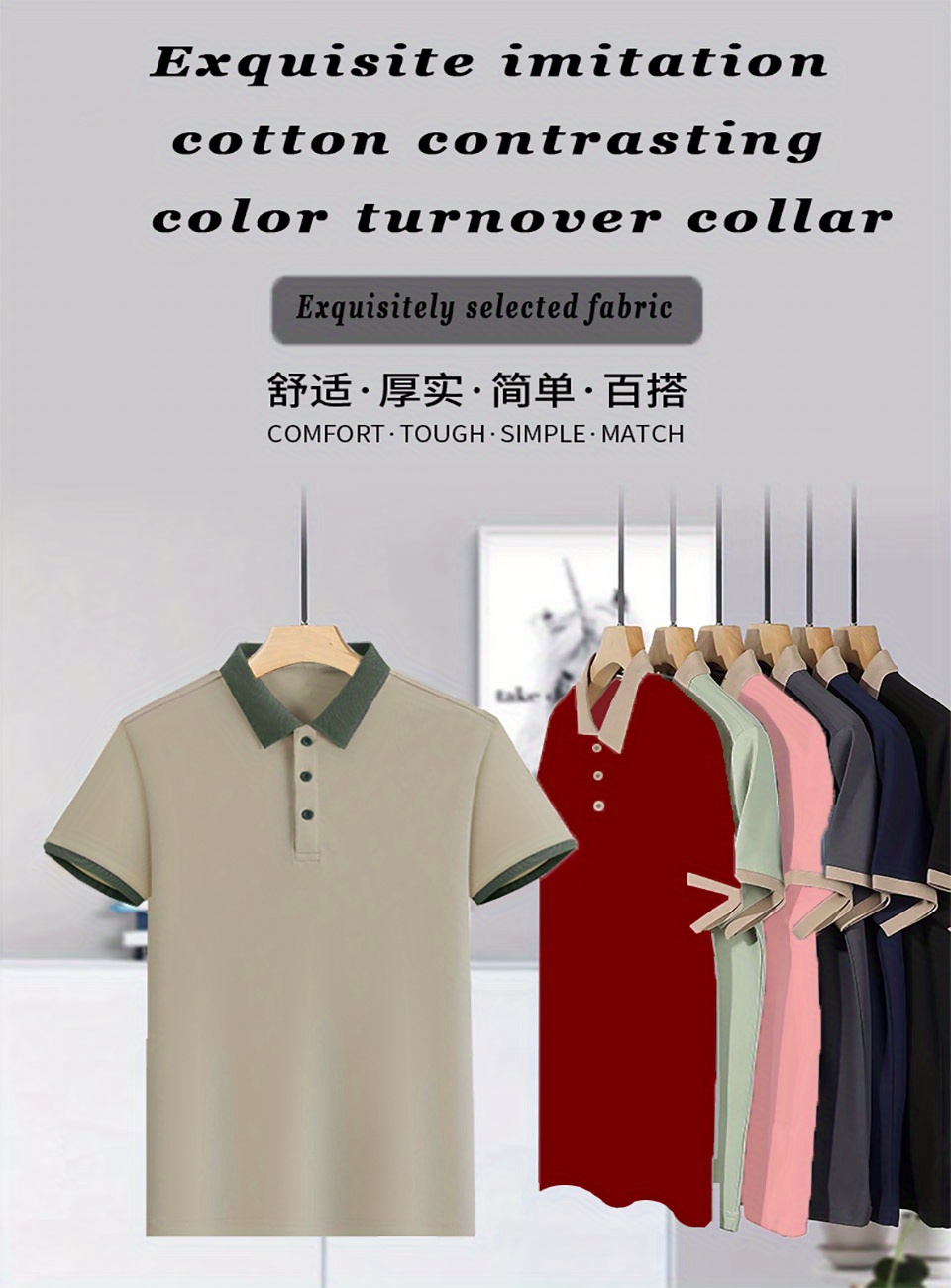 Men'S Short Sleeve Polo Shirt with Color Block Collar, Quick-Dry Casual Golf Shirt, Classic Fit Business Work Polyester T-Shirt