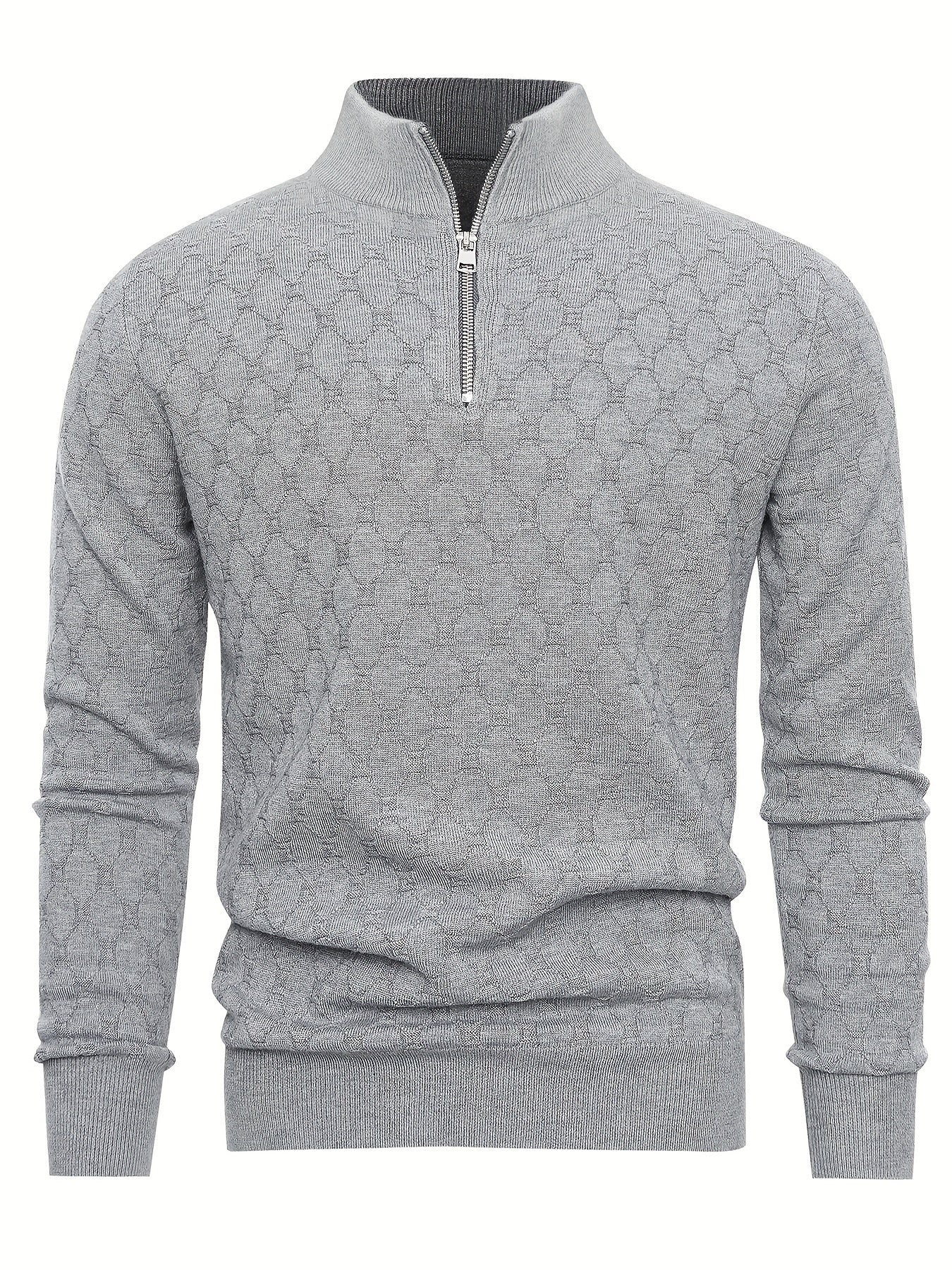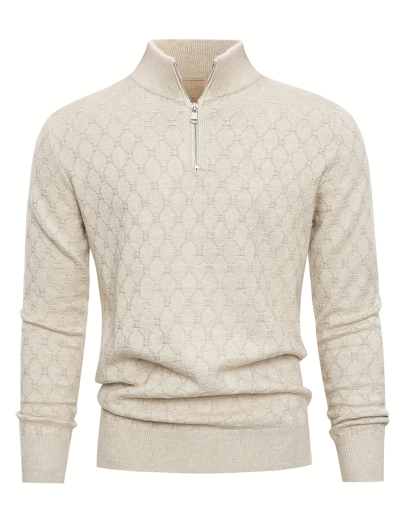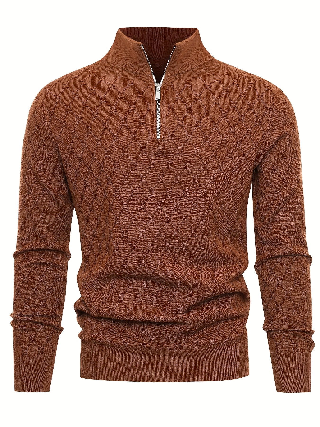 Men's Slim-Fit Half-Zip Sweater with Stand Collar - Soft Stretch Blending (Suitable for) - Half-Zip Front & Geometric Pattern - Business Casual Winter Wear - Fall Winter Wardrobe Essential - Hand Washable Long Sleeve Blazer f
