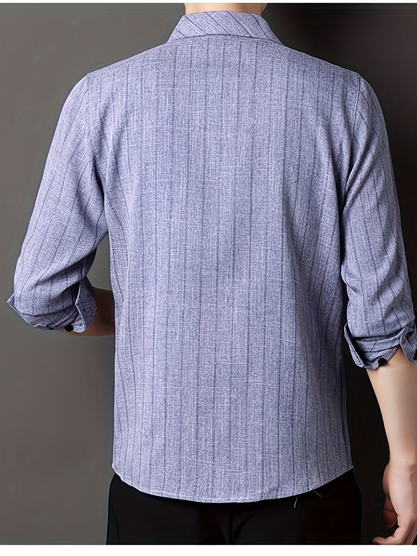Men'S Striped Shirt with a Chest Pocket, Casual Long-Sleeve Shirt with a Collar.