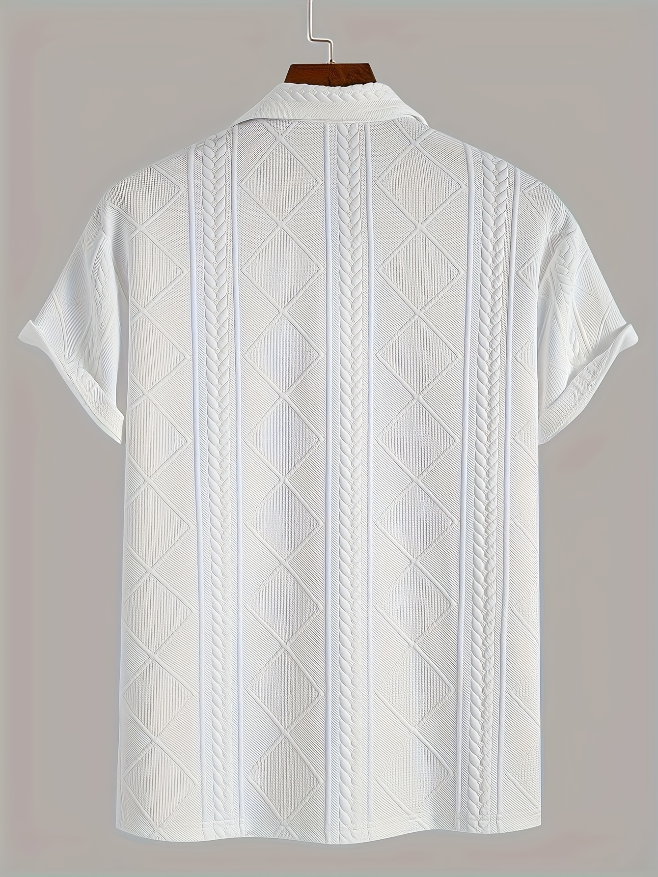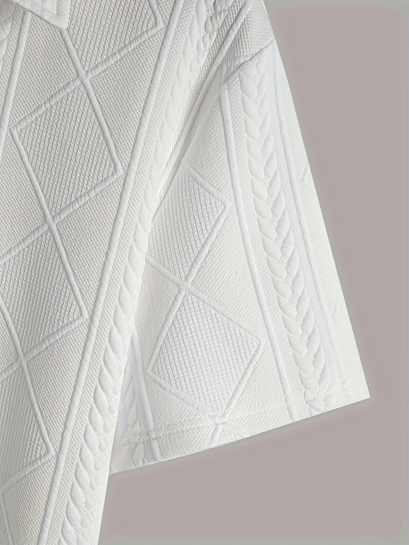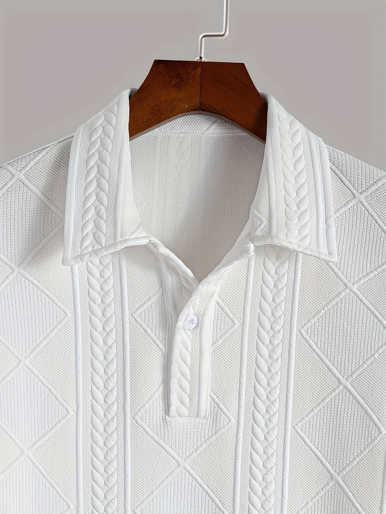 Men'S Stylish Knitted Texture Polo Shirt with Wheat Ear Geometric Pattern, Made from Skin-Friendly Material, Featuring a 4/1 Button Half Placket, Perfect for Casual Wear, Simple And Versatile for Commuting, Trendy And Fashion