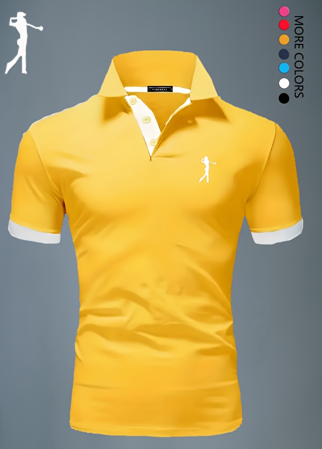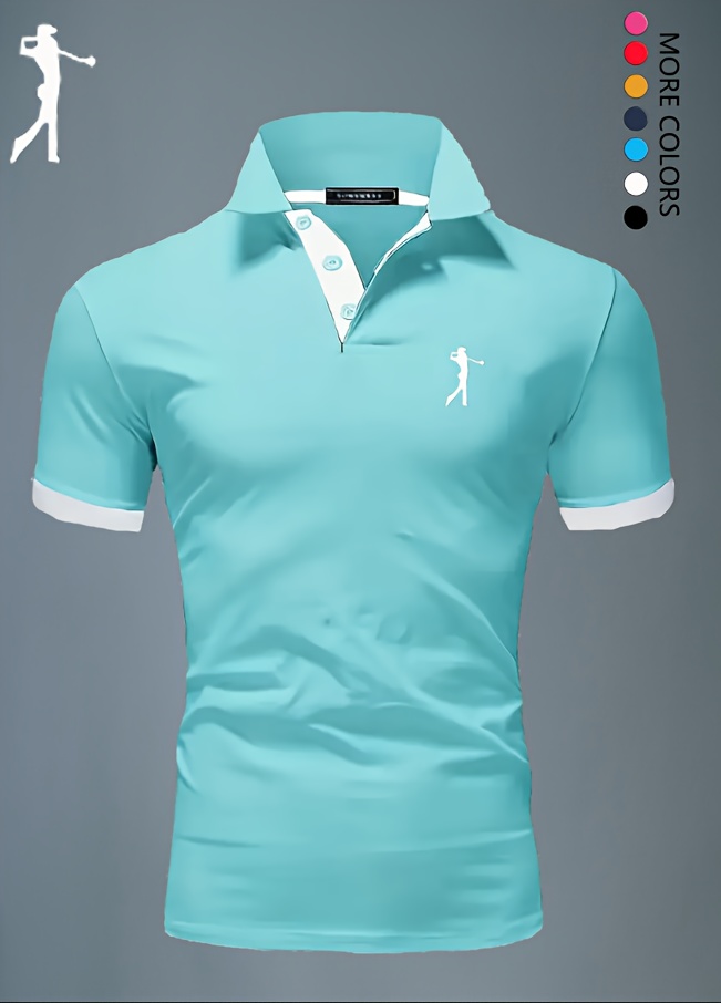 Men'S Summer Breathable Polo Shirt - Casual Short Sleeve, White with Blue Trim & Logo, Regular Fit, Geometric Pattern, Versatile for Business or Leisure Wear, Summer Casual Wear | Stylish Casualwear | Comfortable Fit