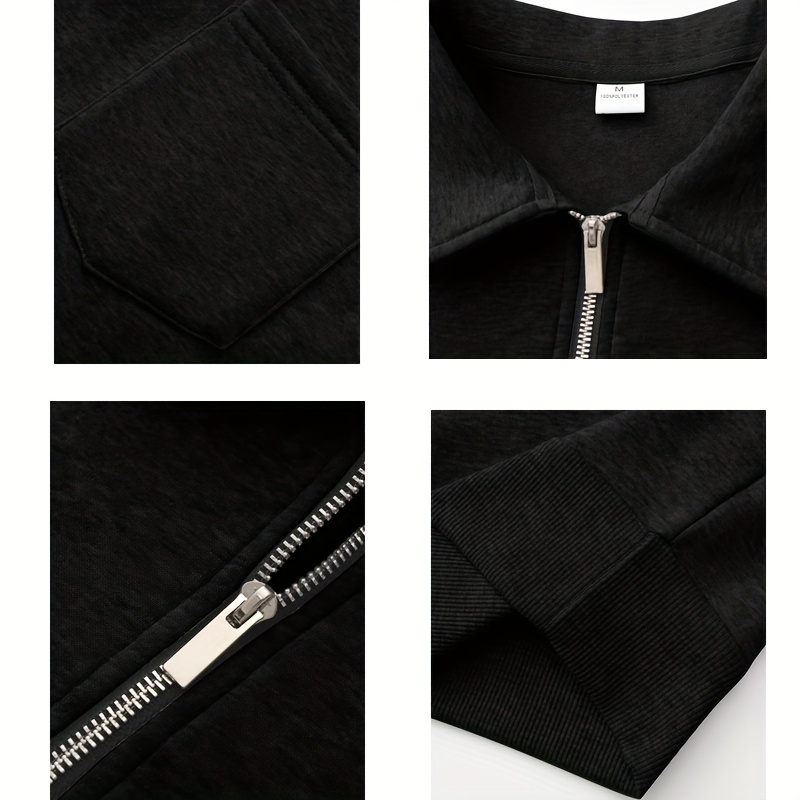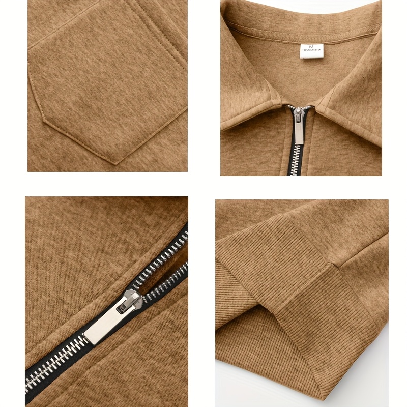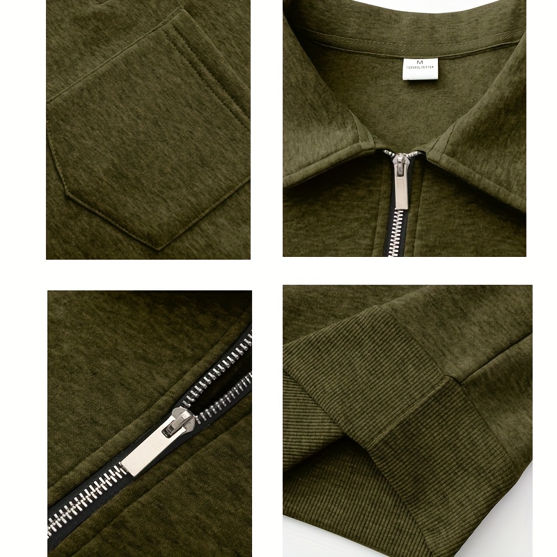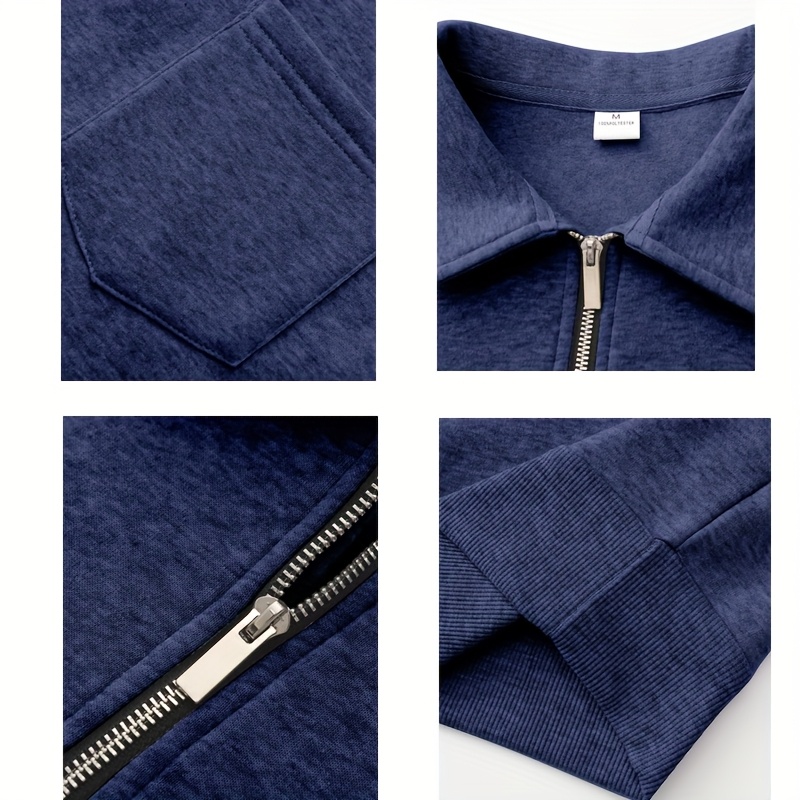 Men'S Thickened Long Sleeve Shirt - Half-Zip, Versatile Long Sleeve Turn- Collar Base Layer Top with Chest Pocket, Suitable for Autumn/Winter, Winter Clothing, Autumn Apparel, Classic Collar, Durable Fabric, Warm Material, Ba