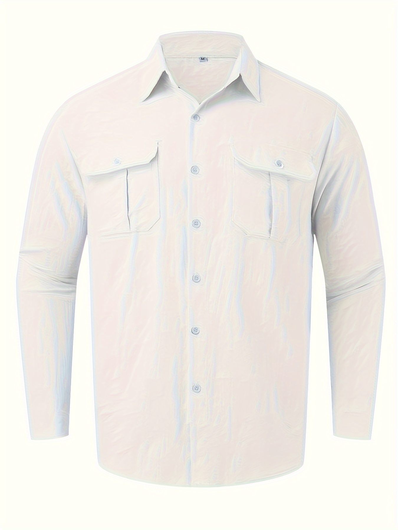 Men's Workwear Shirt with Chest Pockets & Button- Collar - Solid Color Long Sleeve Casual Button-Up for Spring/Fall, Regular Fit, Spring Fashion, Classic Design, Office Professionals, Fall Wardrobe, Timeless Style, Breathable