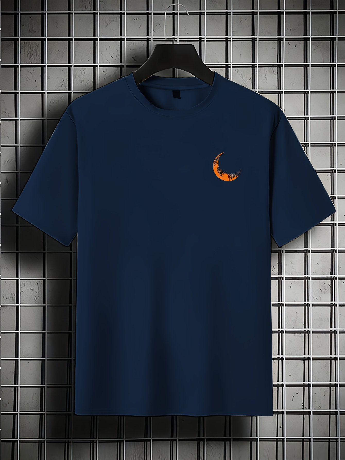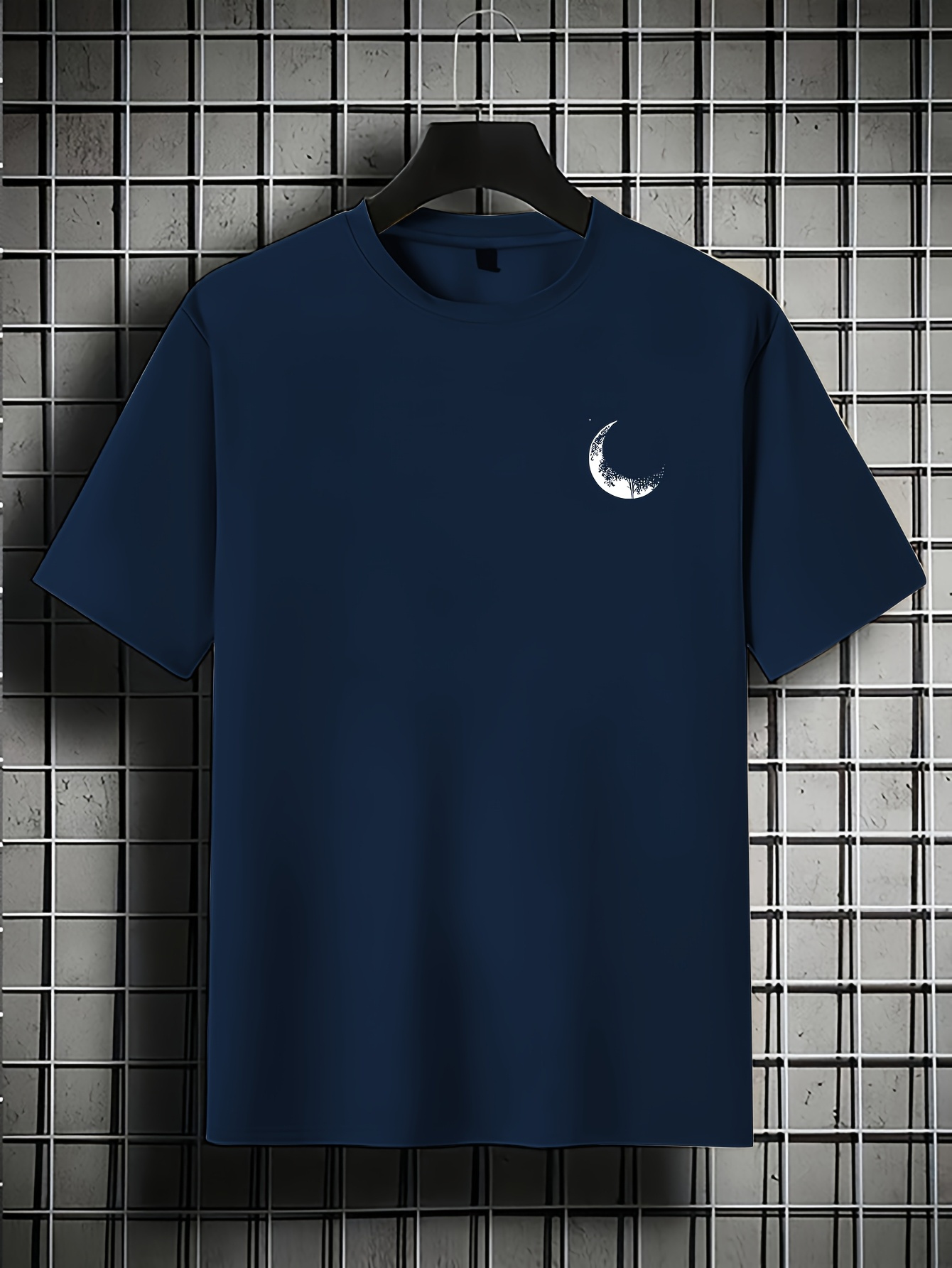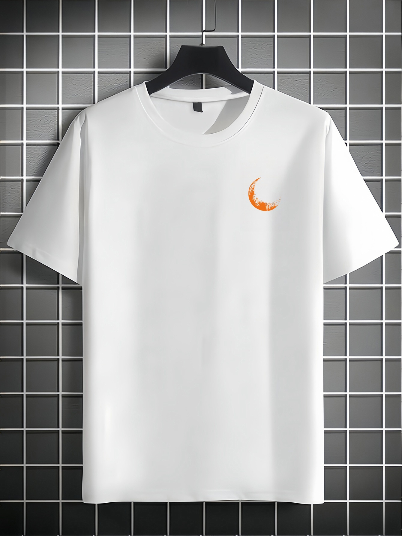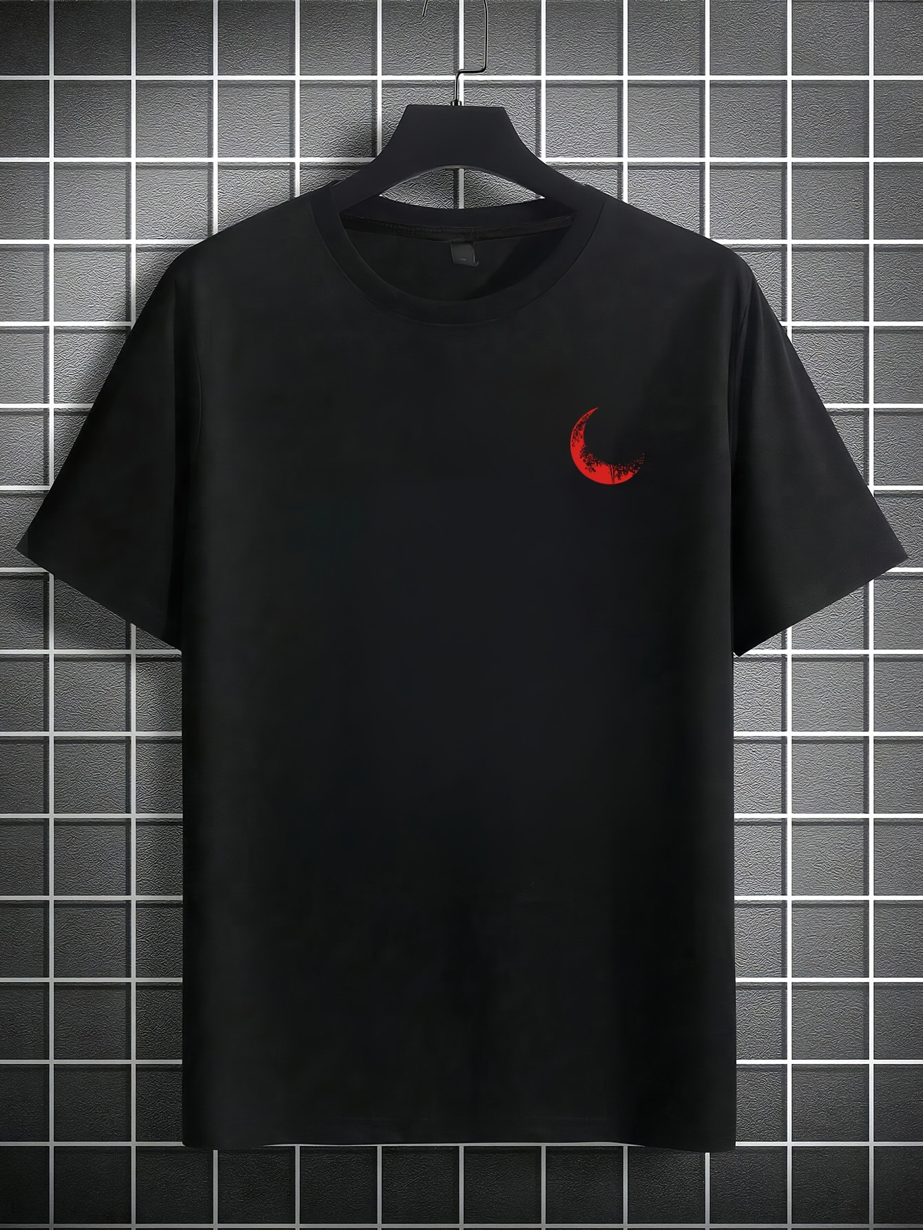 Moon and Trees Design Front & Back Graphic Crew Neck Cotton Summer Fashion Short Sleeve Casual Daily Style Top with Unique Geometric Pattern, Suitable for Spring/Summer Outdoor Activities