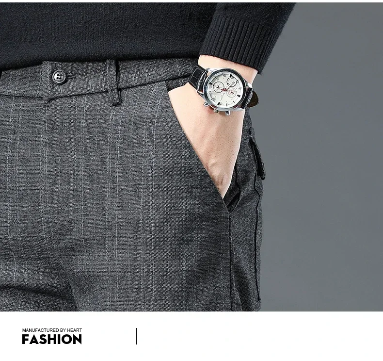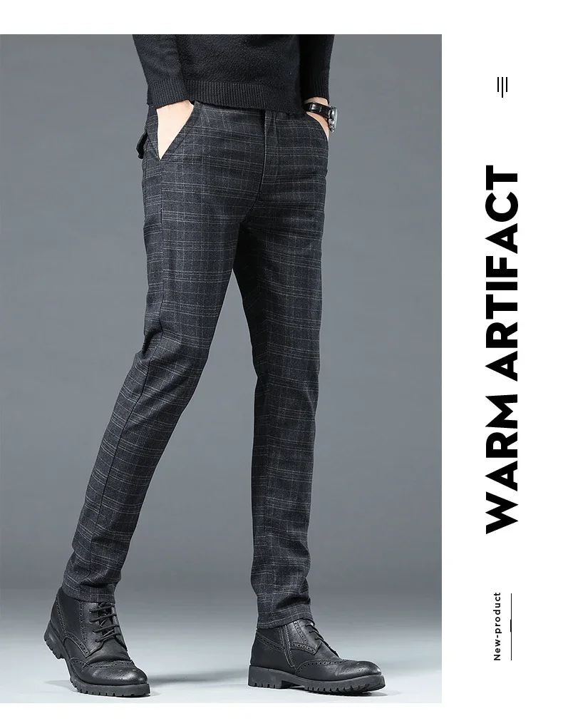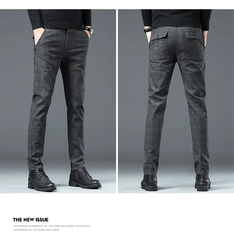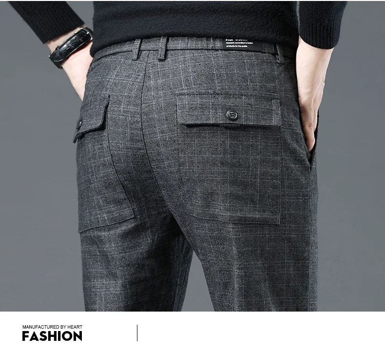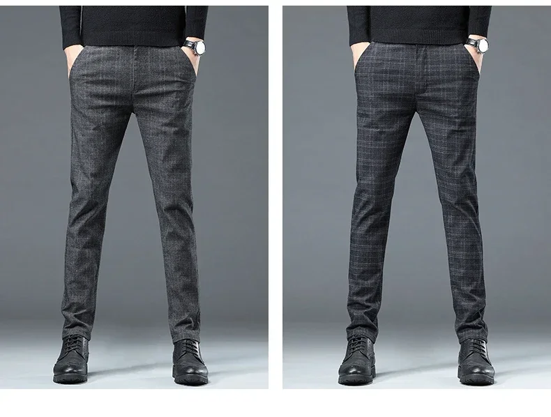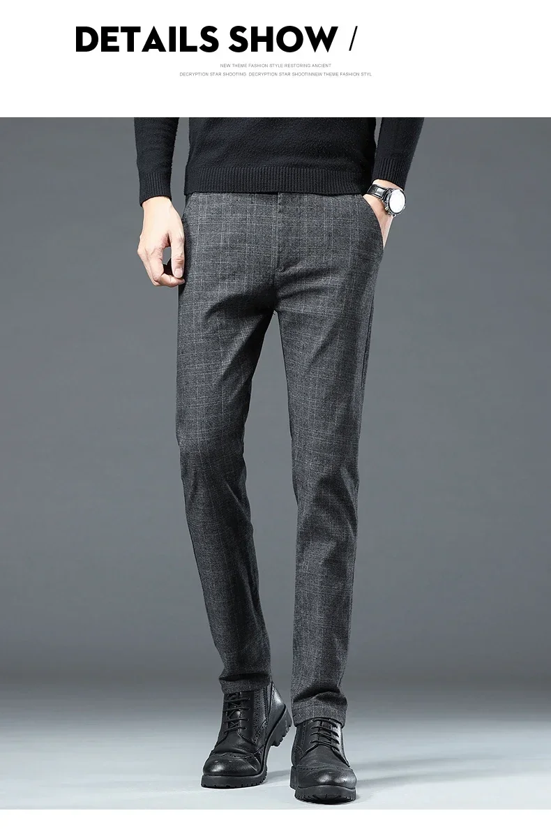 Pantalon décontracté à carreaux élastique pour hommes, vêtements FJMale, pantalon imbibé, coton confortable, affaires, mode coréenne, printemps, automne