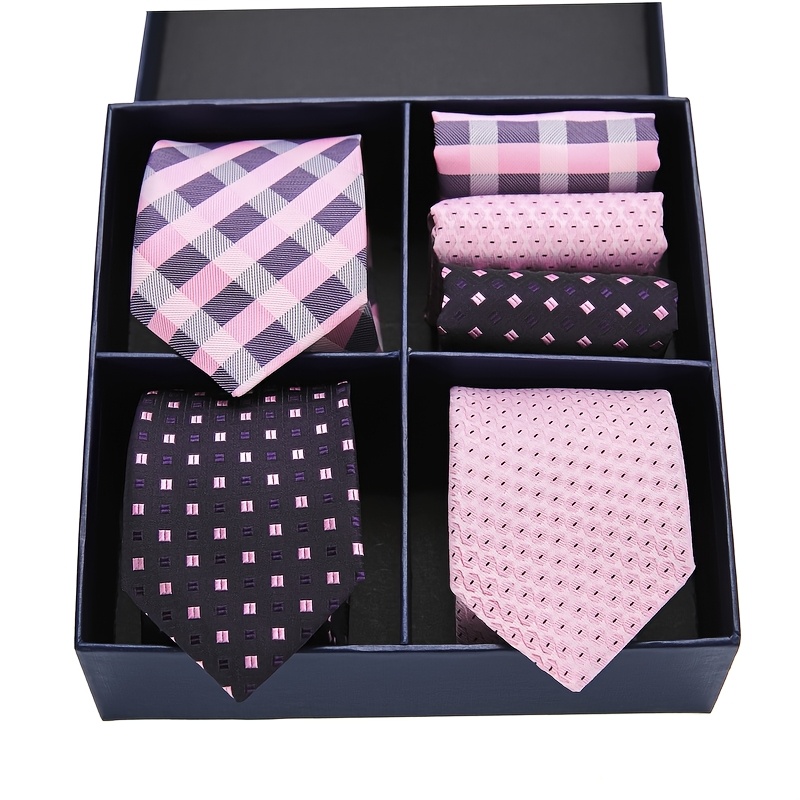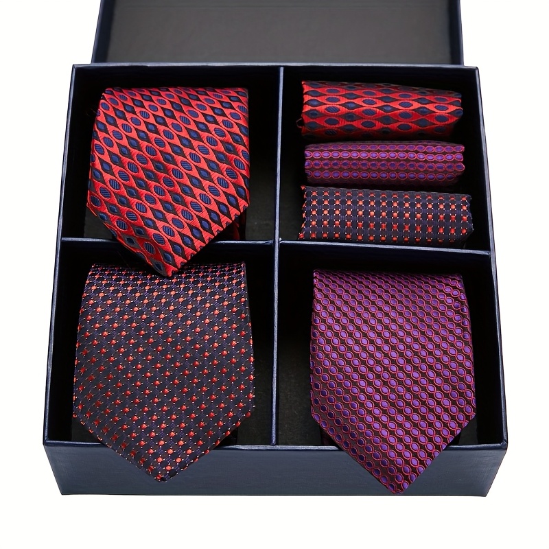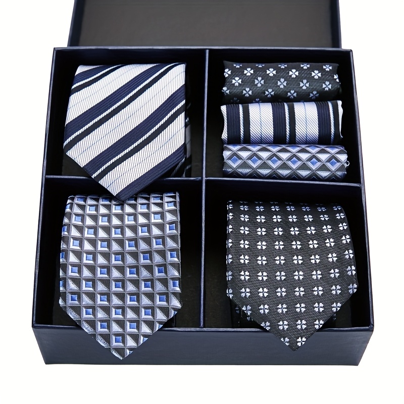 Coffret Cravate et Pochette Homme – Luxe, Motifs Rayés & Carreaux, Marron