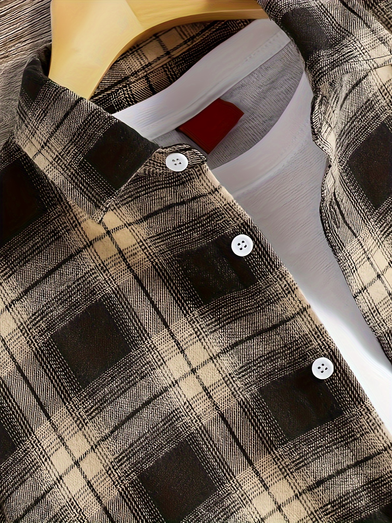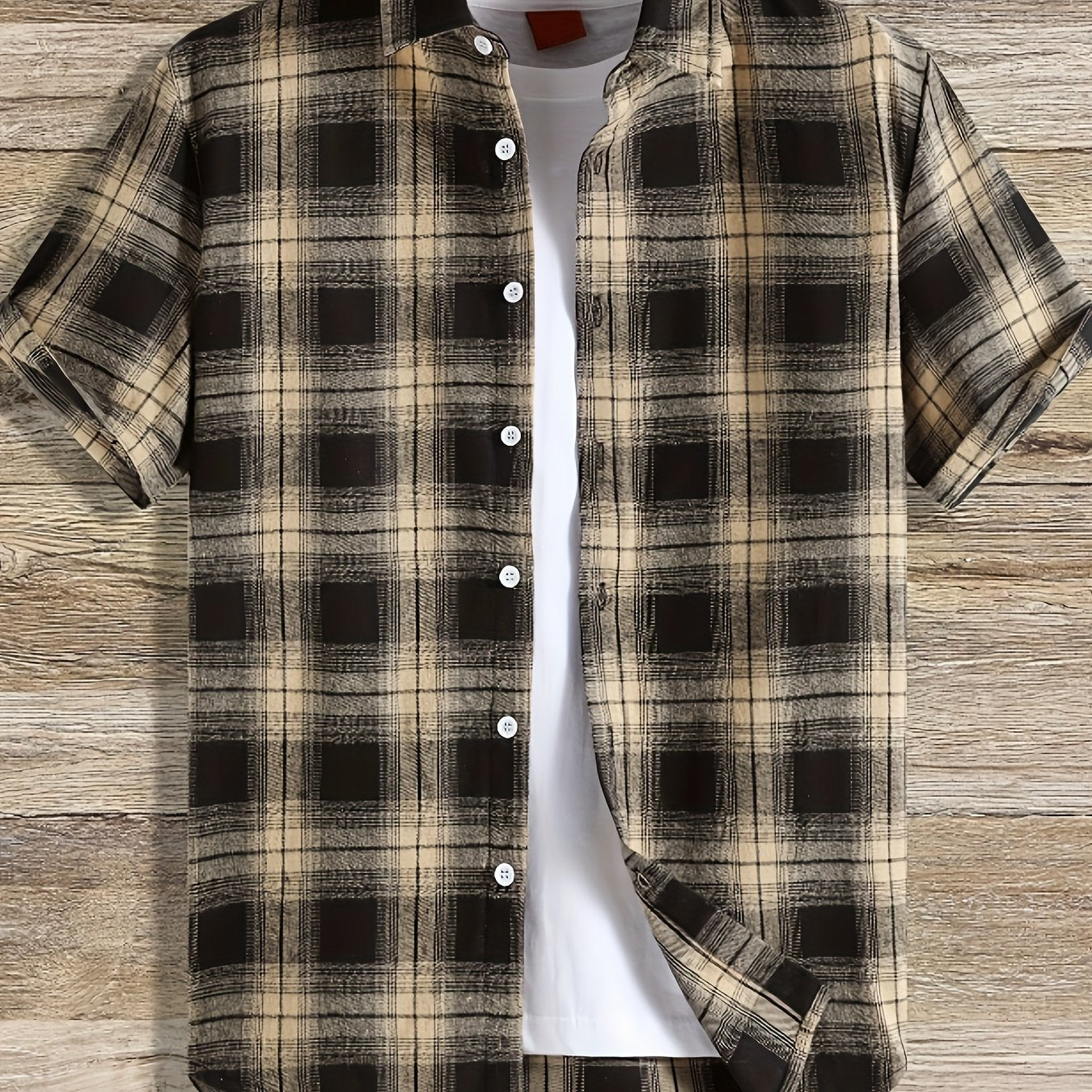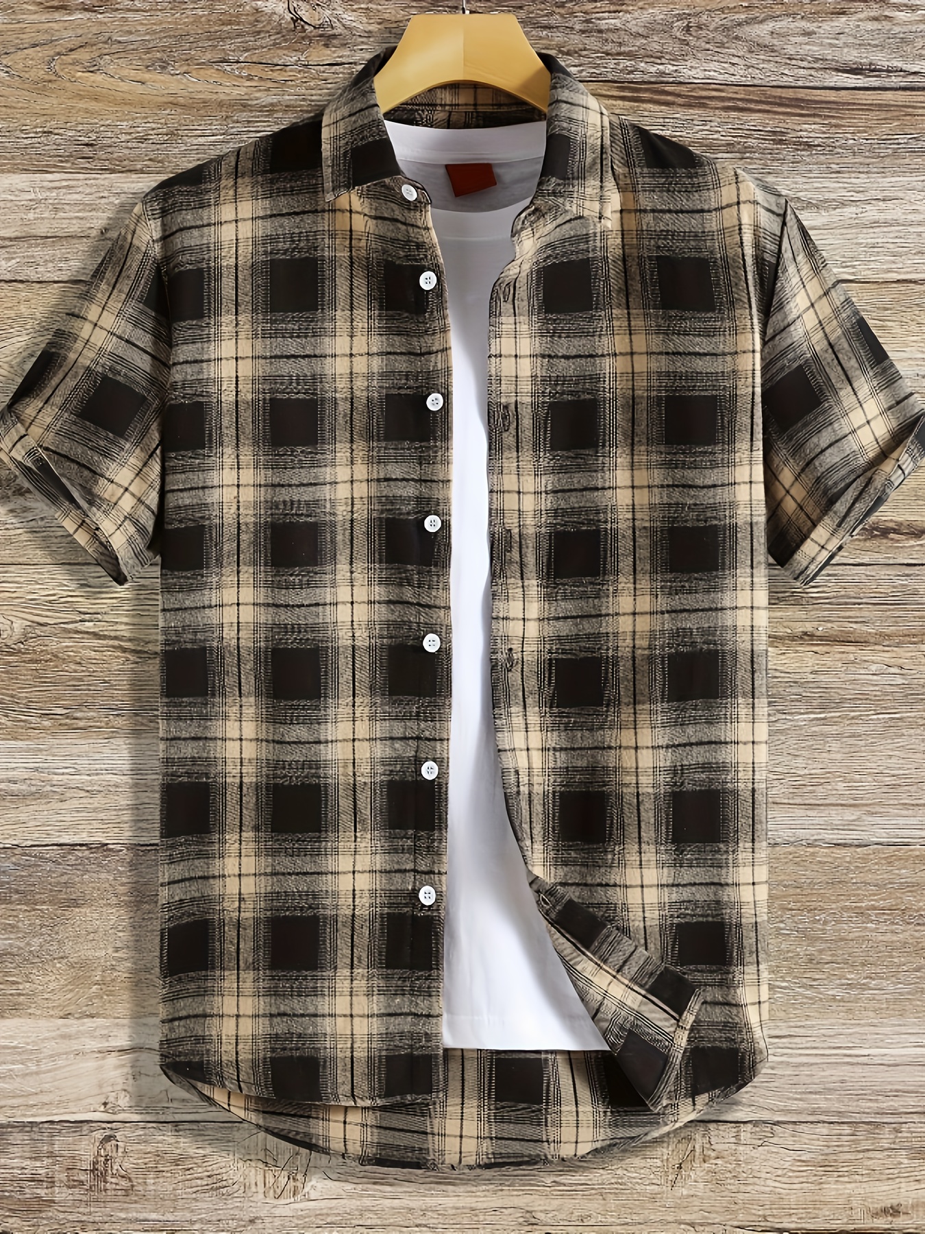 Plaid Fashionable And Simple Men's Short Sleeve Casual Lapel Simple Shirt, Trendy And Versatile, Suitable For Dates