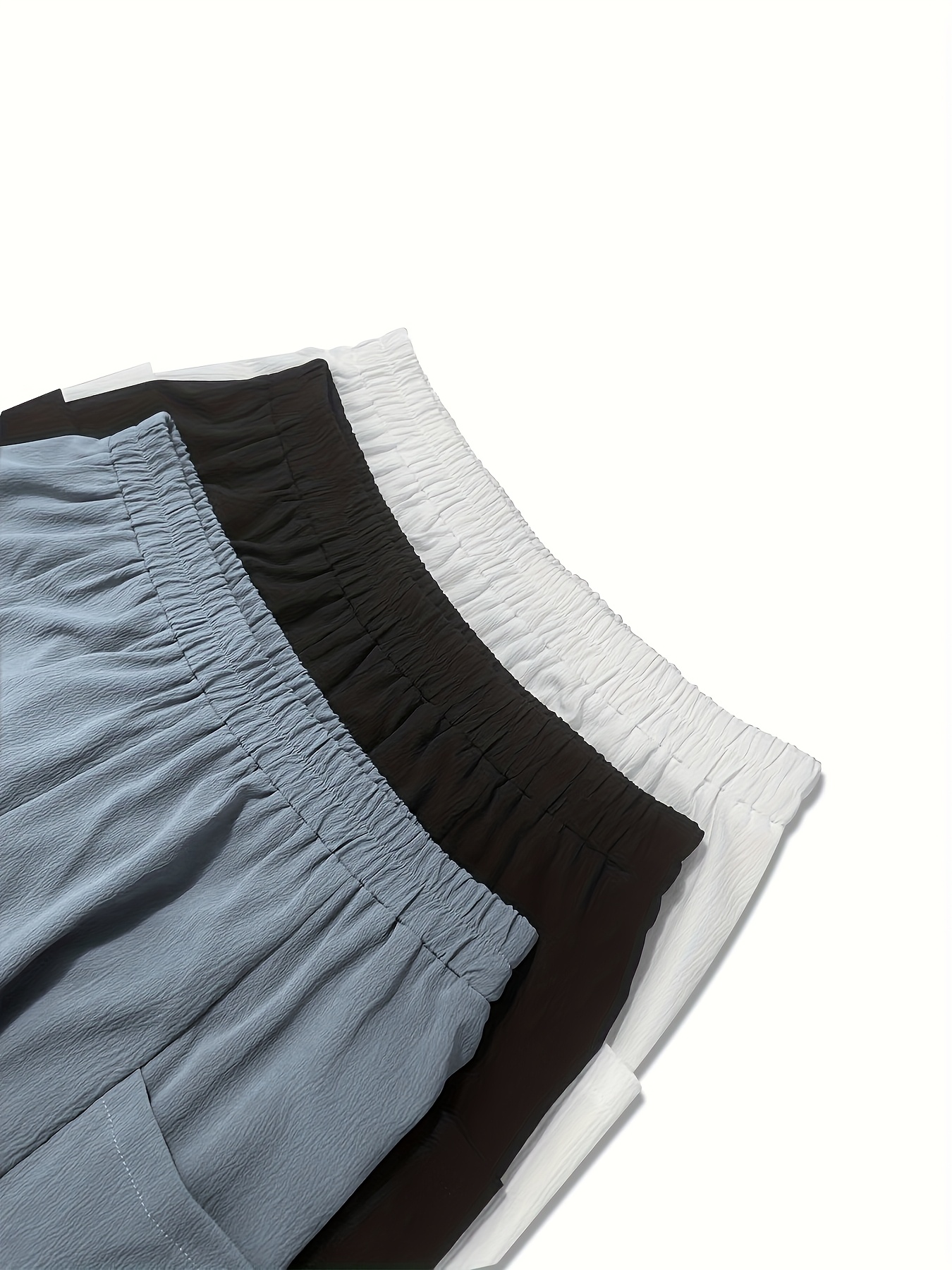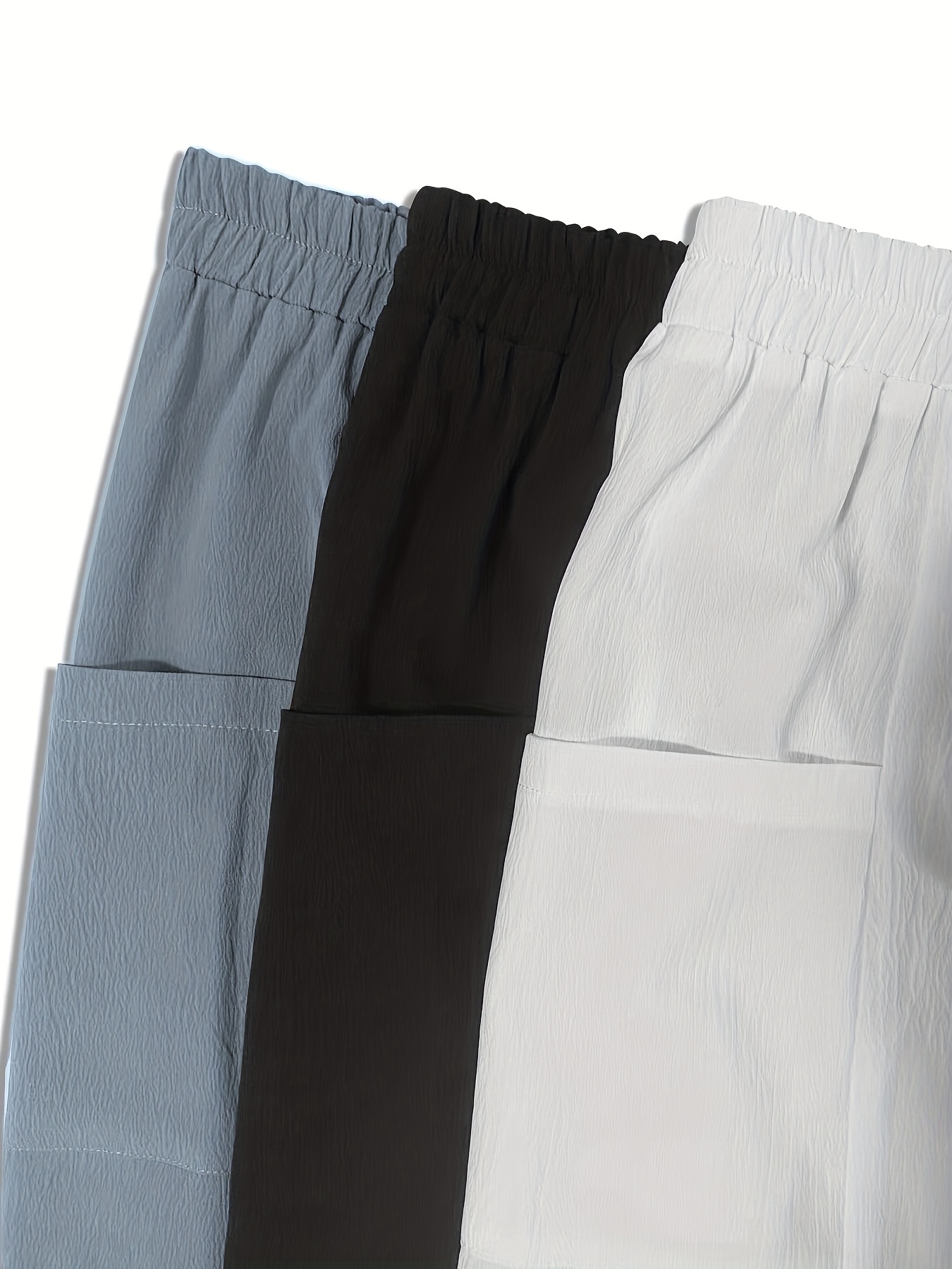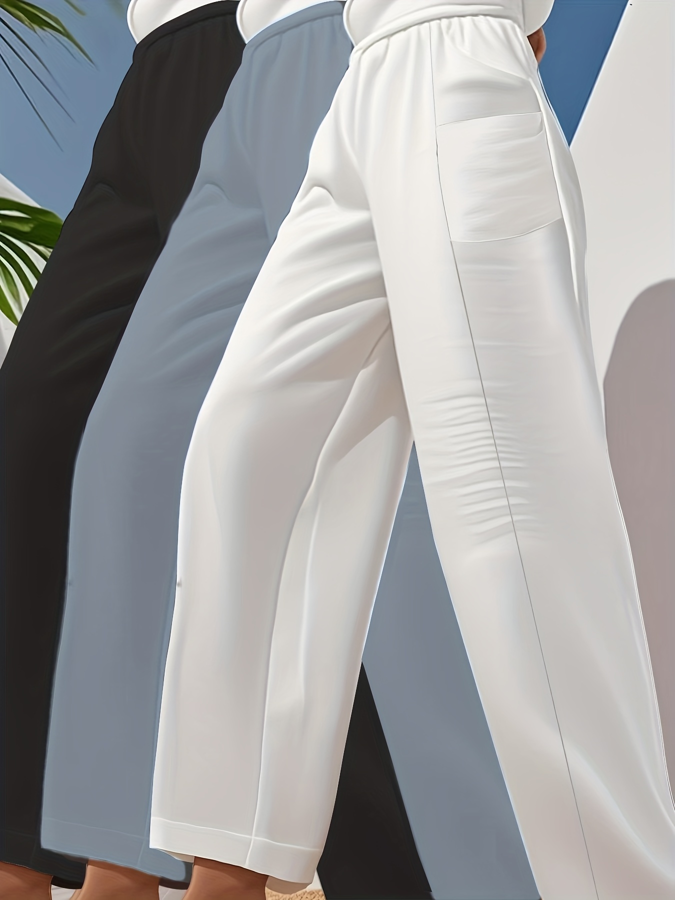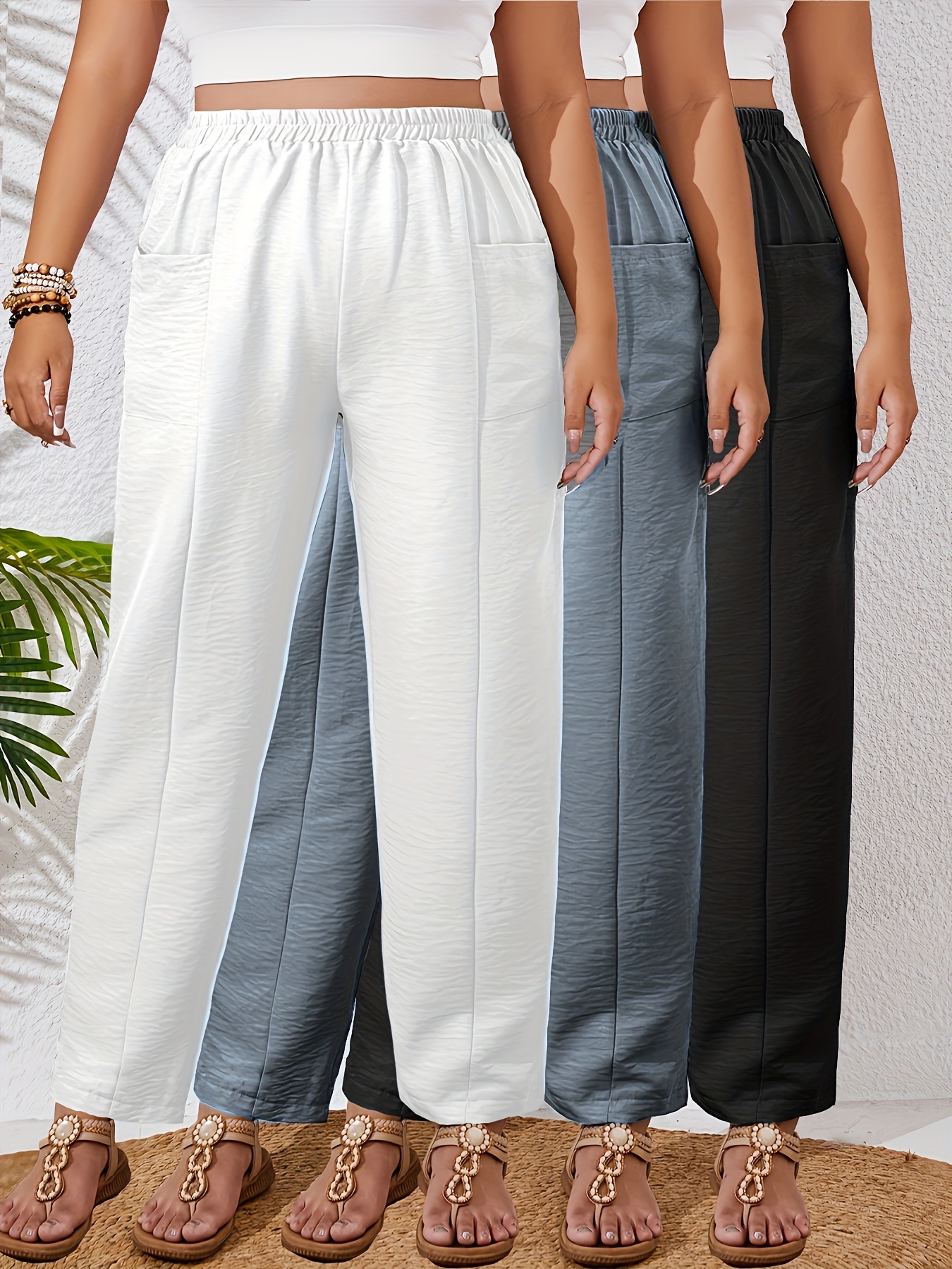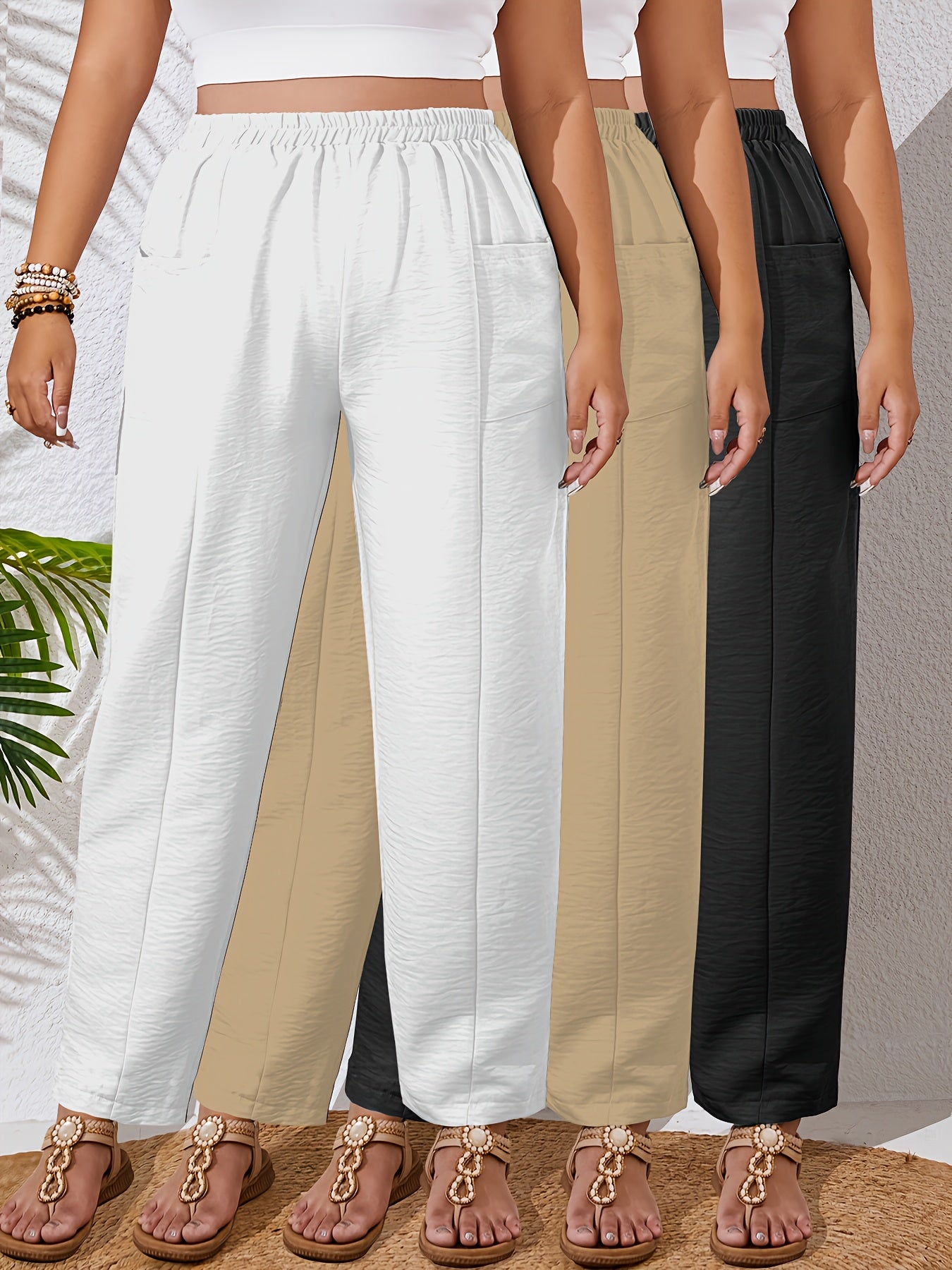 Lot de 3 Pantalons Femme Grande Taille – Taille Haute, Droits, Élastiques avec Poches, Couleur Unie, Tous Saisons