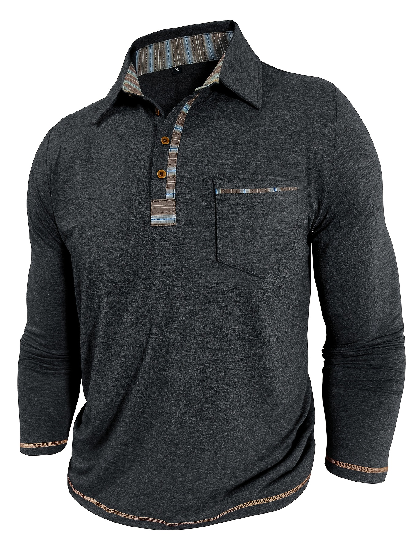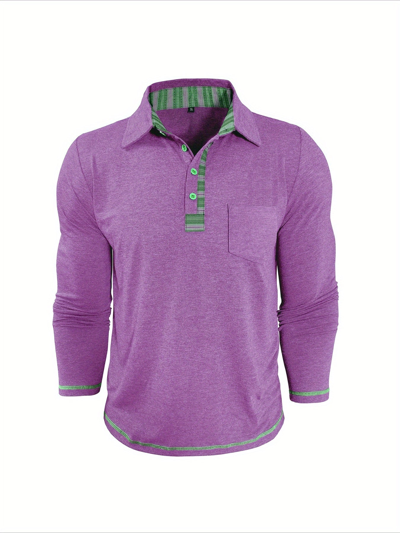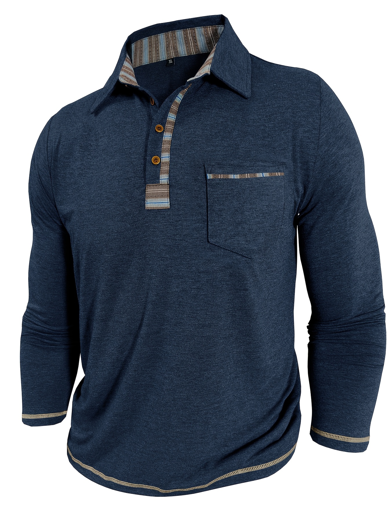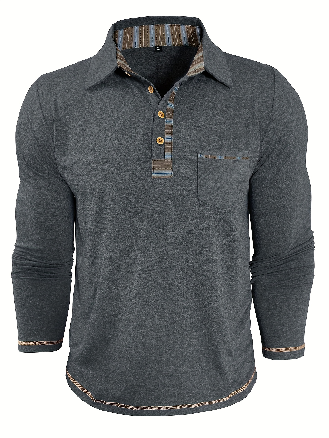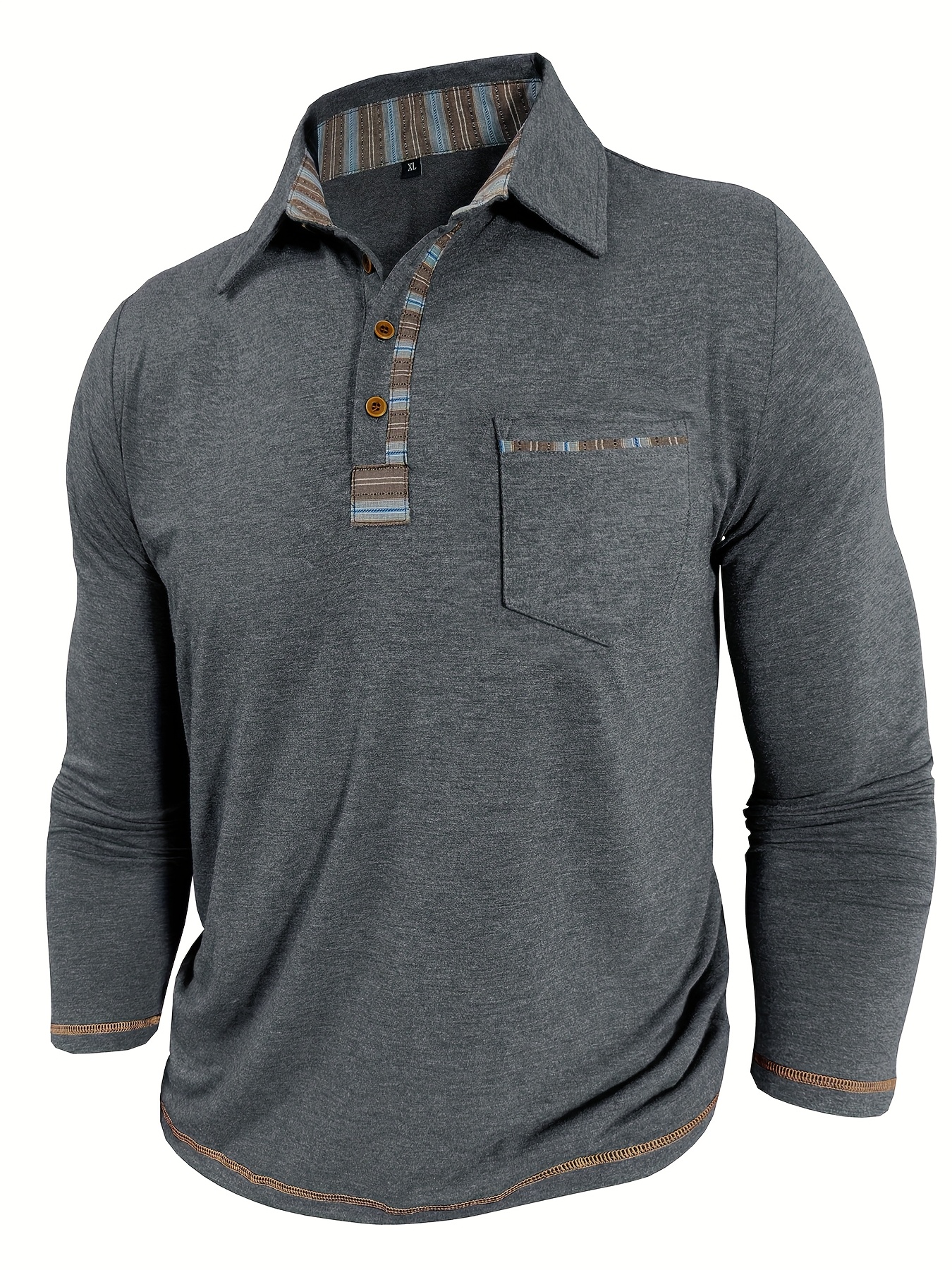 Plus Size Men's Retro Casual Shirt - Long Sleeve Button-Up with Color Block Detailing, Machine Washable Spring/Fall Top for Casual Attire, PLUS SIZE