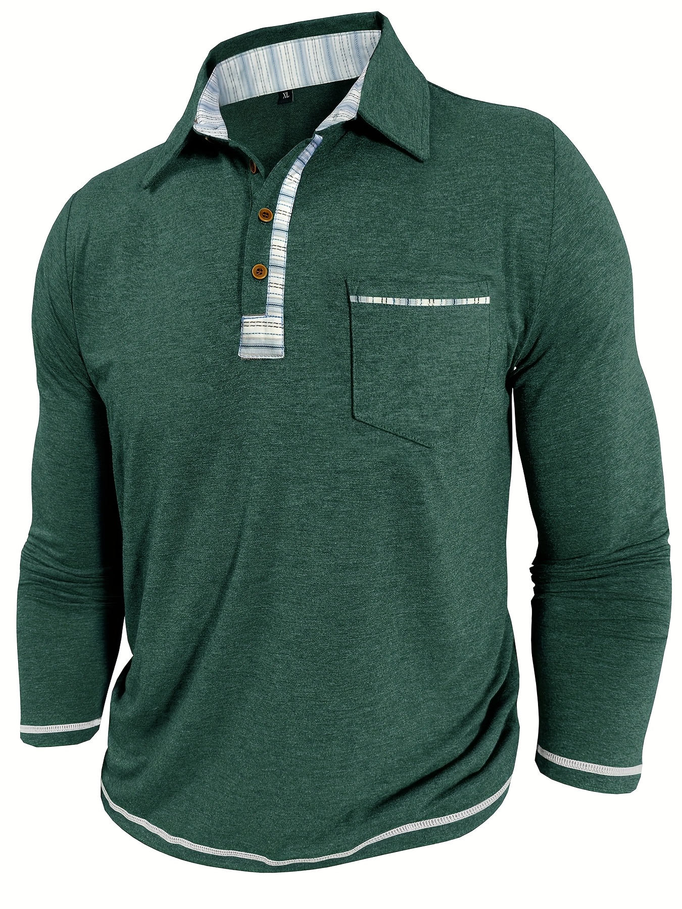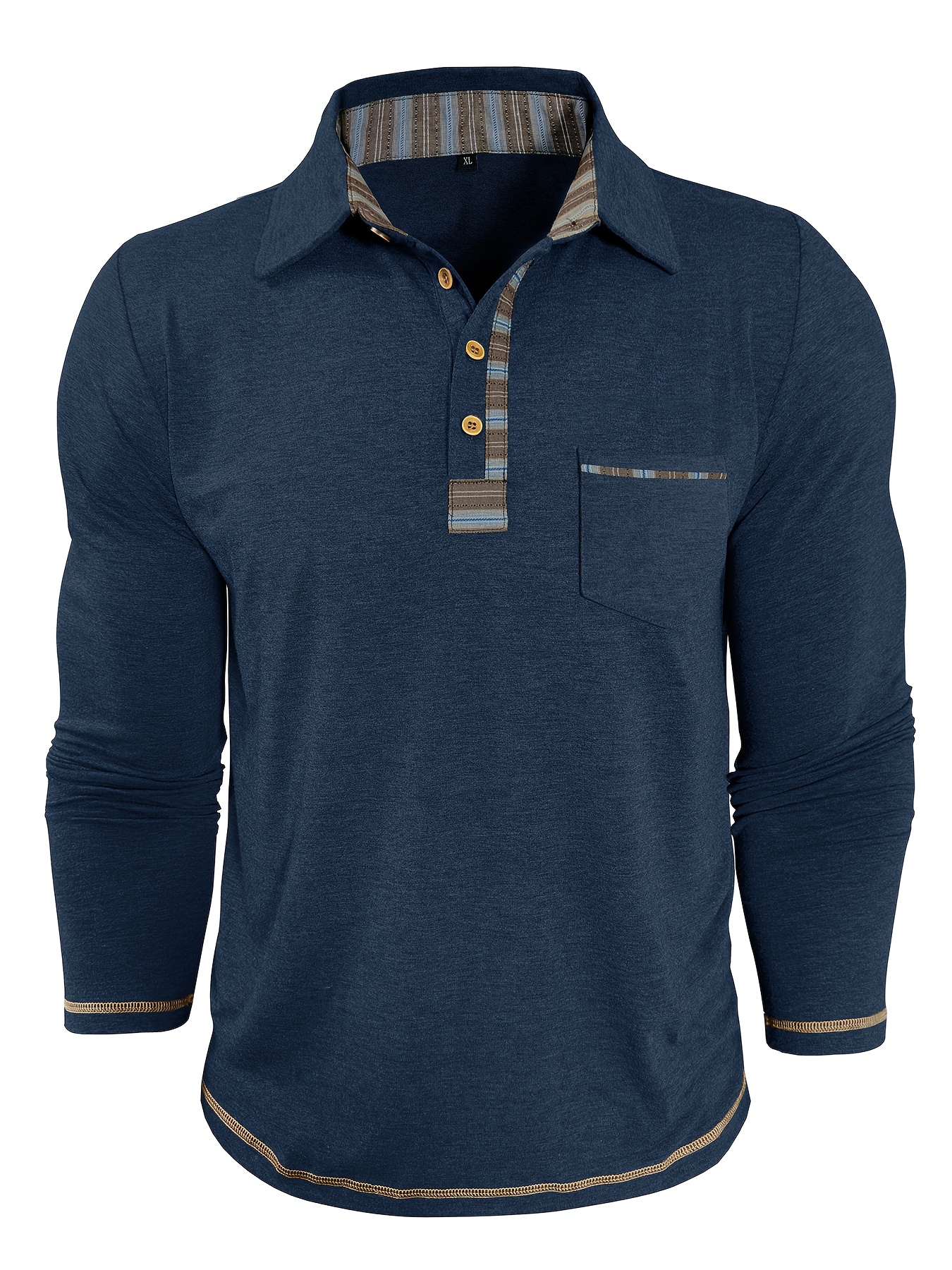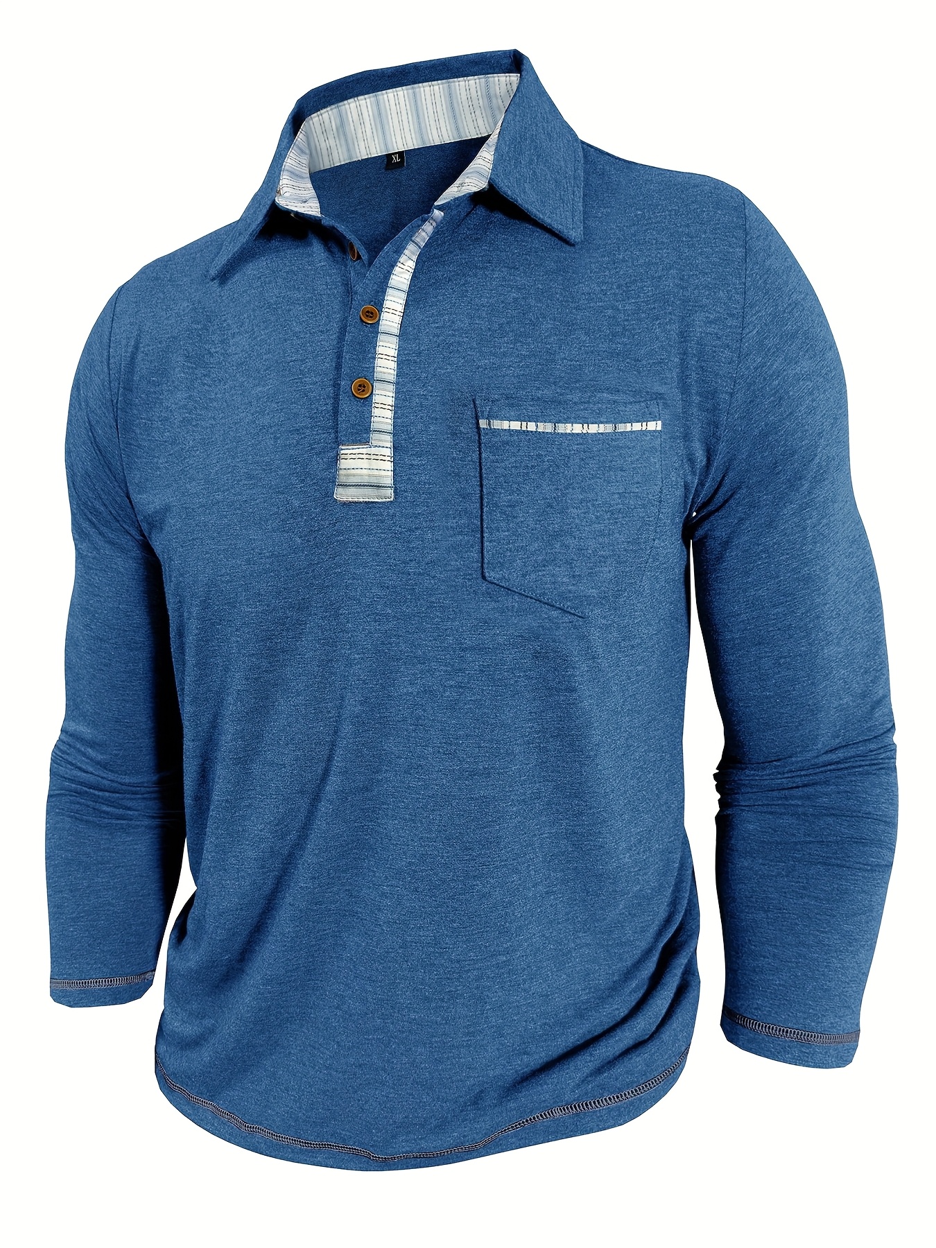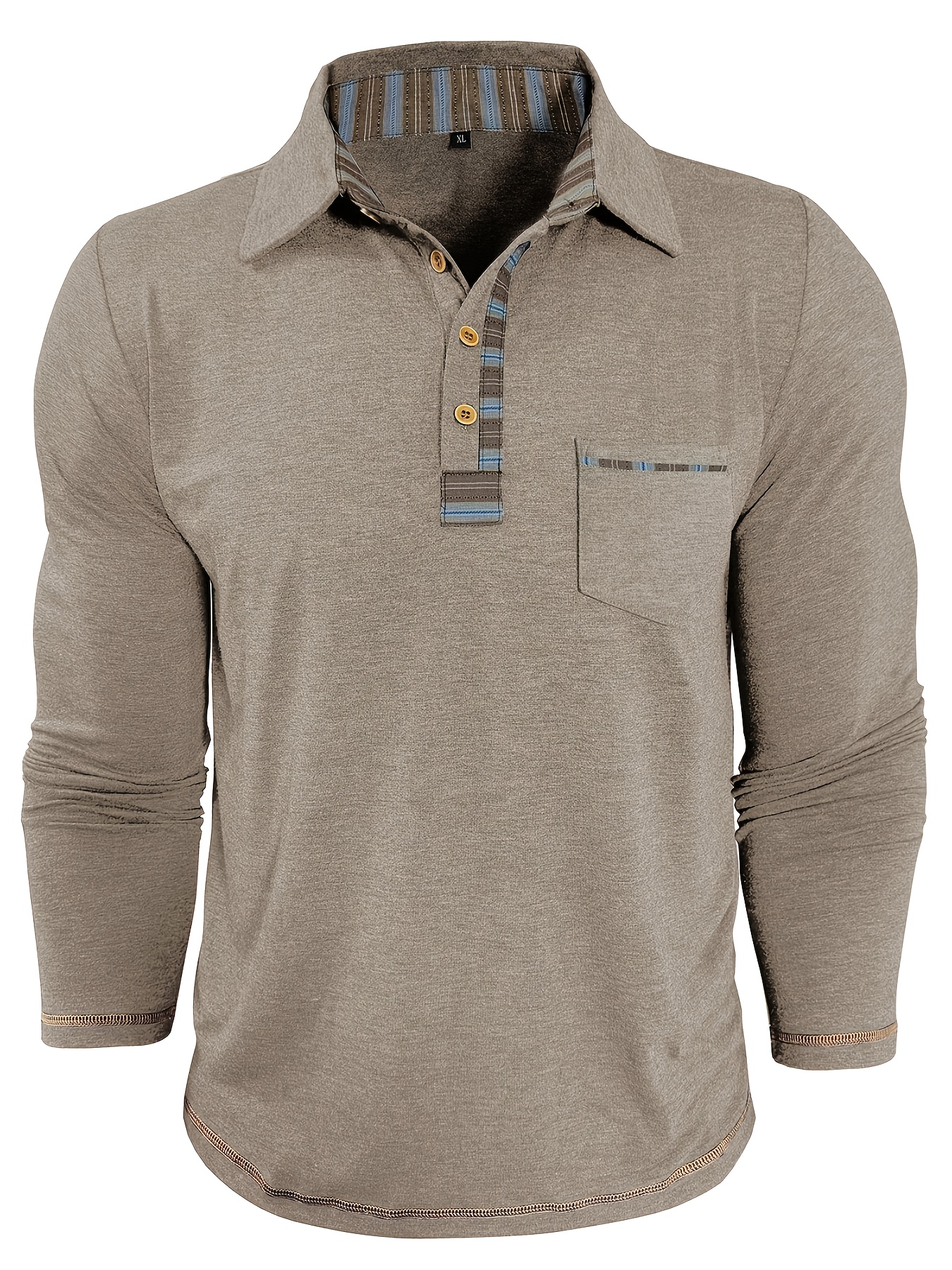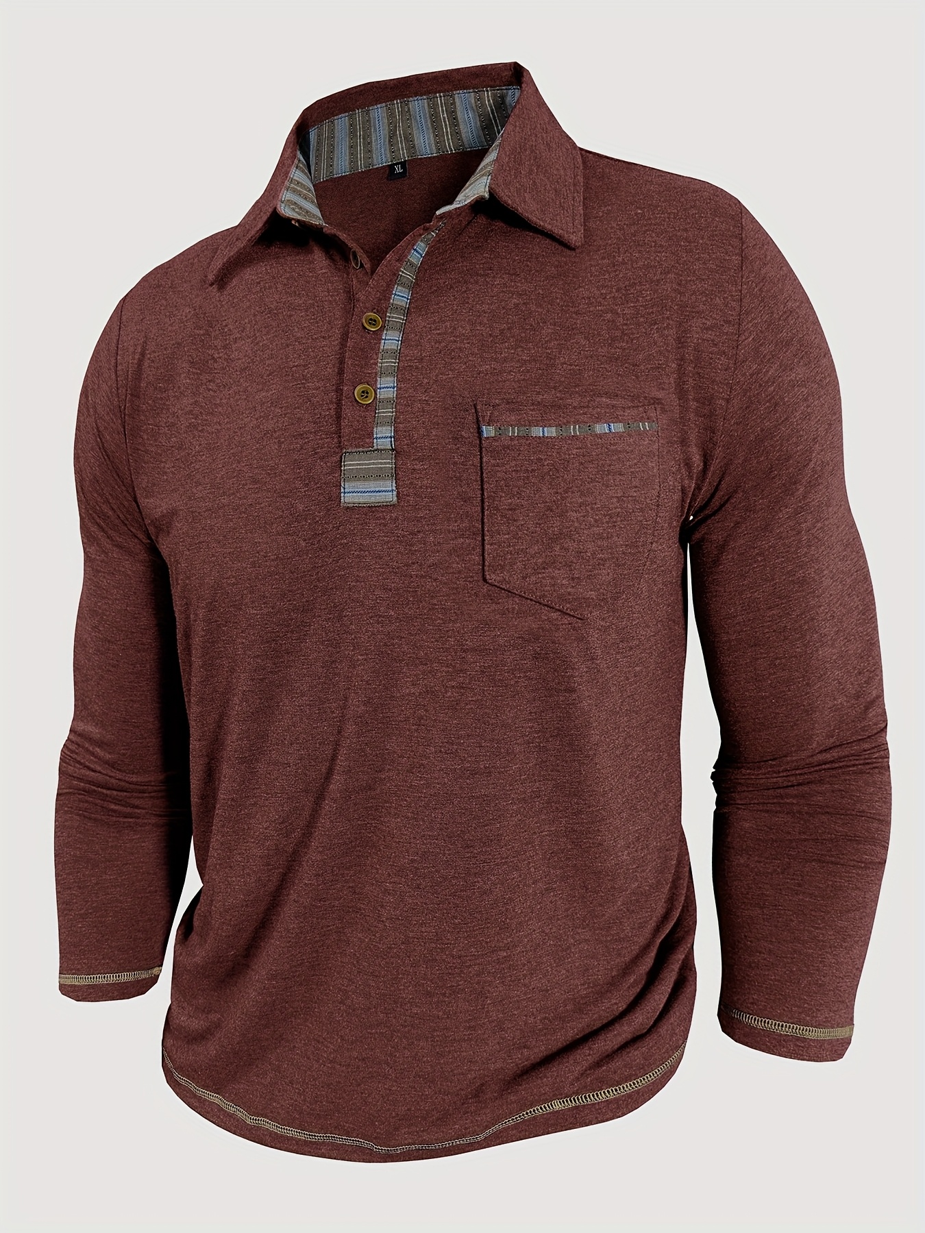 Plus Size Men's Retro Casual Shirt - Long Sleeve Button-Up with Color Block Detailing, Machine Washable Spring/Fall Top for Casual Attire, PLUS SIZE