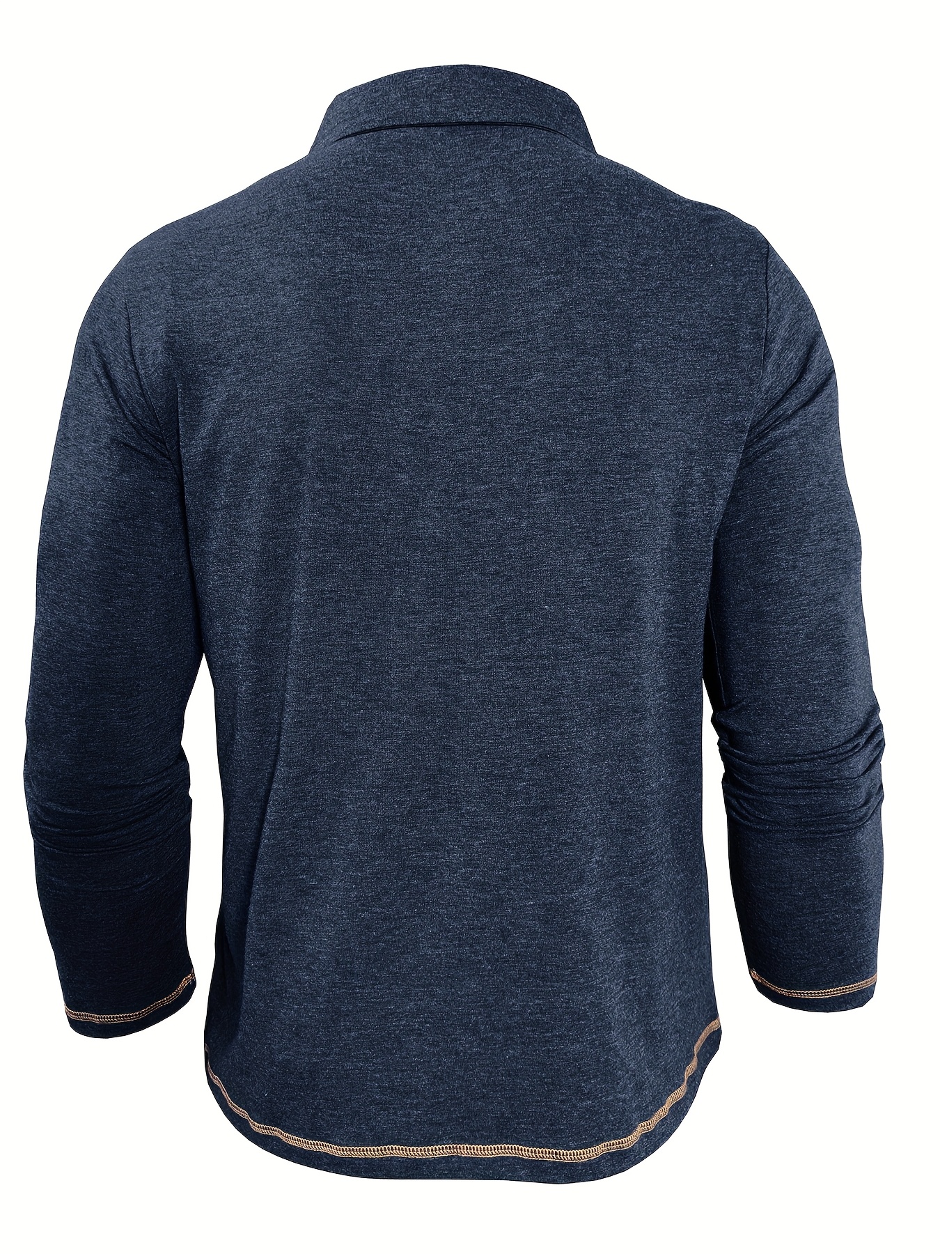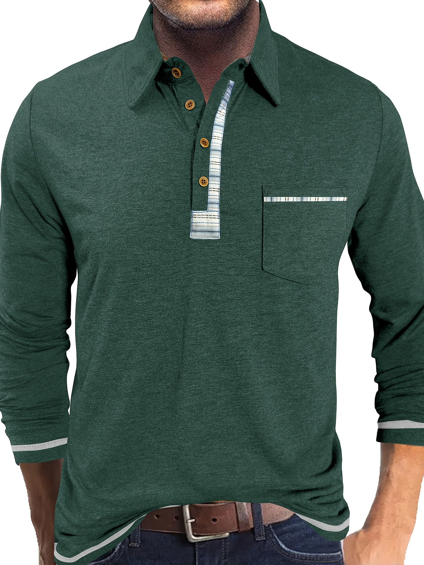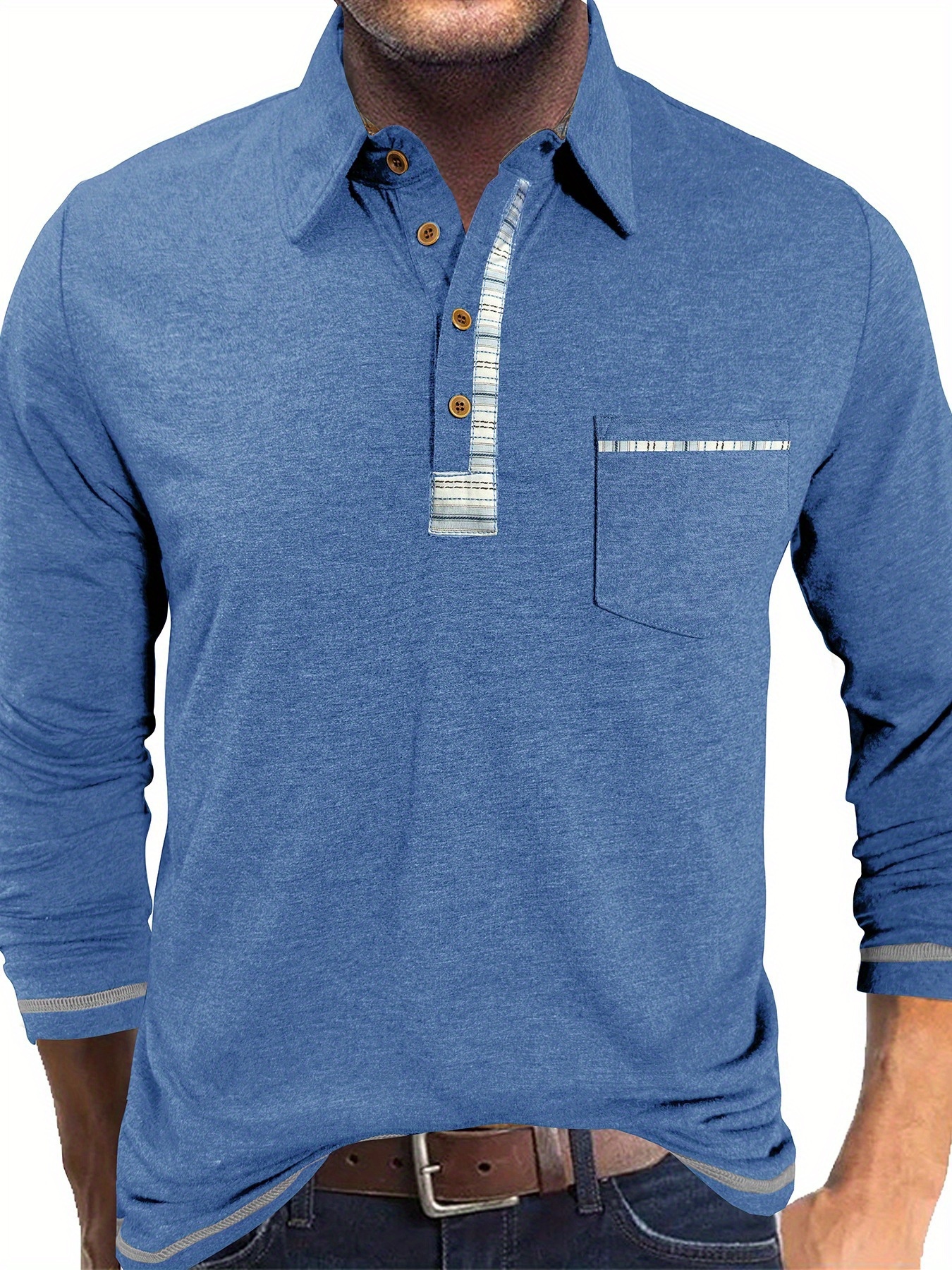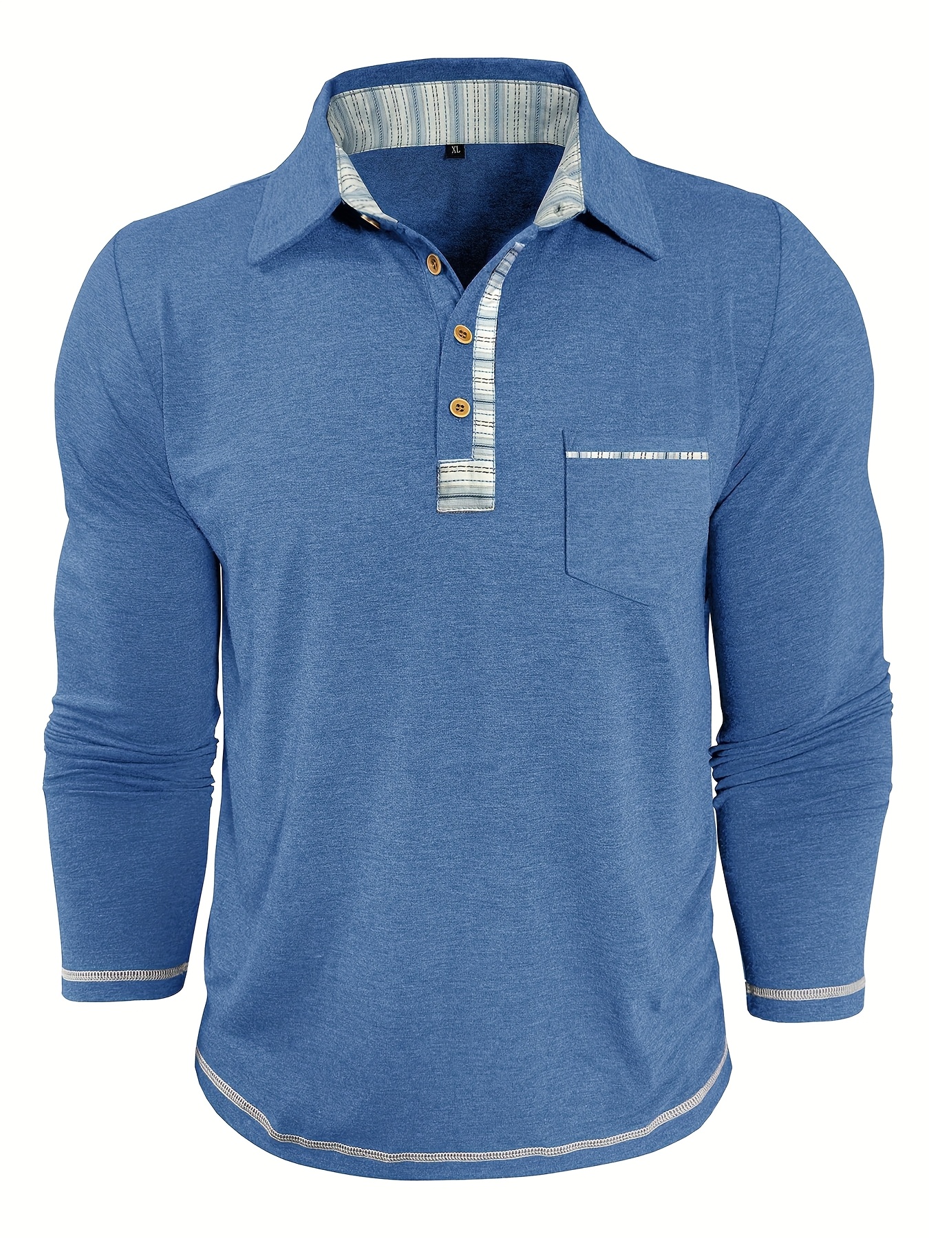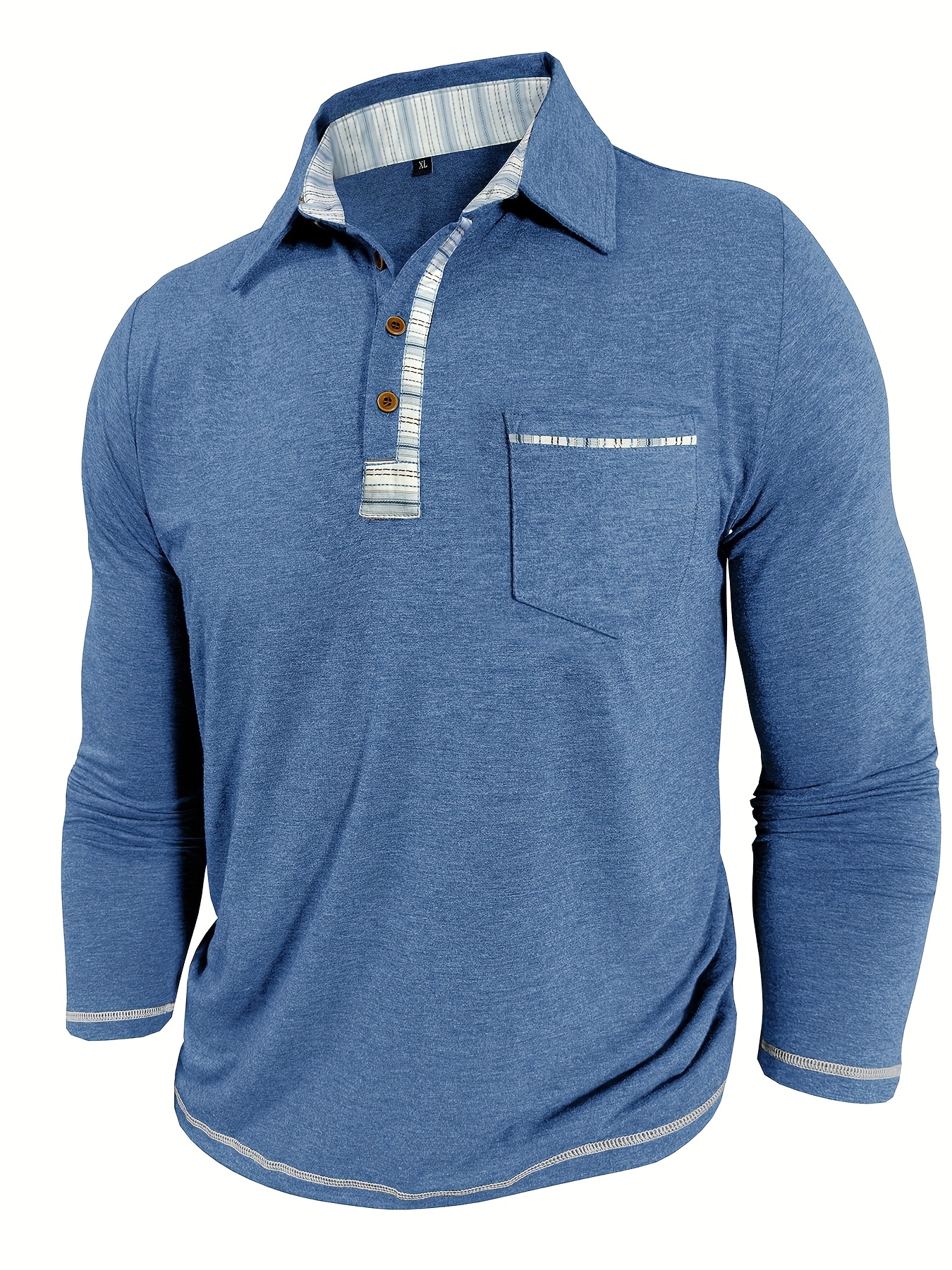 Plus Size Men's Retro Casual Shirt - Long Sleeve Button-Up with Color Block Detailing, Machine Washable Spring/Fall Top for Casual Attire, PLUS SIZE