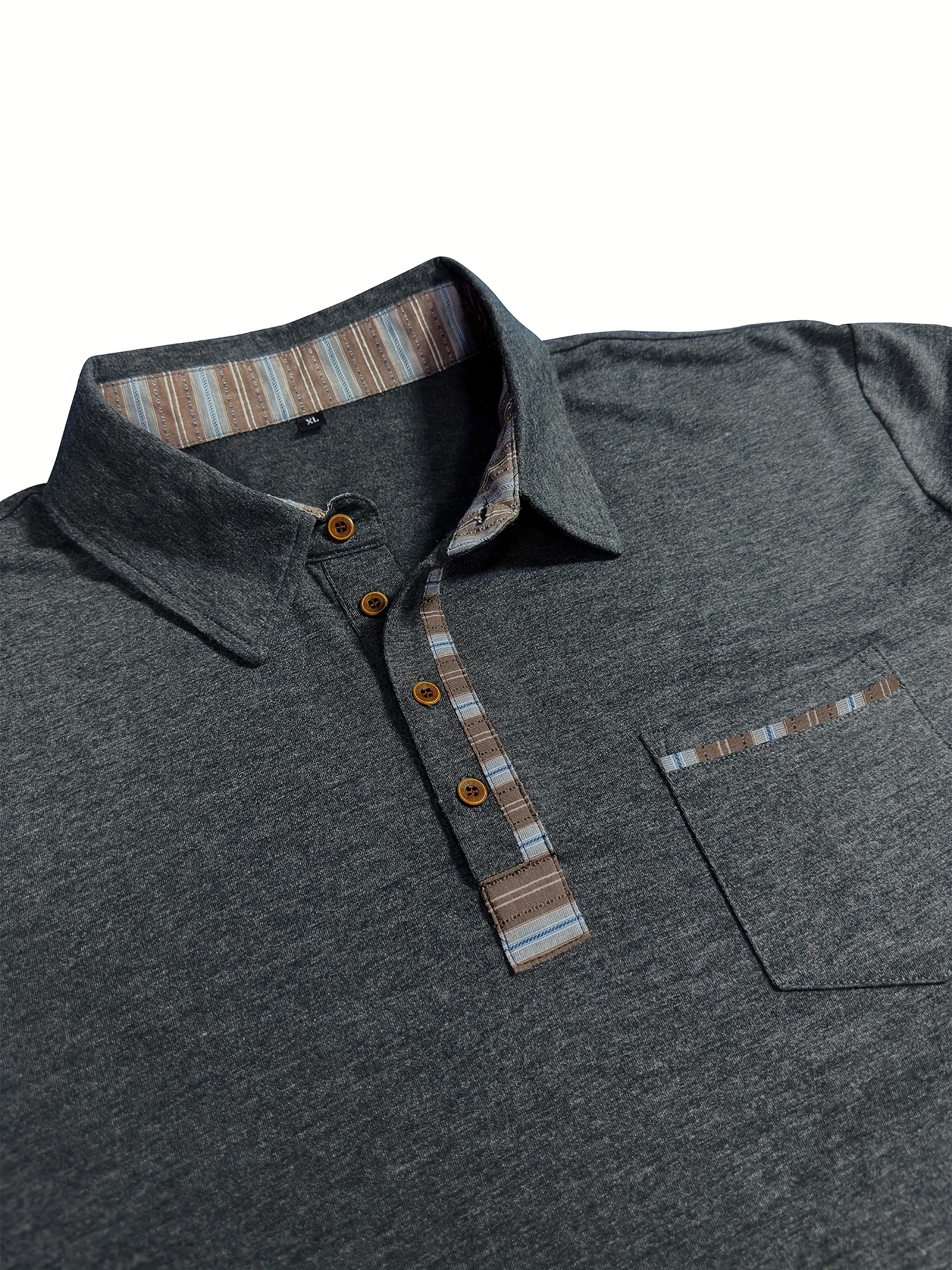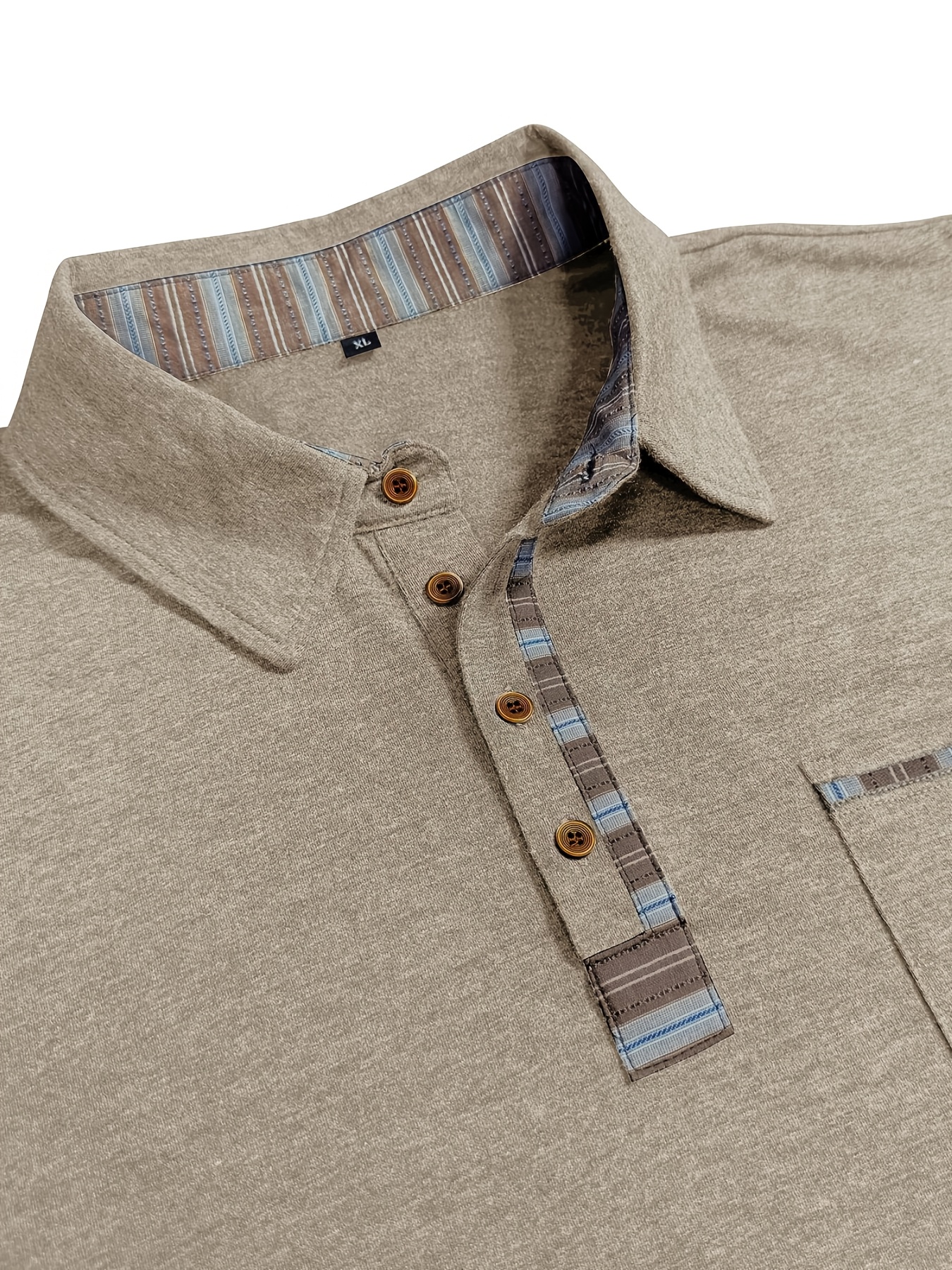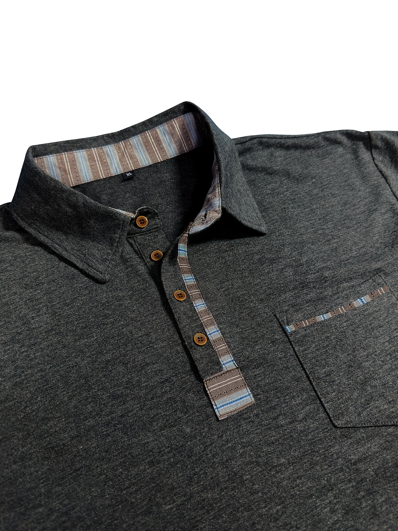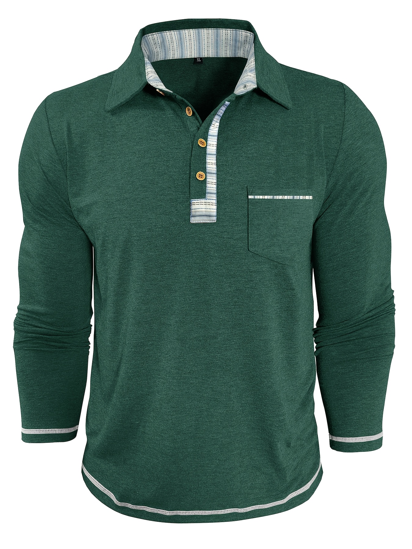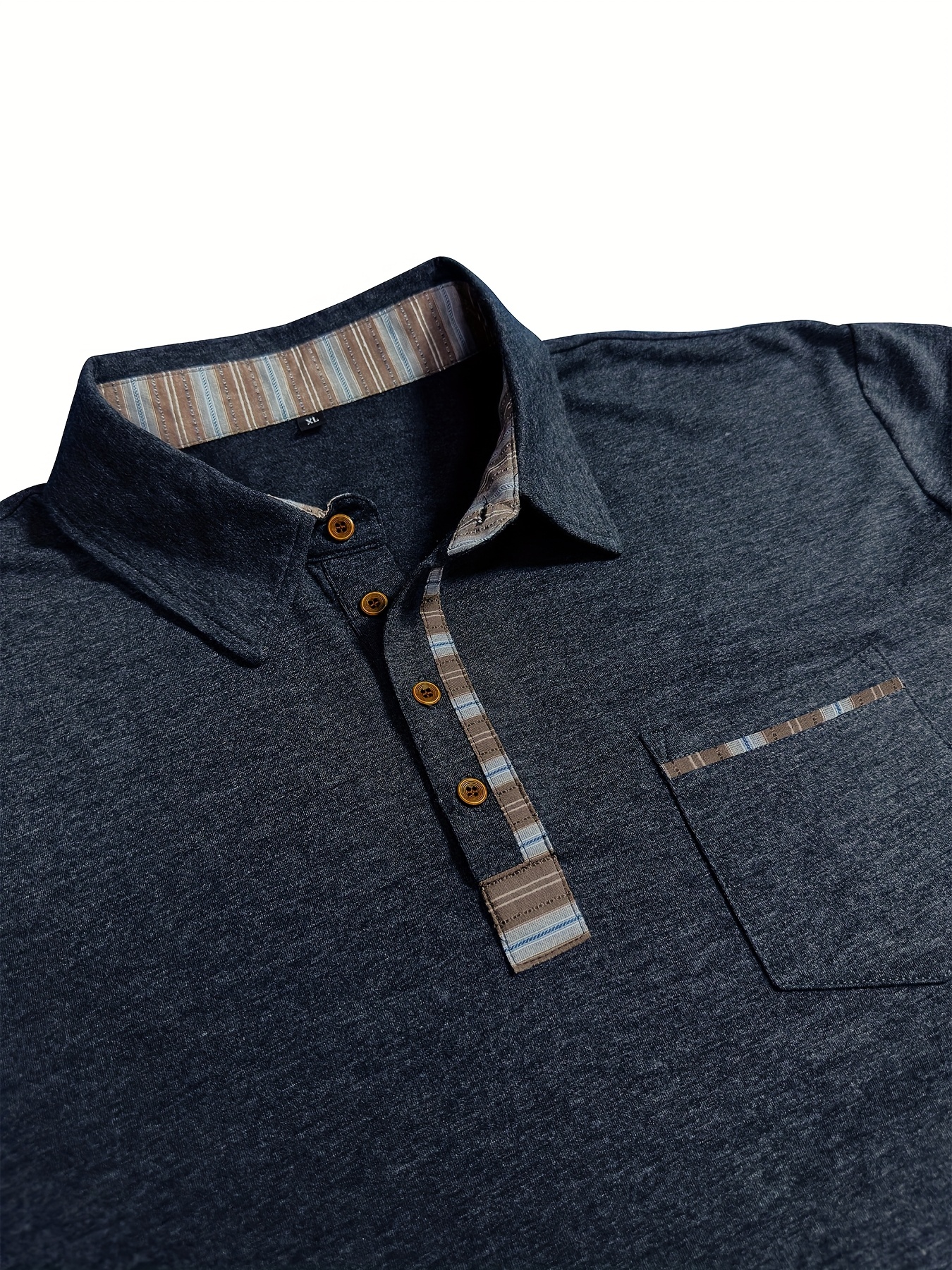 Plus Size Men's Retro Casual Shirt - Long Sleeve Button-Up with Color Block Detailing, Machine Washable Spring/Fall Top for Casual Attire, PLUS SIZE