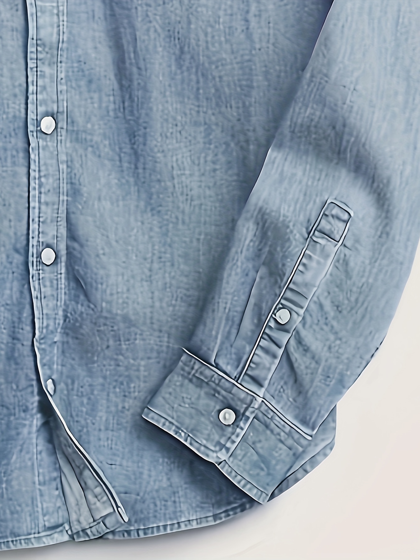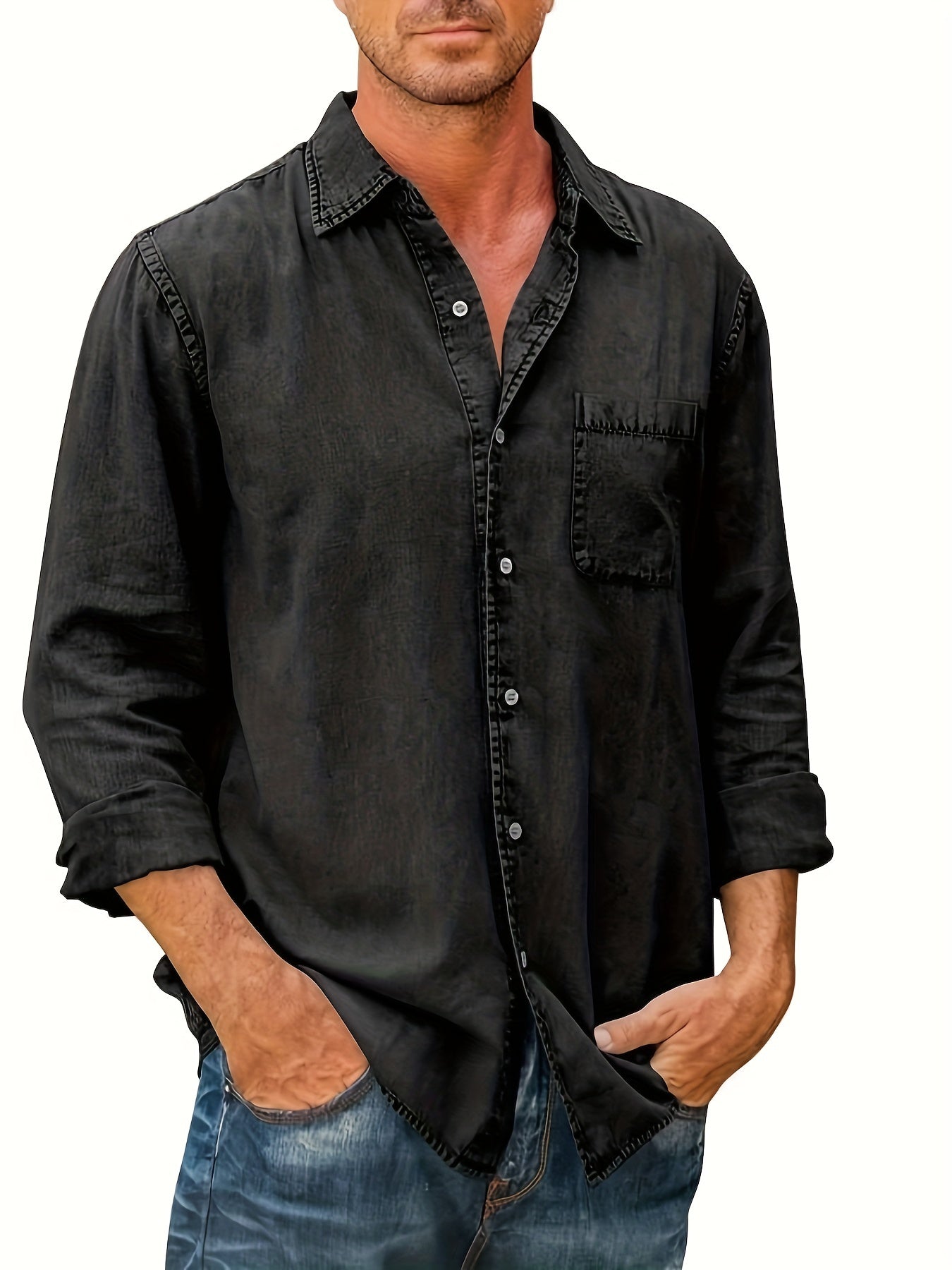 Plus Size Men's Solid Denim Shirt For Spring Fall, Casual Fashion Long Sleeve Shirt