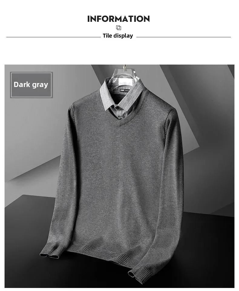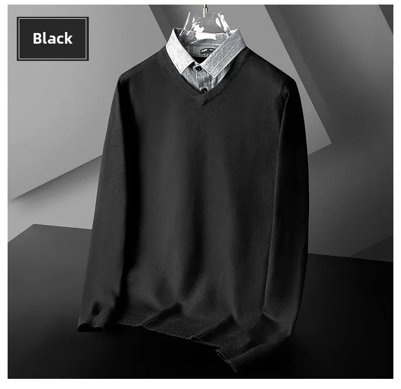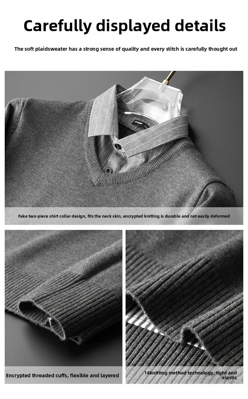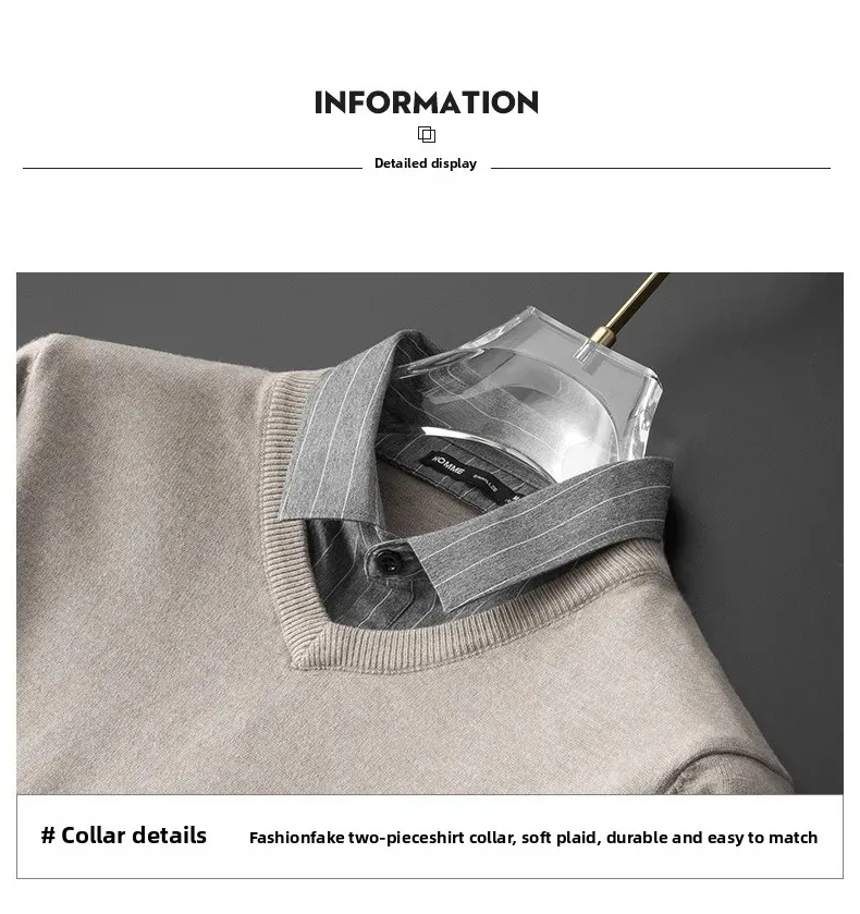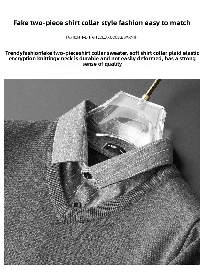 Pull tricoté élégant et ajusté pour hommes, faux deux pièces, col de chemise à la mode, automne hiver, modèle masculin aérien