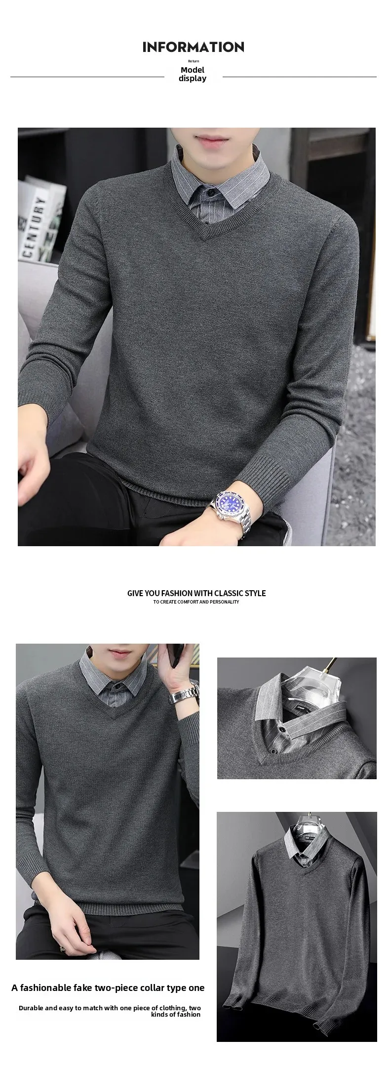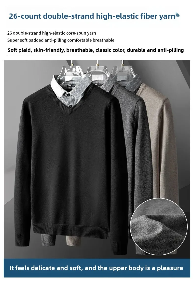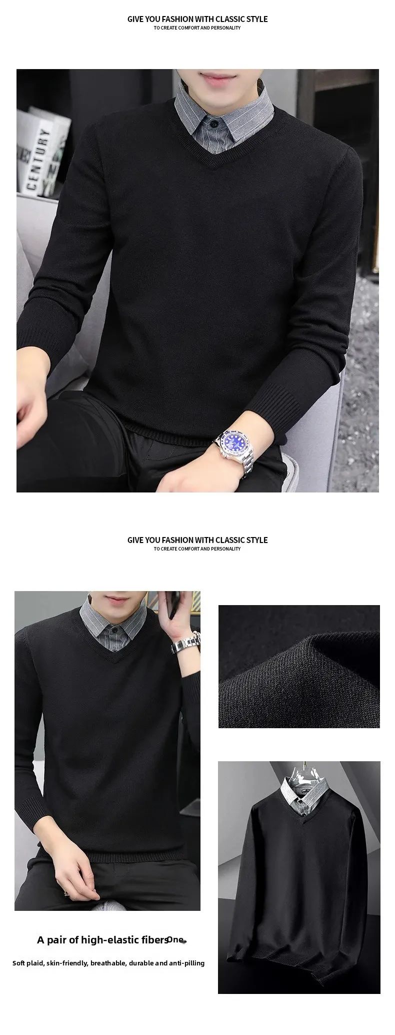 Pull tricoté élégant et ajusté pour hommes, faux deux pièces, col de chemise à la mode, automne hiver, modèle masculin aérien