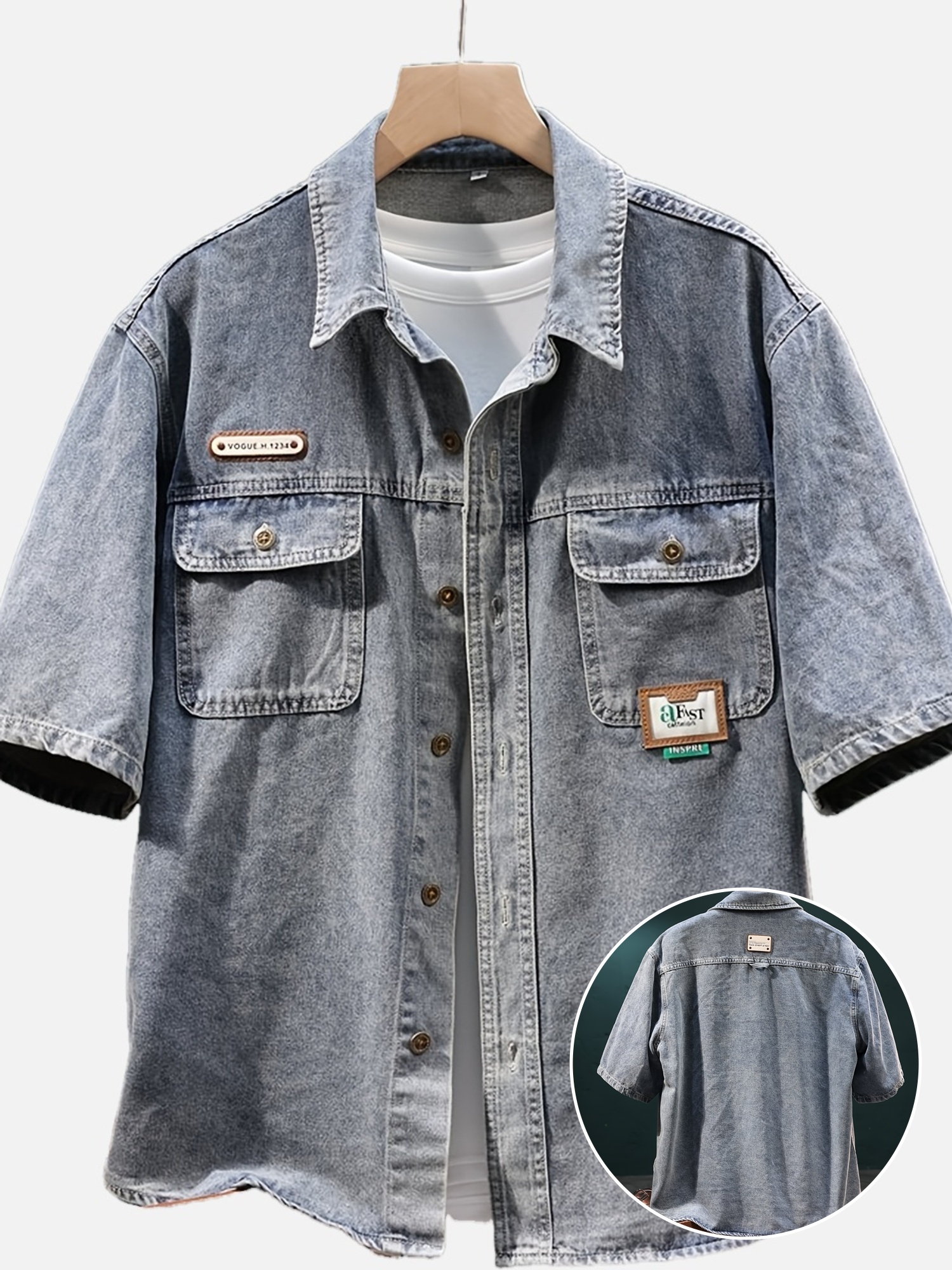 Retro Denim Short-Sleeve Shirt, Half-Sleeve Denim Top, Casual Summer Denim Wear.