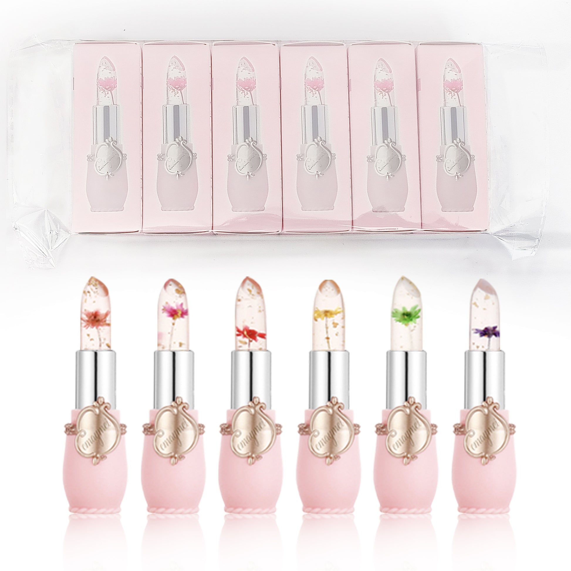 Set 6 Pièces Rouge à Lèvres Gelée – Fleurs Séchées, Changeant de Couleur avec la Température, Transparent, Anti-Transfert, Emballage Individuel, Combinaison de Teintes