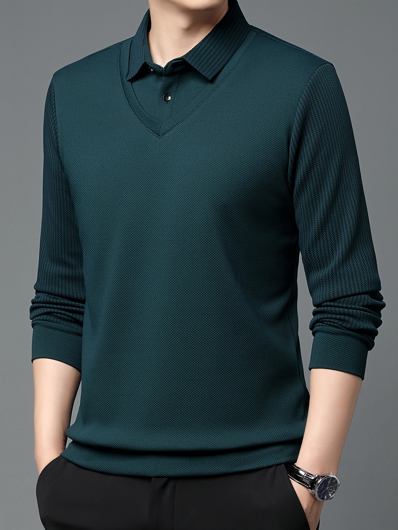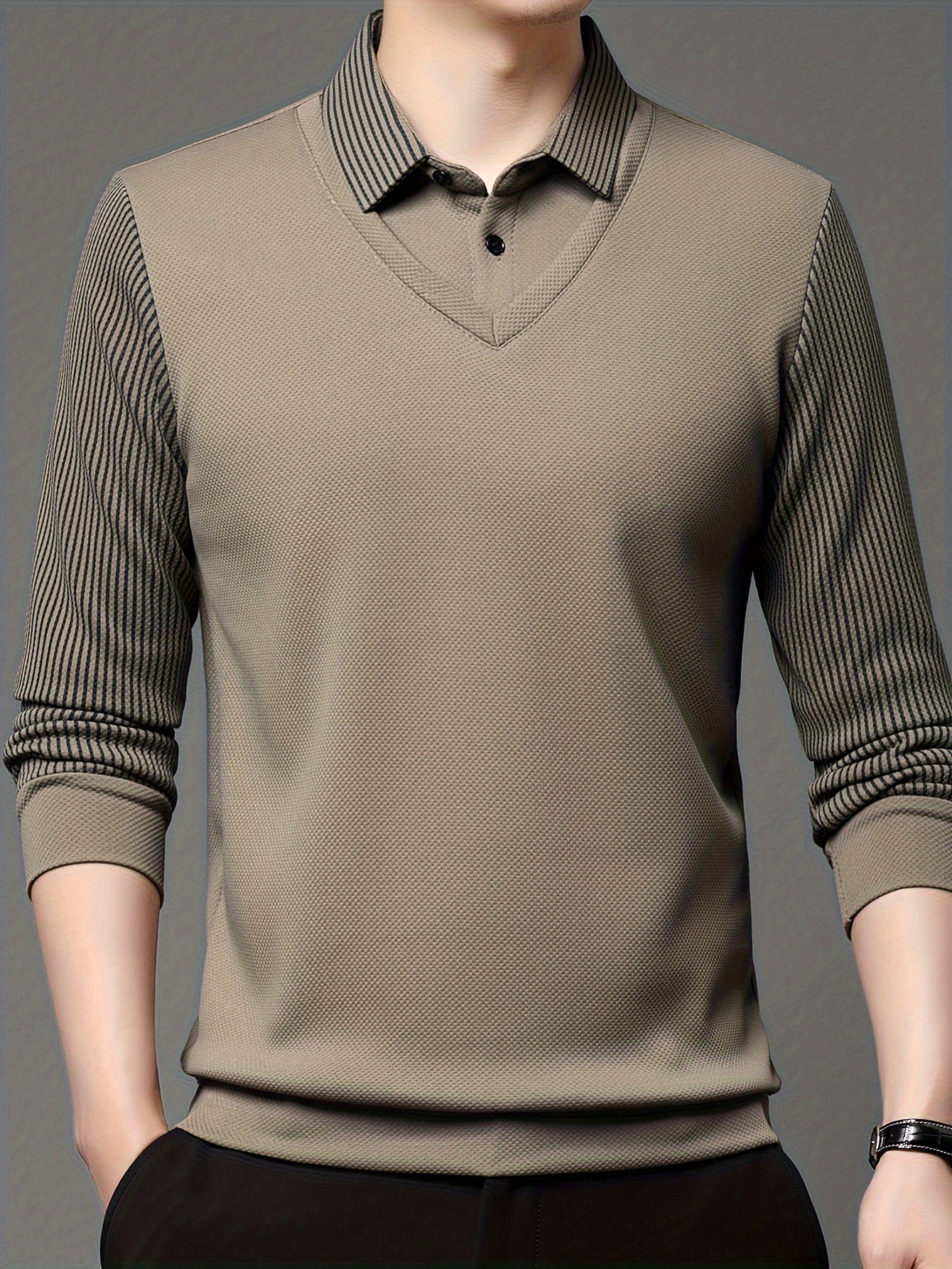 Solid Fake Two-piece Lapel Versatile Shirt Tops, Breathable Long Sleeve Golf Shirt For Casual Daily Wear, Spring And Autumn