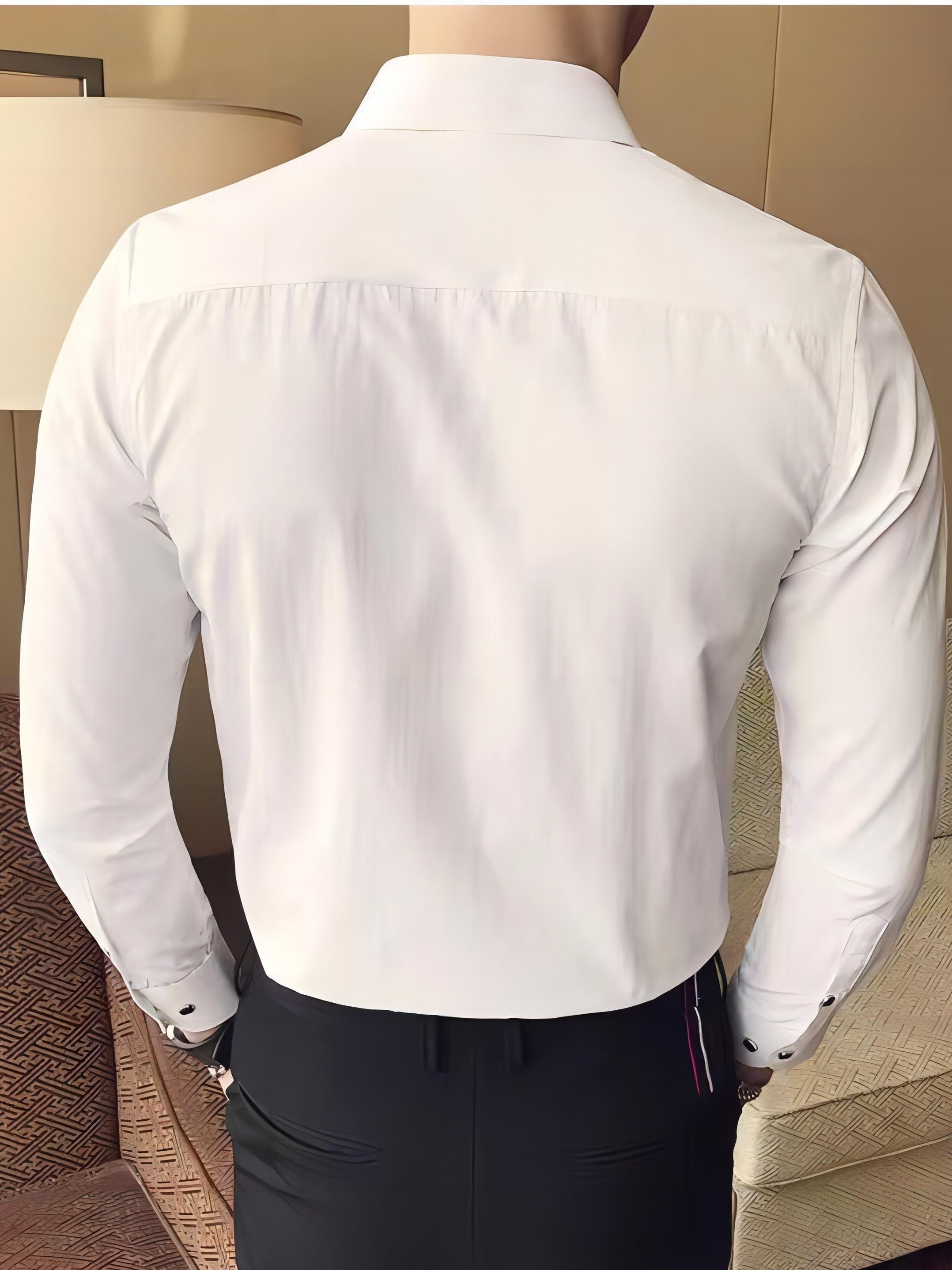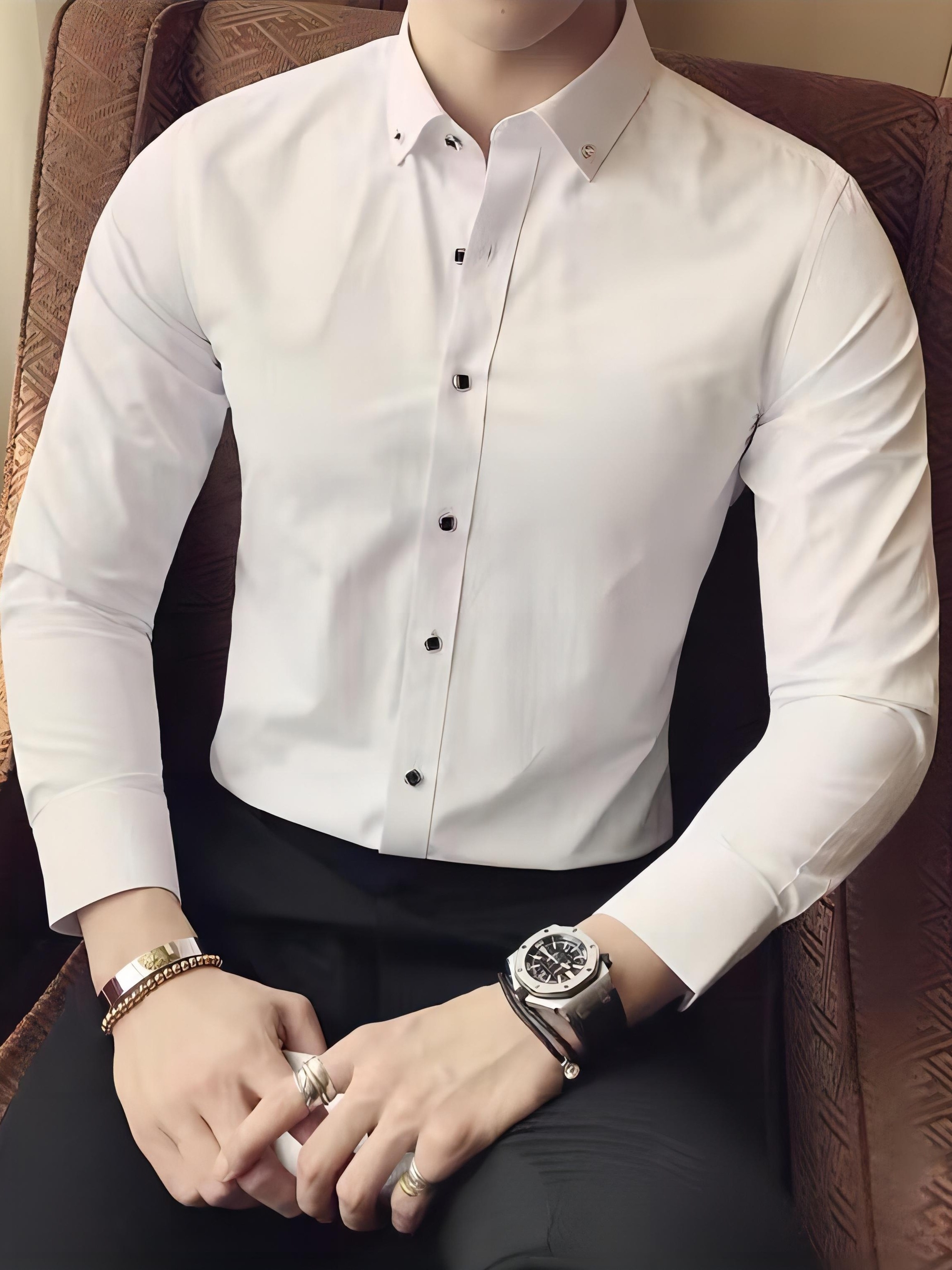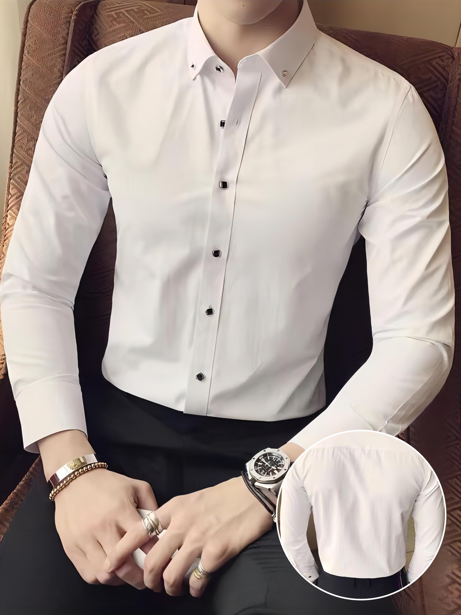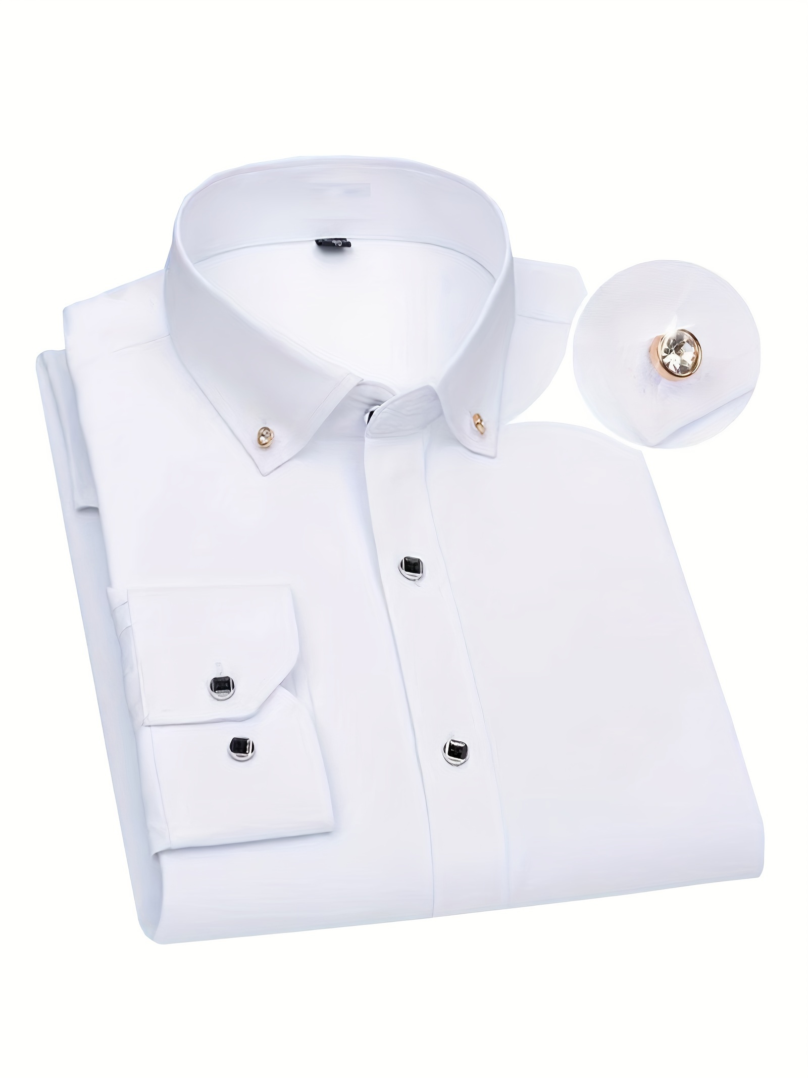 Spring and Autumn Long-Sleeve Shirt for Men, Stylish Business Casual Wrinkle-Resistant Dress Shirt with Diamond Buttons, Regular Fit Solid Color