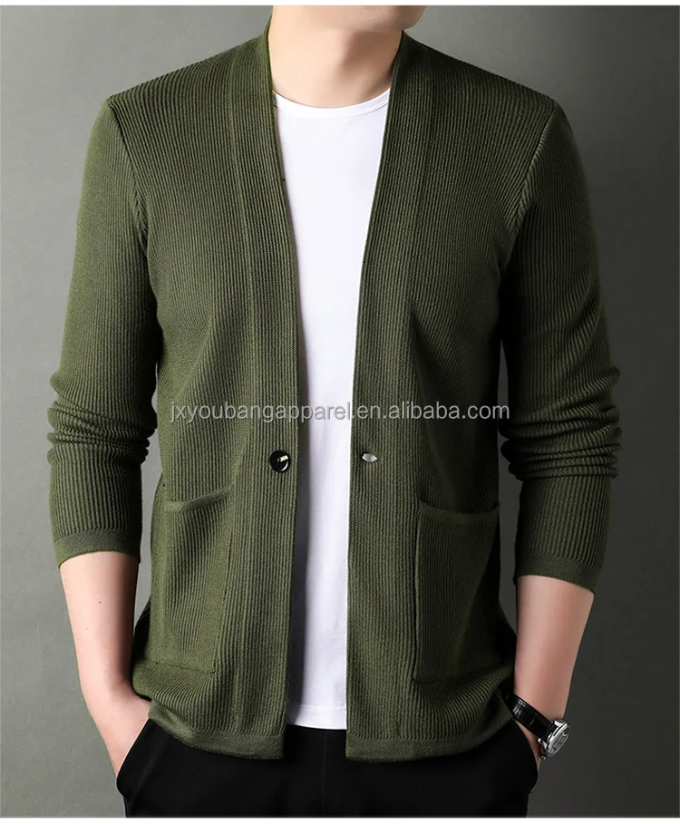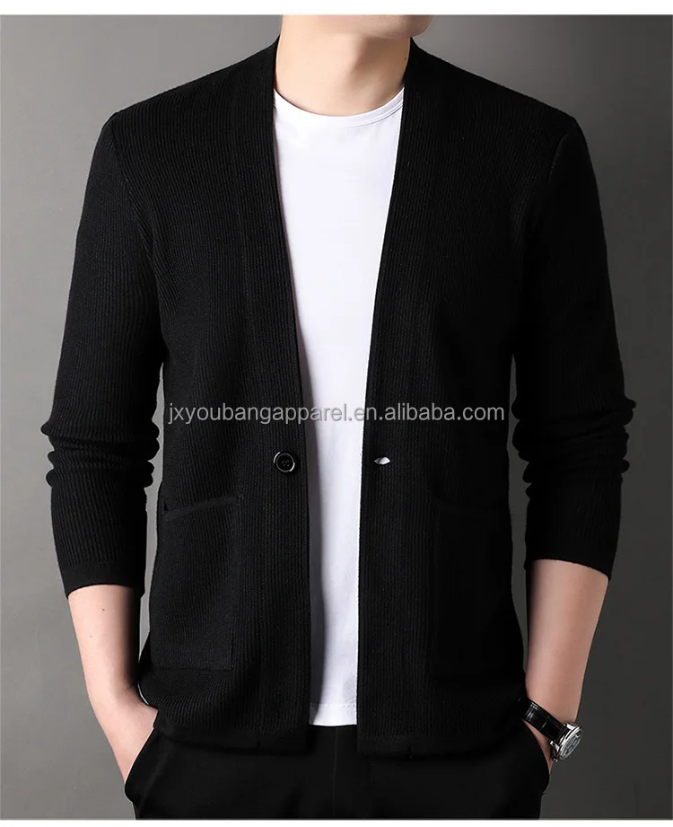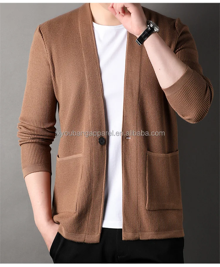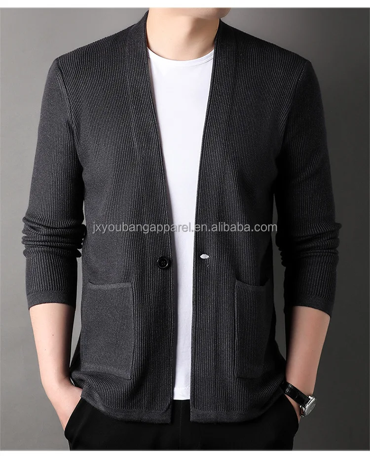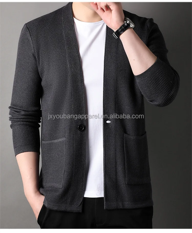 Spring Casual Style Long Sleeve Deep v Neck Single Button Loose Man Sweater Coat