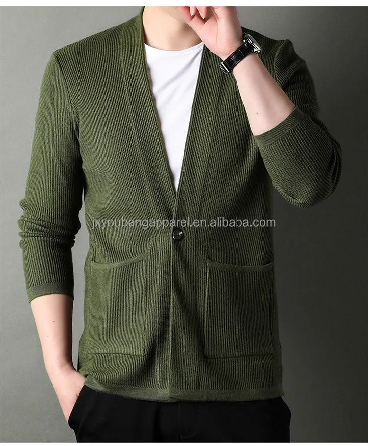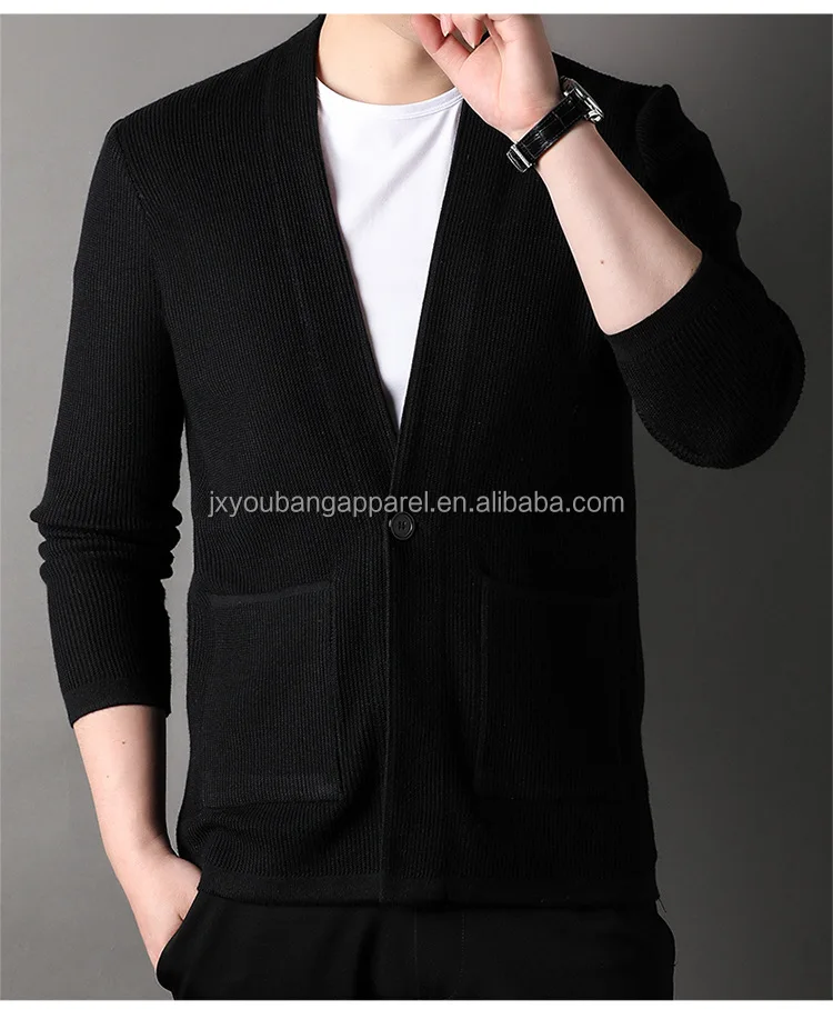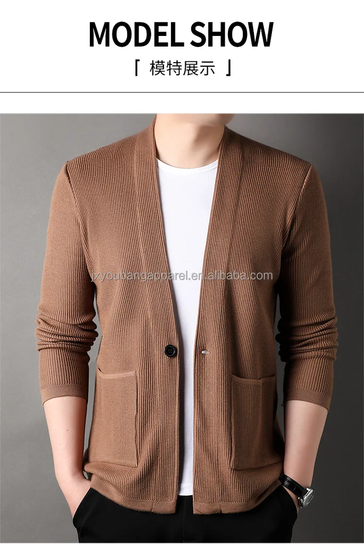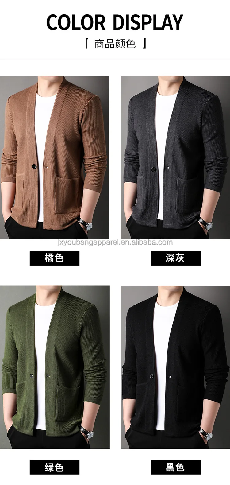 Spring casual style long sleeve deep v neck single button loose man sweater coat