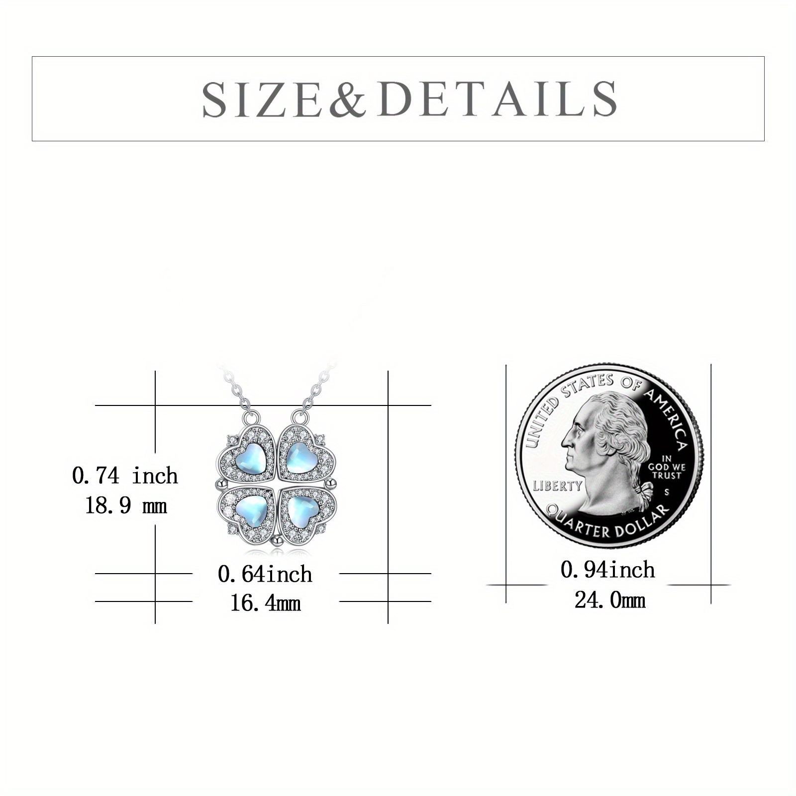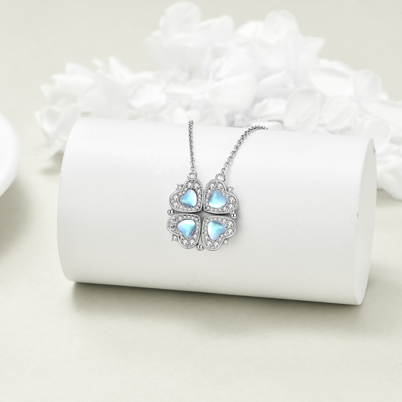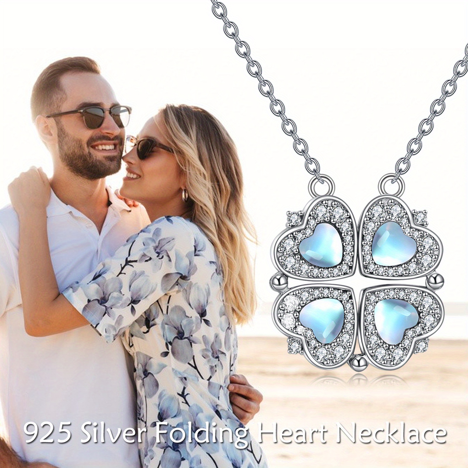 Collier trèfle à quatre feuilles chanceux pour femme en argent sterling, pendentif cœur aimanté avec pierre synthétique cubique, design lune et cœur, bijou pour occasions spéciales, cadeau sentimental, style élégant et tendance