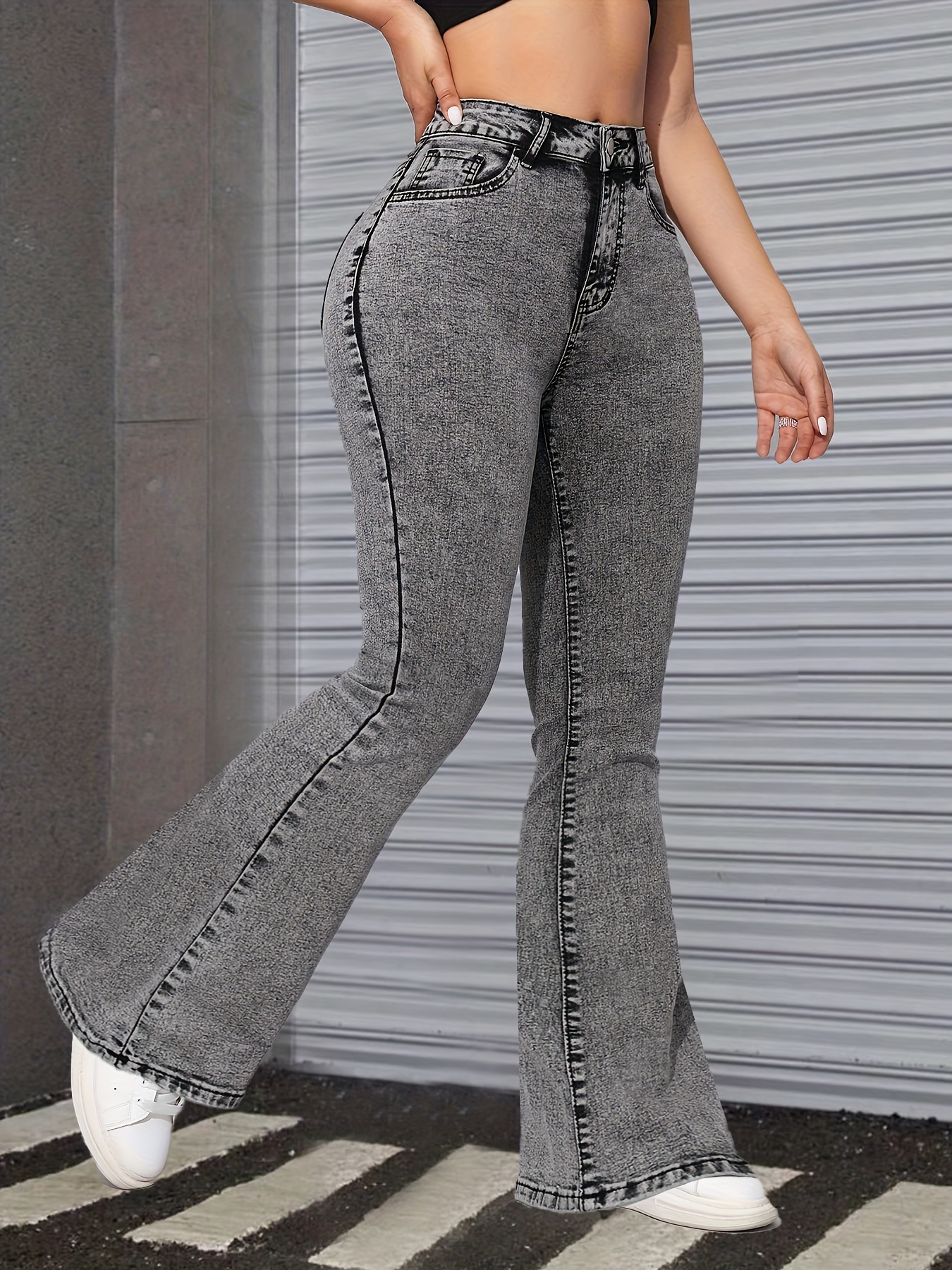 Jeans Femme Gris Style Snowflake Extensible Slim-Fit Polyvalent