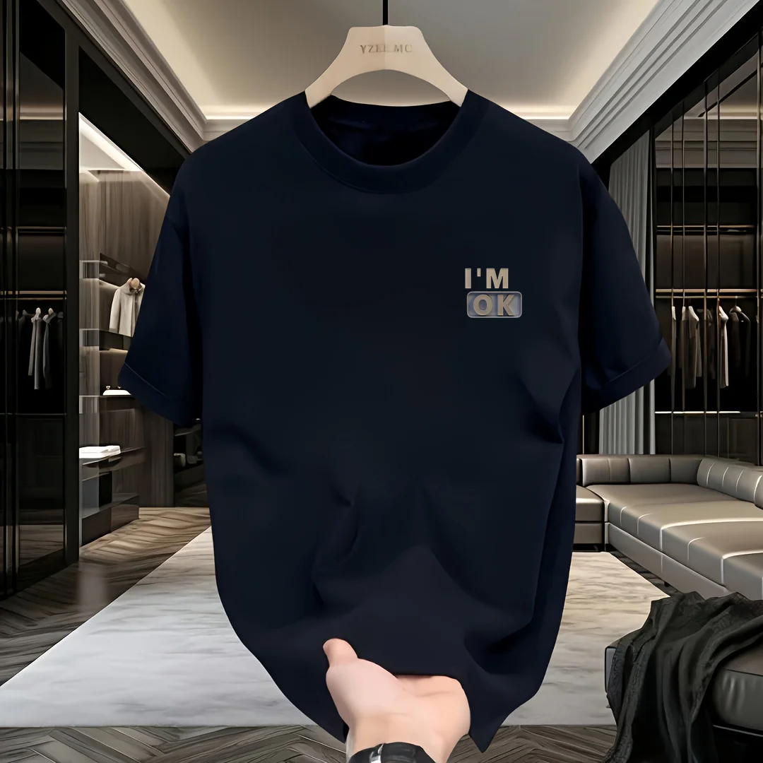 T-shirt pour hommes "I'm OK", haut décontracté à manches courtes et col rond, confort lavable en machine, version ample, tissu doux