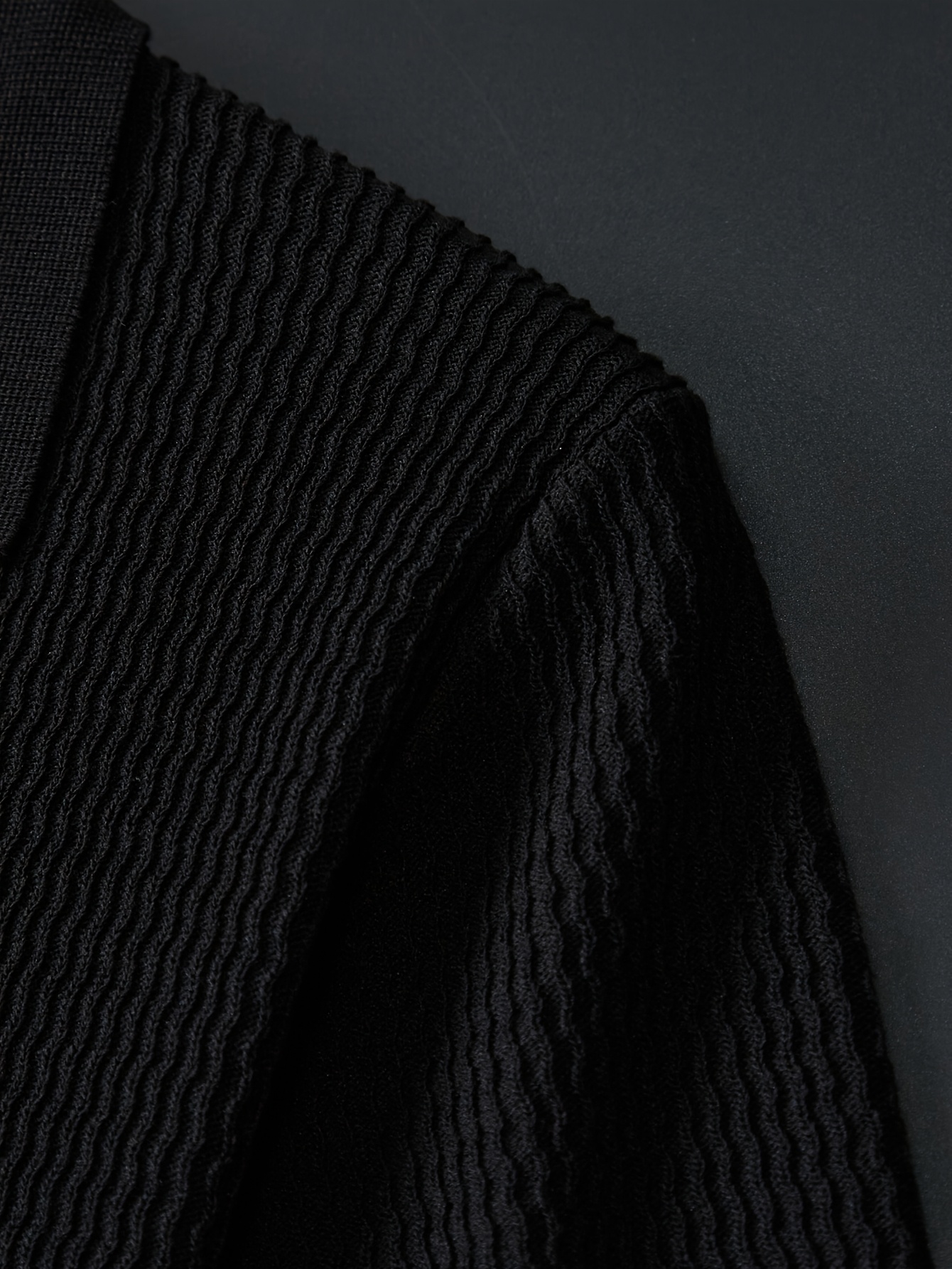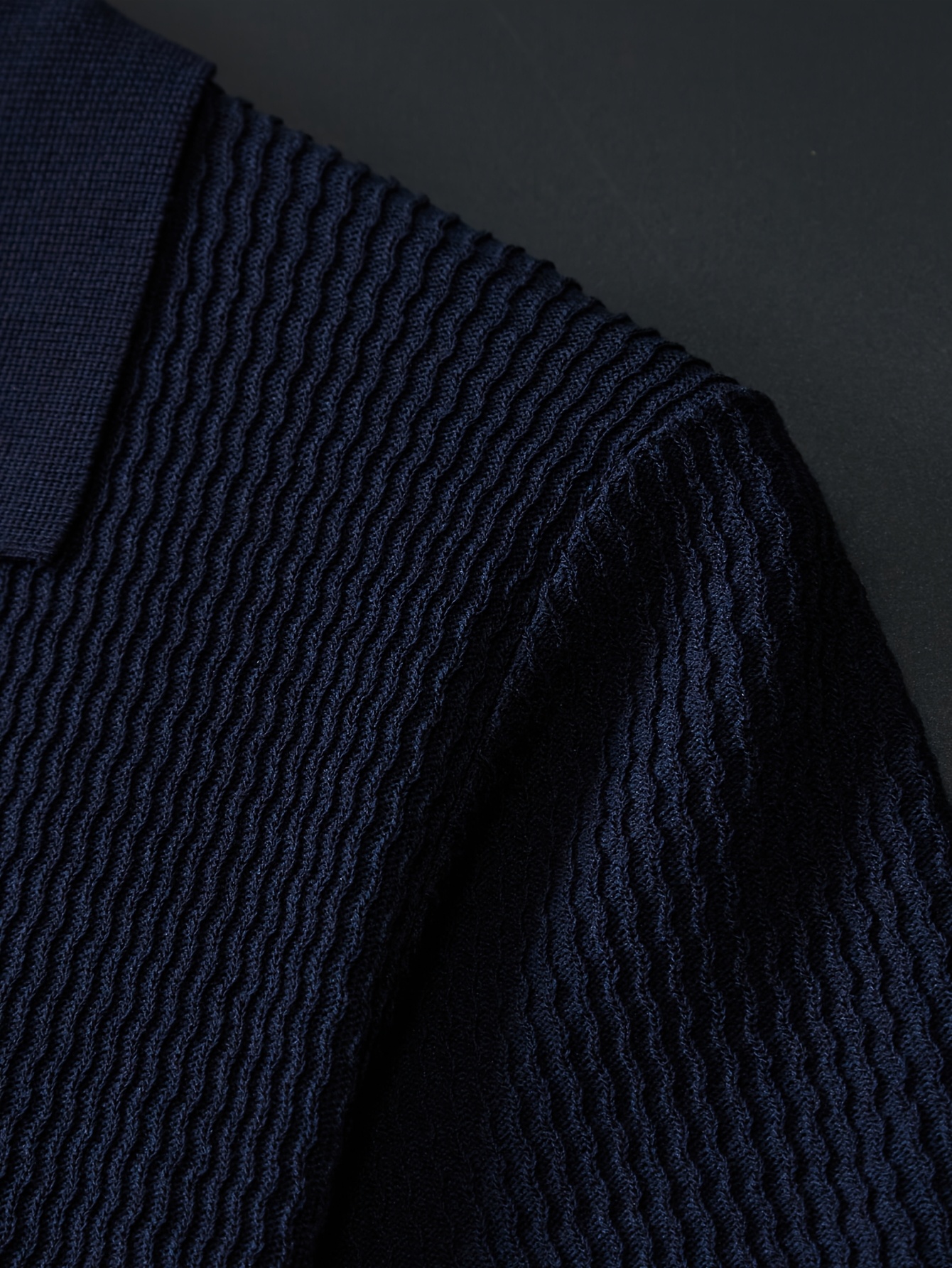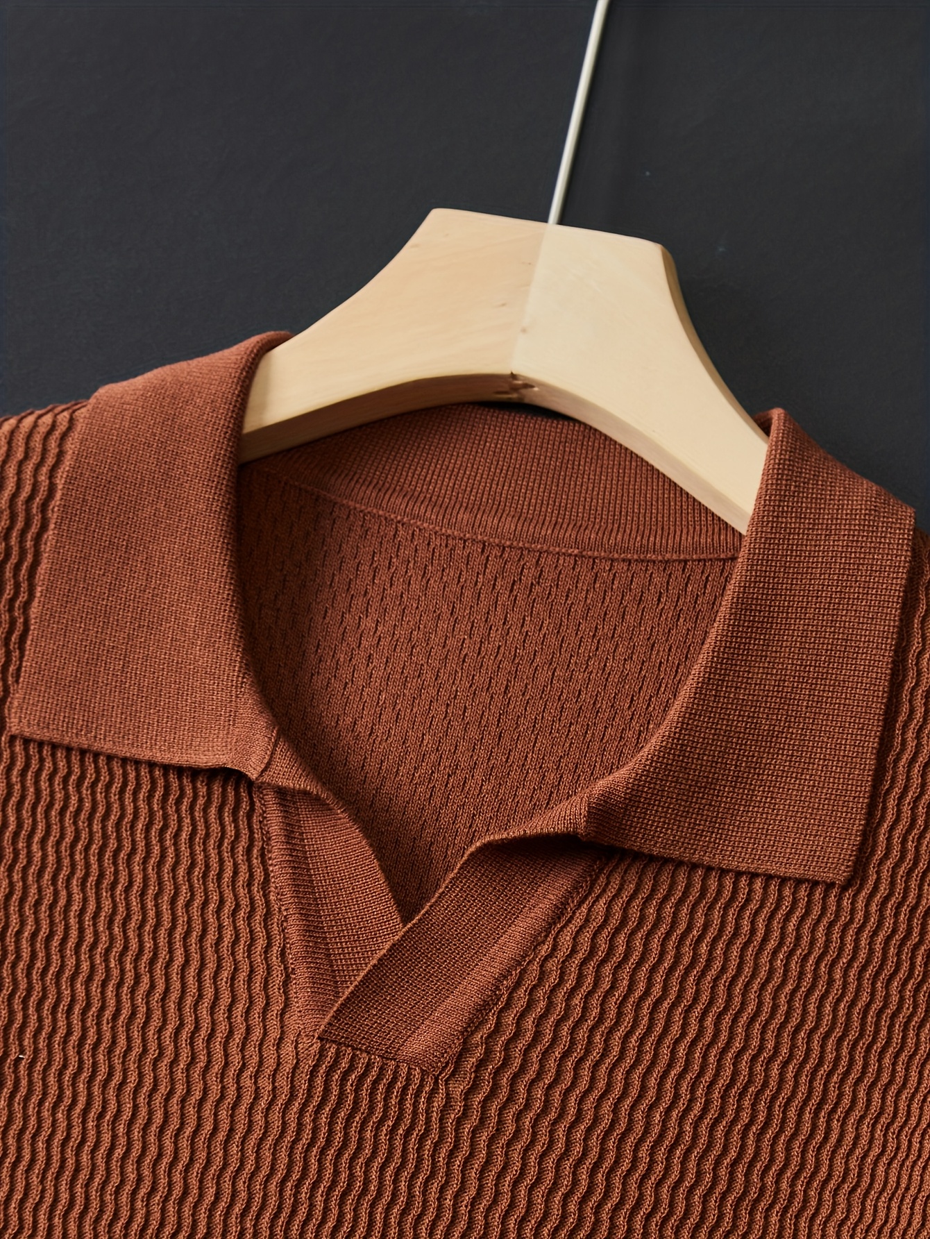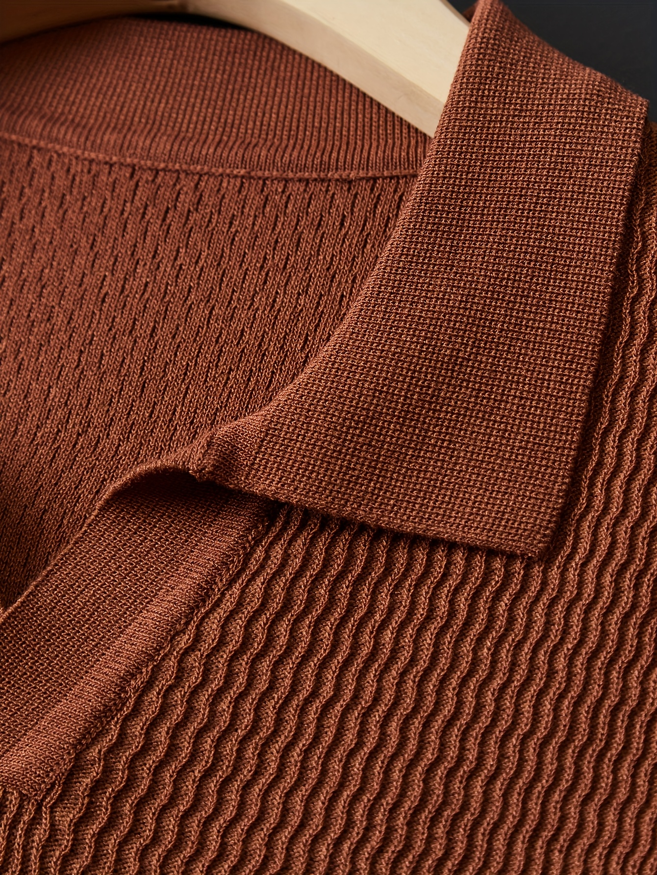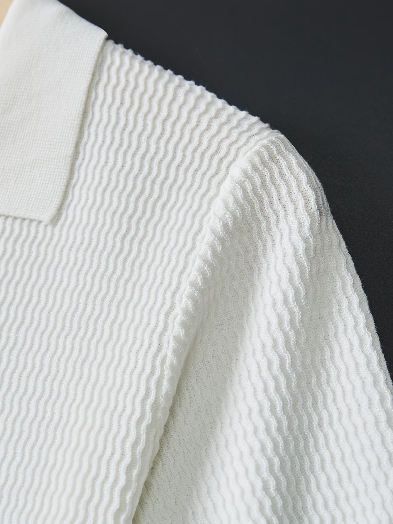 Tehan Brand Men's Clothing, Crafted with Heavy-processed Wave-pattern Jacquard Fabric, Knitted Shirt with American-style Lapel. Lightweight Business Casual High-quality Light Luxury Fabric, Fashionable Mature and Handsome Des