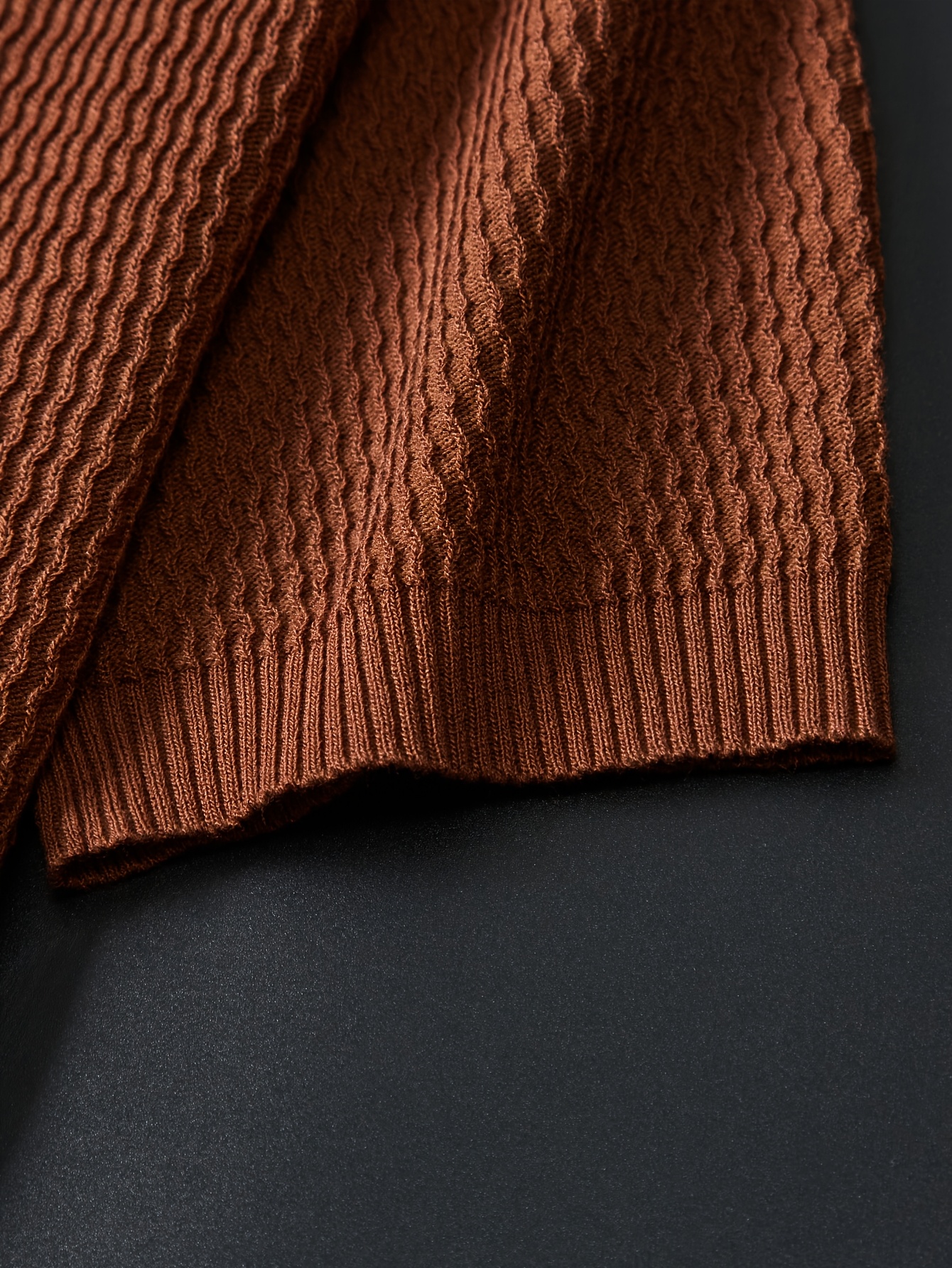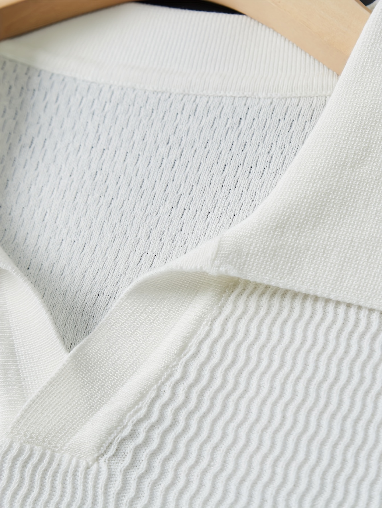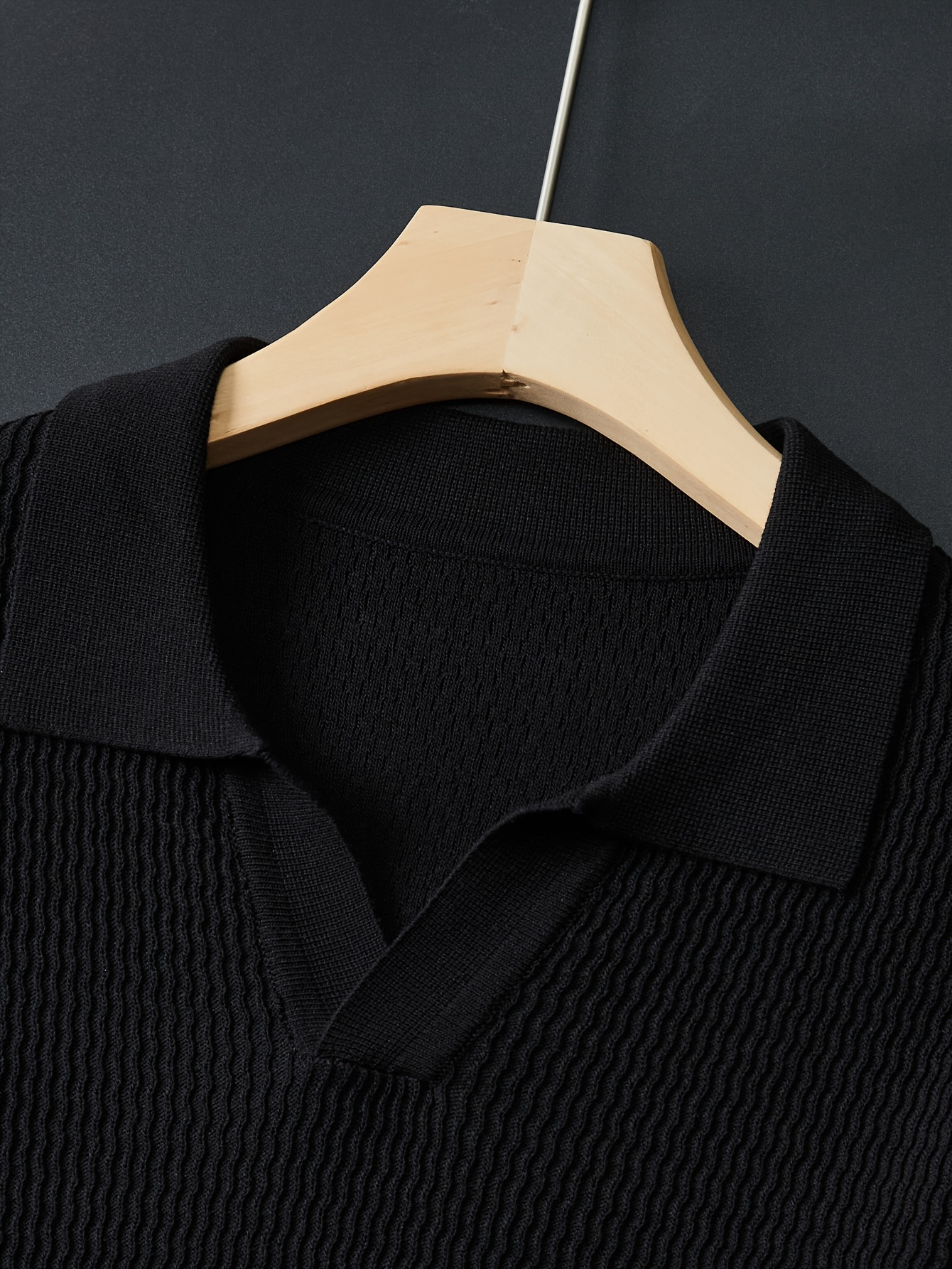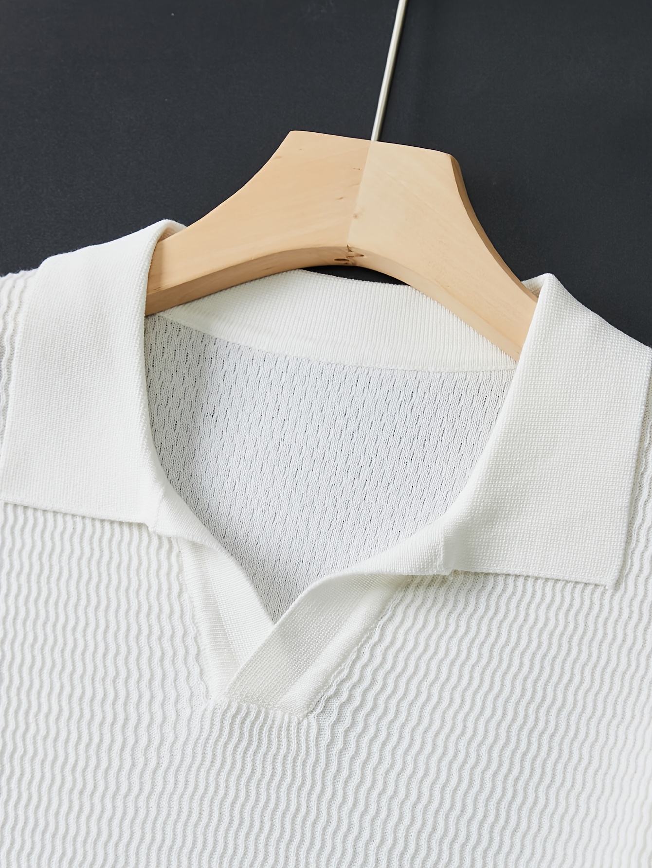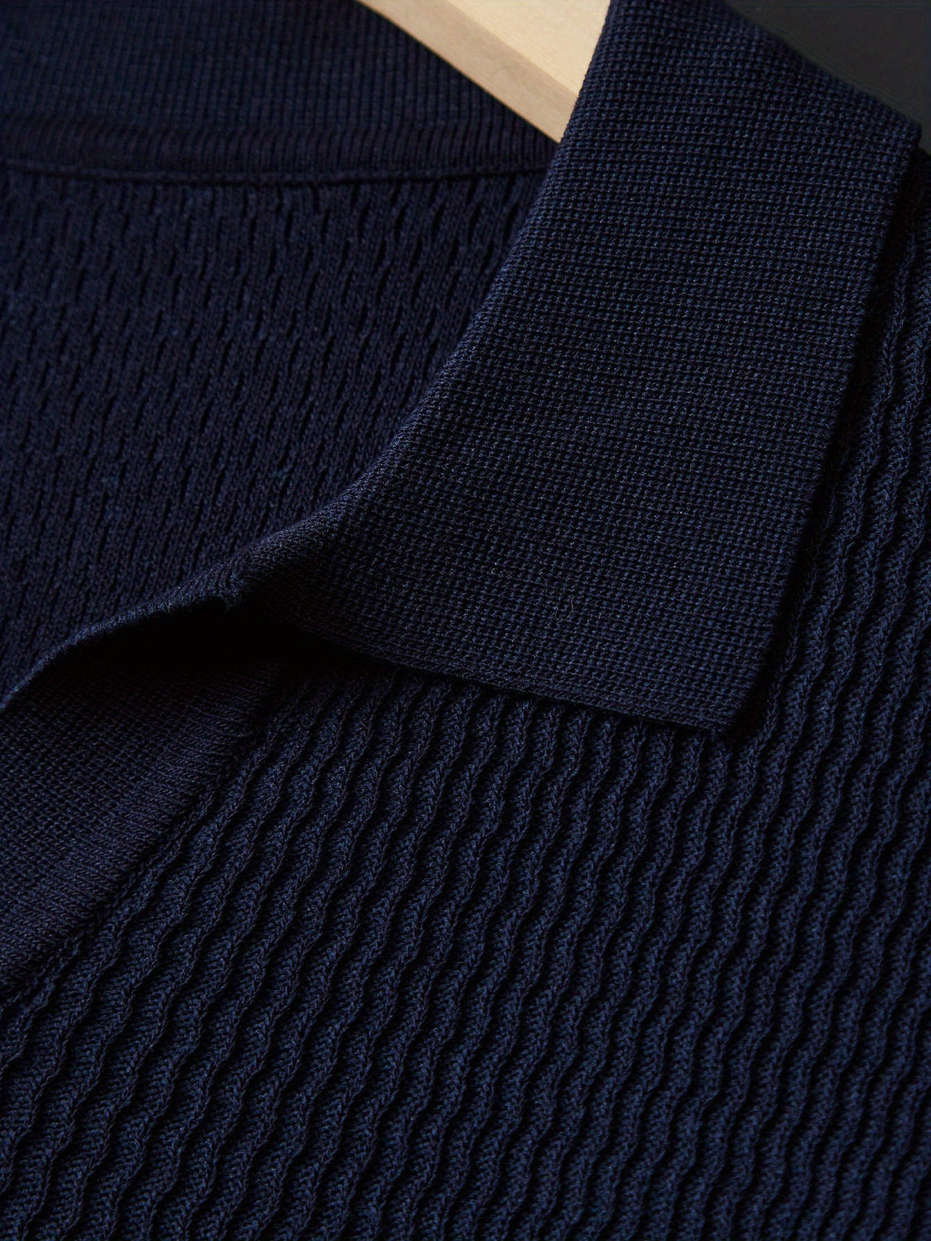 Tehan Brand Men's Clothing, Crafted with Heavy-processed Wave-pattern Jacquard Fabric, Knitted Shirt with American-style Lapel. Lightweight Business Casual High-quality Light Luxury Fabric, Fashionable Mature and Handsome Des