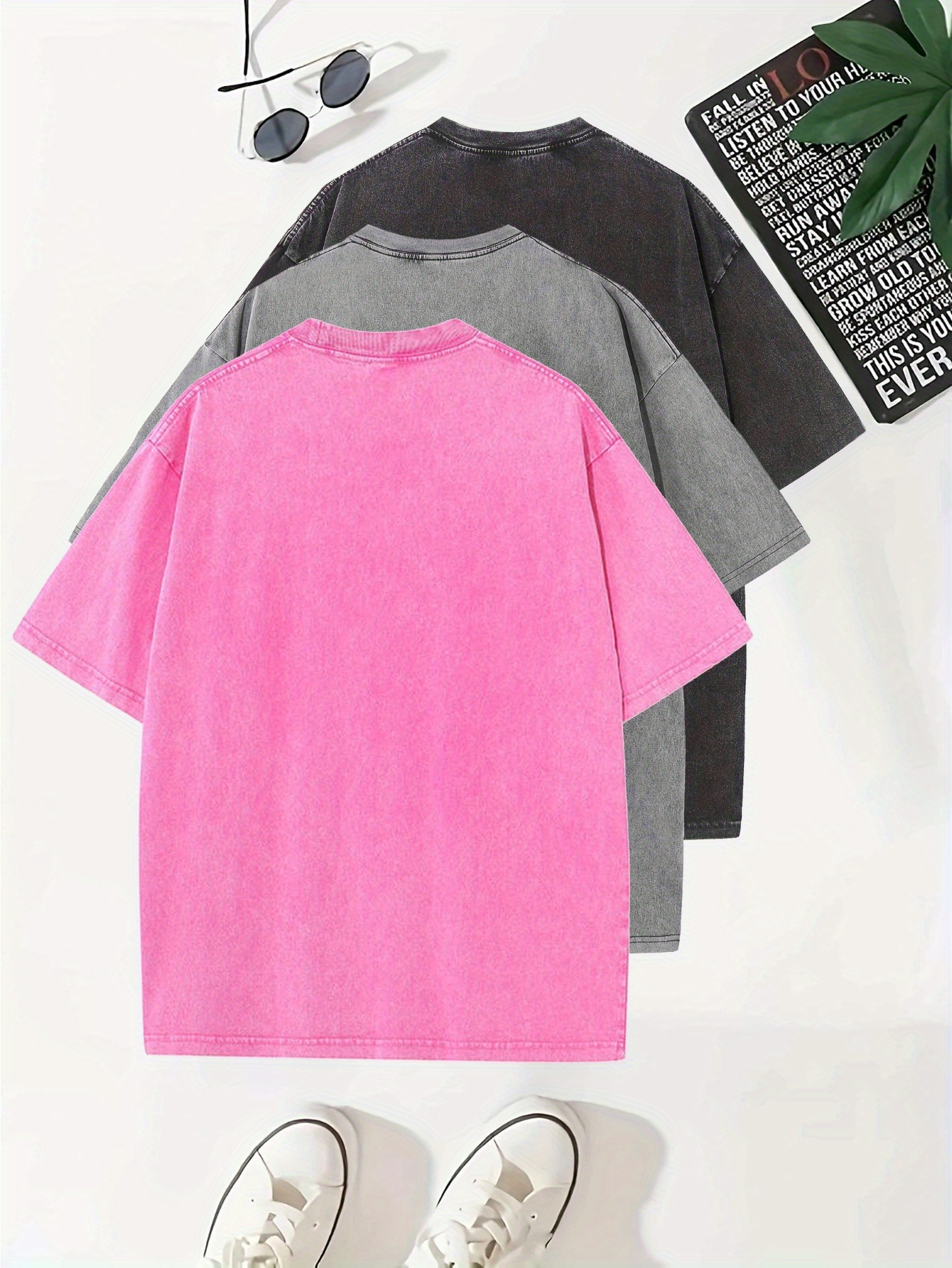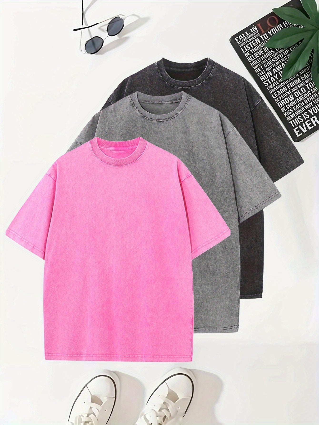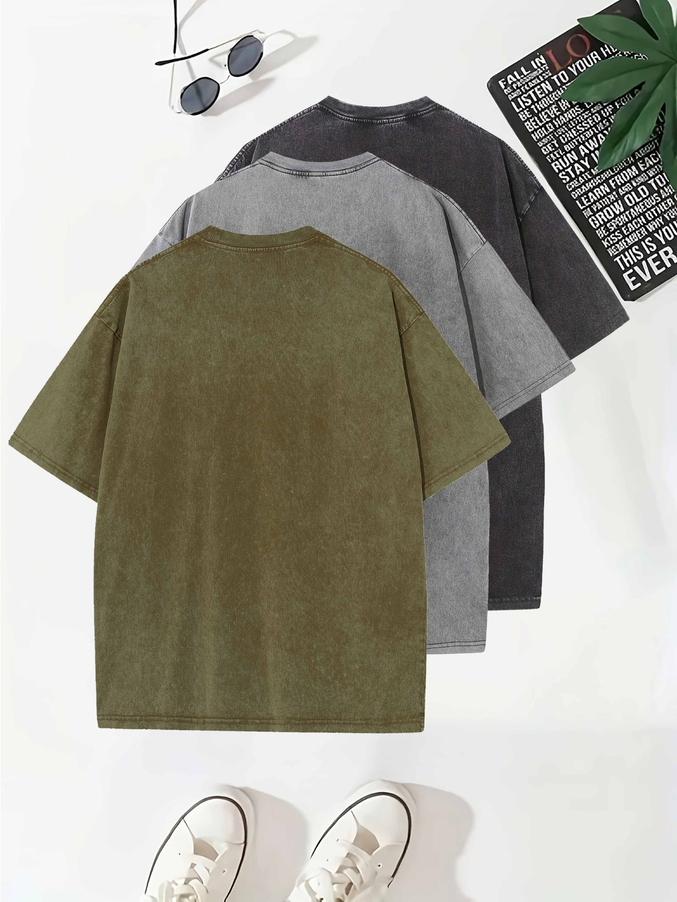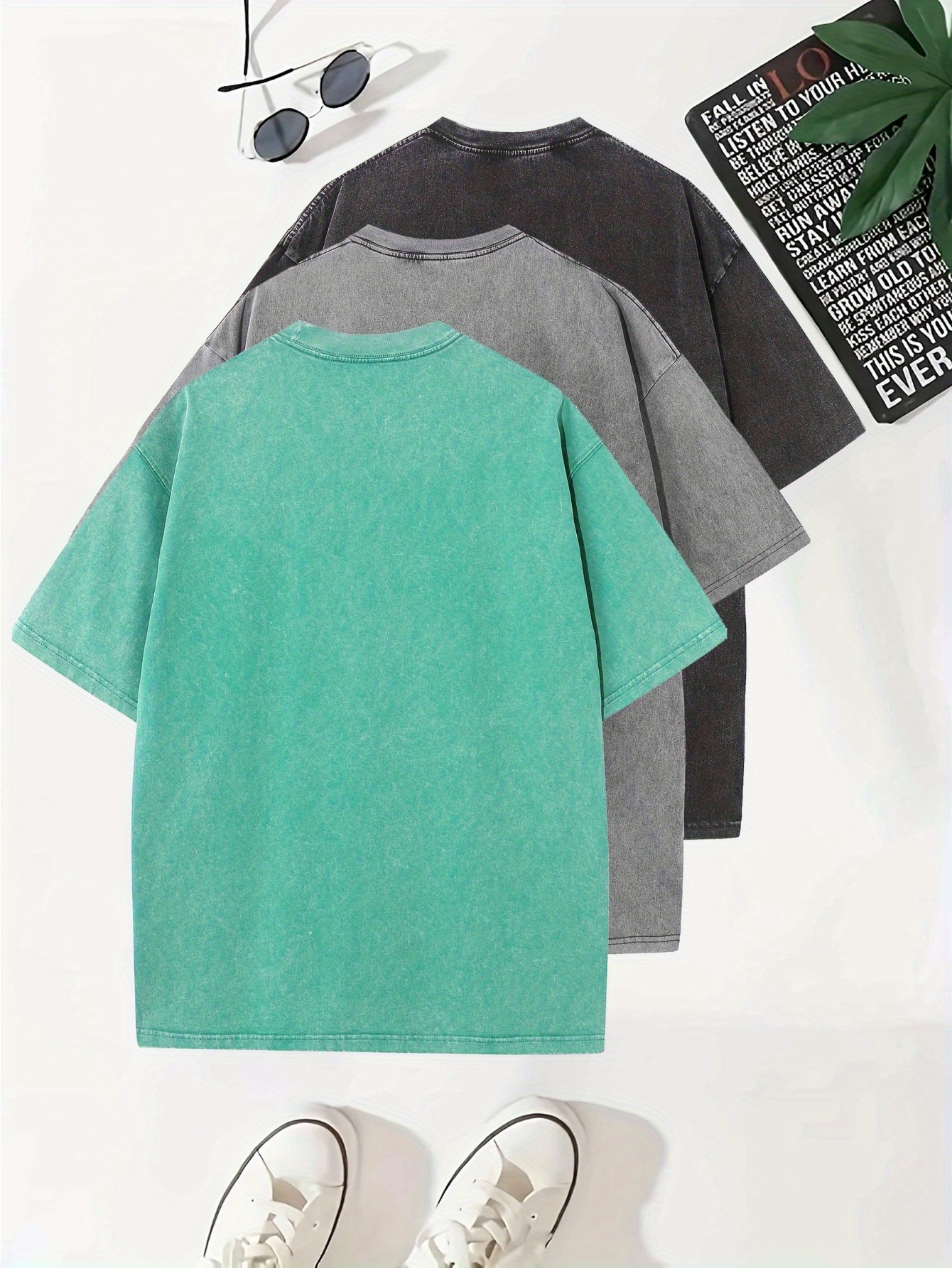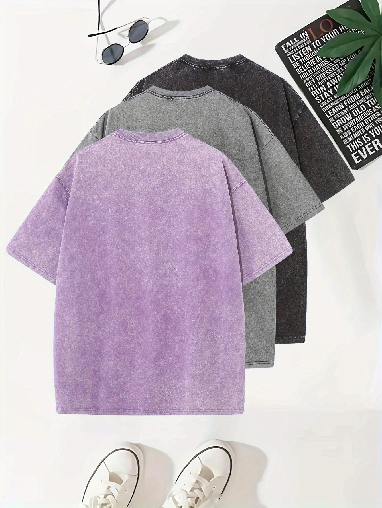 Temujin Starry 3pcs Washed Cotton Distressed 100% Pure 240g Crew Neck T Shirt, Simple and Fashionable