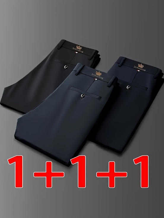 Three-Pack High-Elasticity Men's Business Casual Trousers, Wrinkle- and No Ironing Required for All Seasons, Professional Style, Classic Design, Premium Craftsmanship, Machine-Washable Fashionable Men's Wear, Super Comfortabl