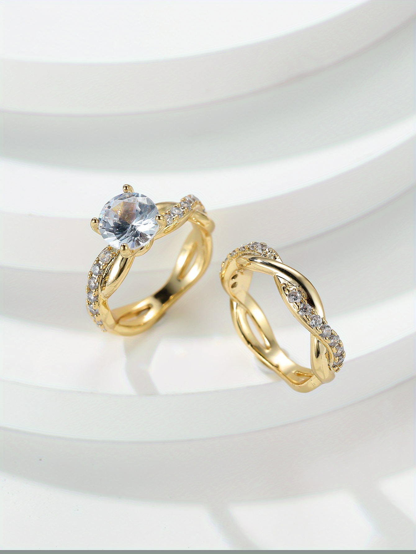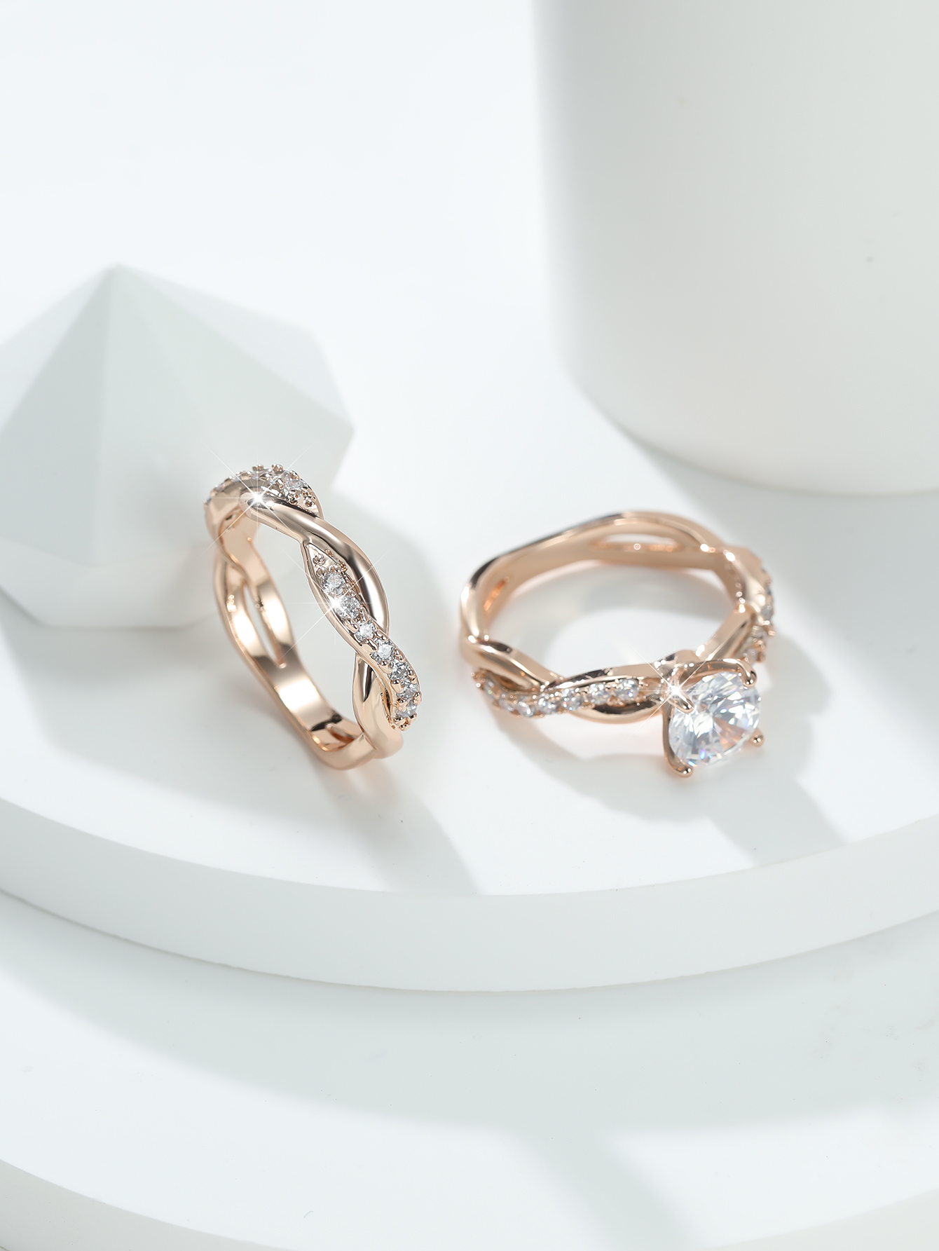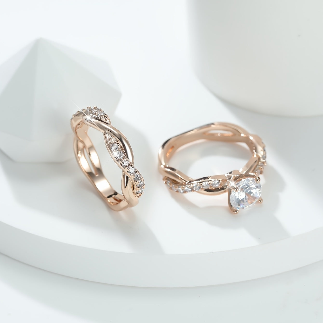 Vintage Cross Twisted Ring Set with Minimalist Twist and Engagement Wedding Rings